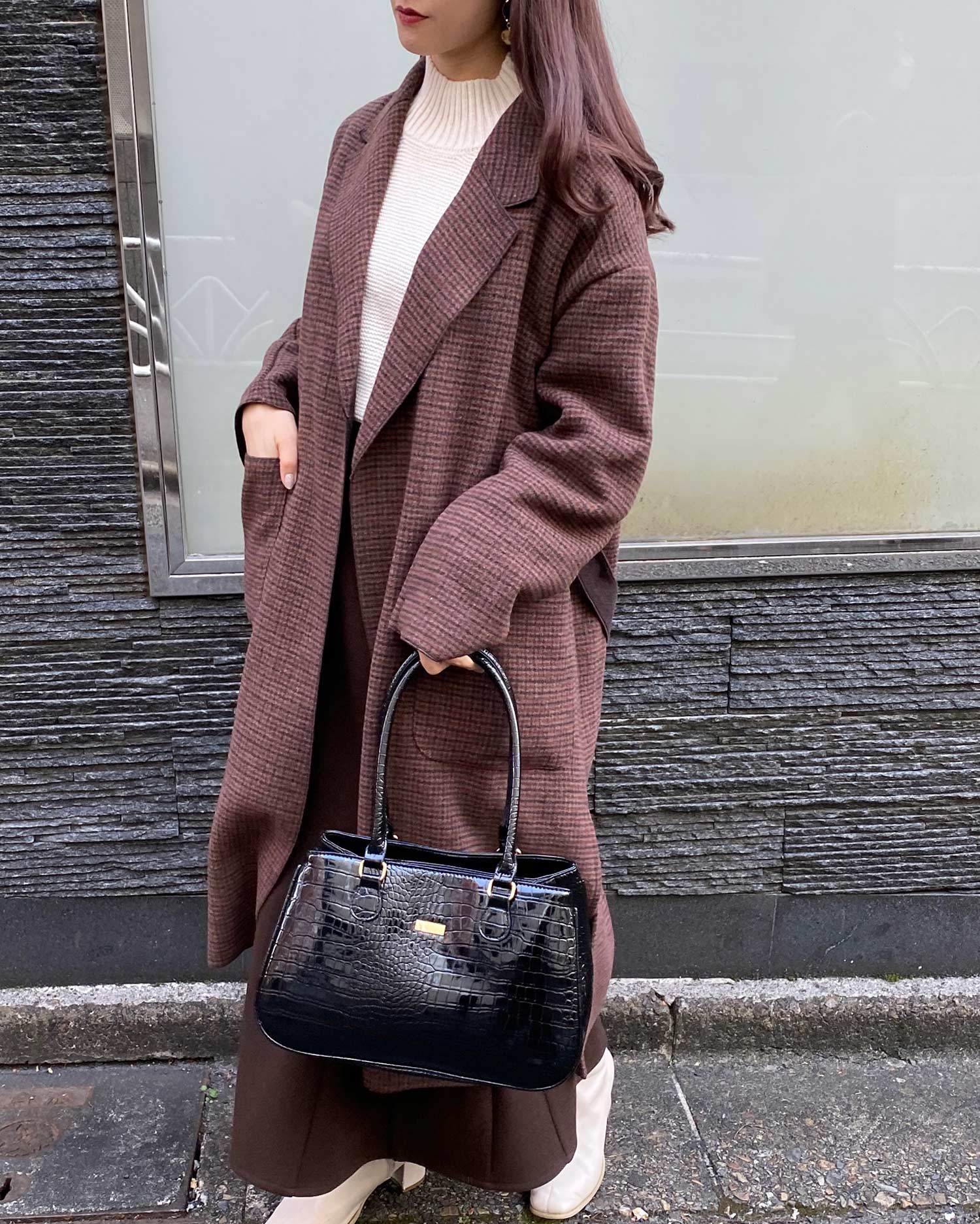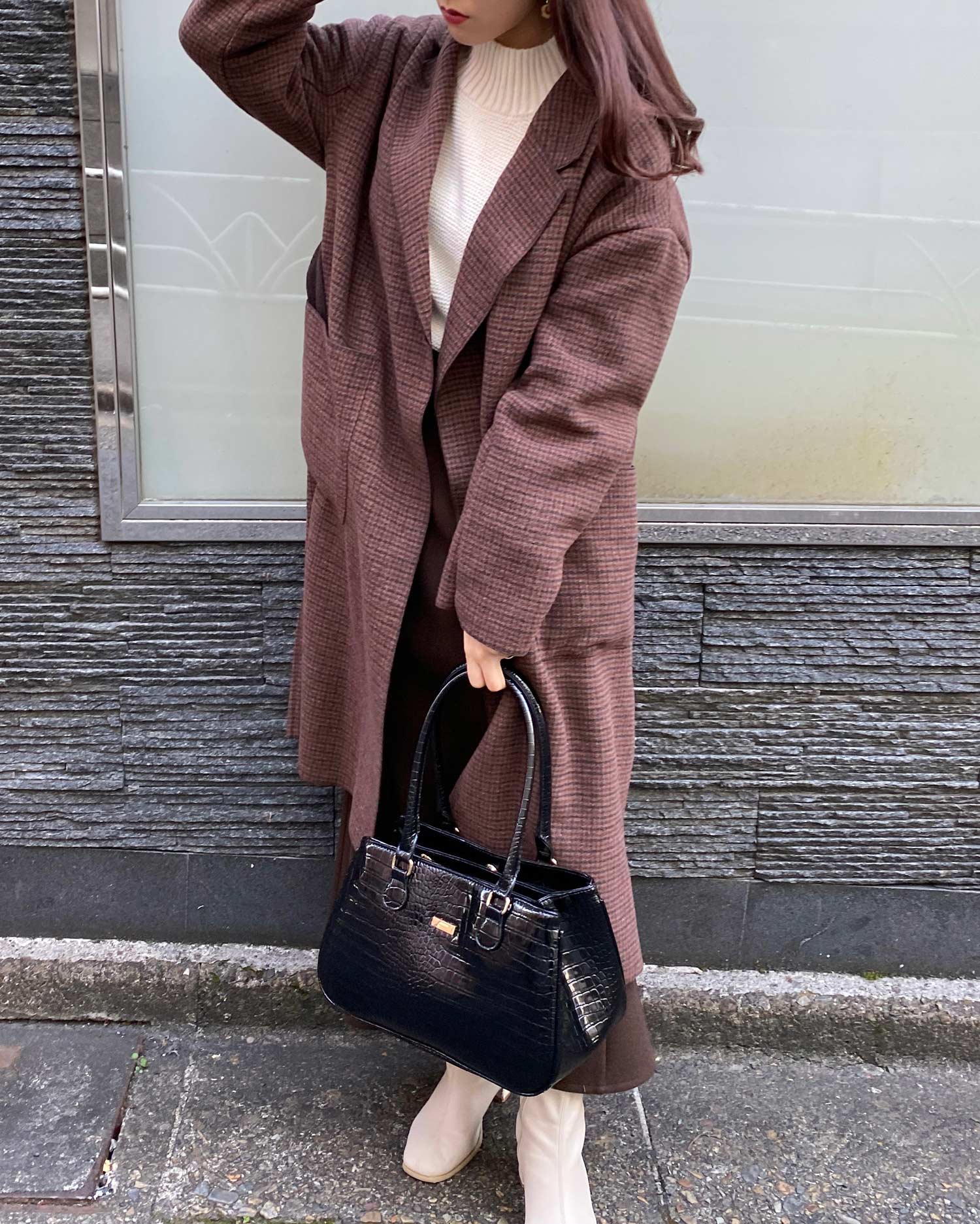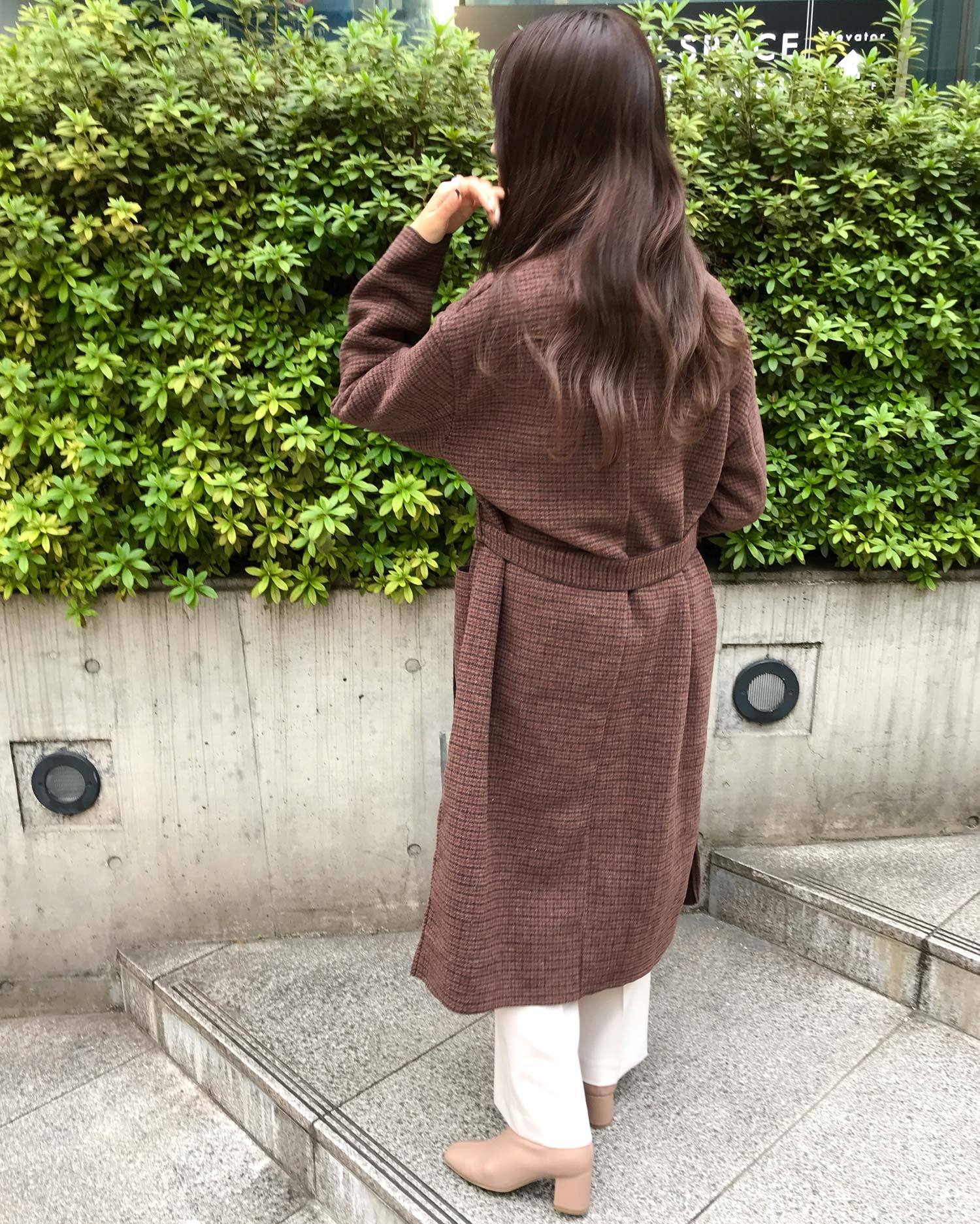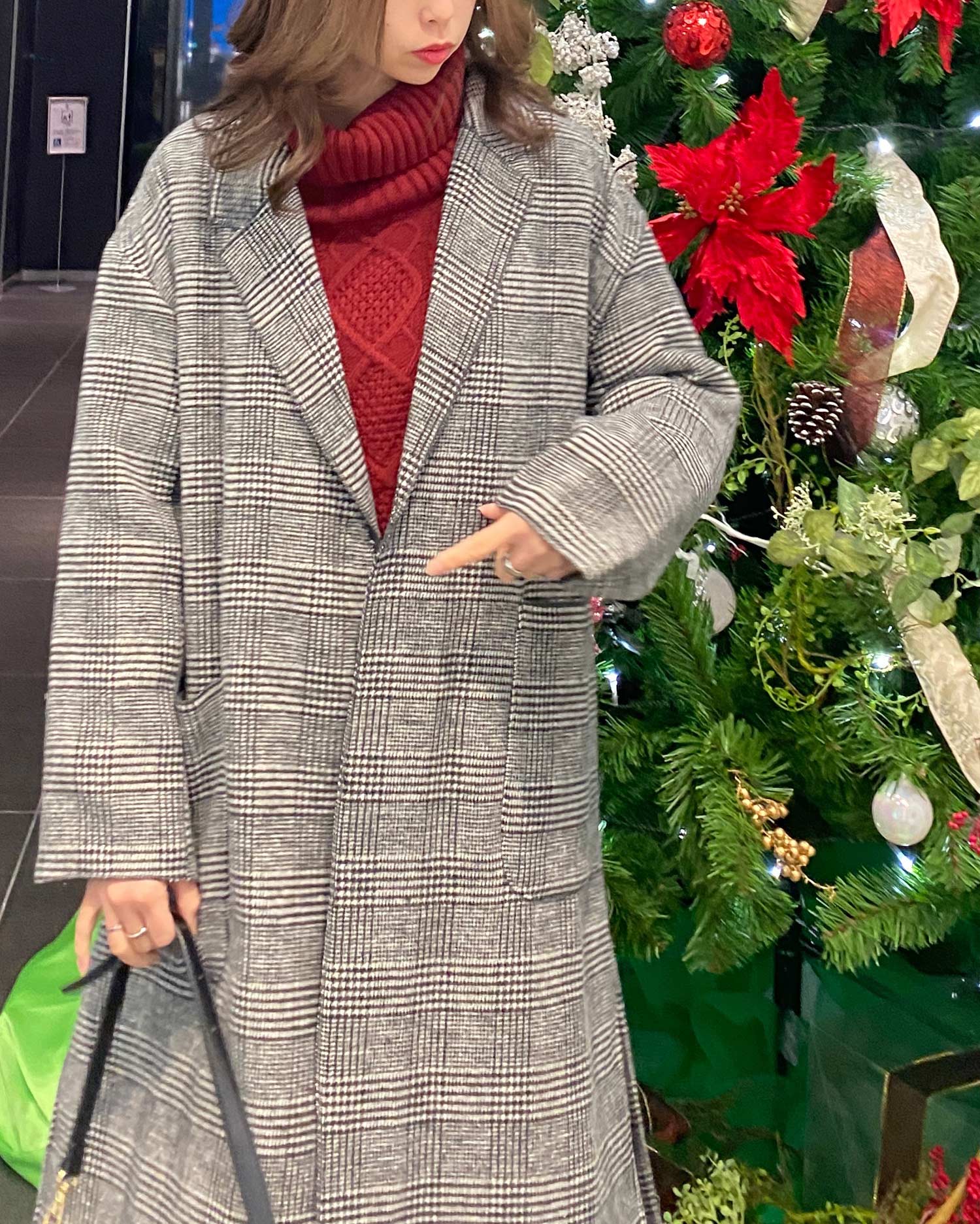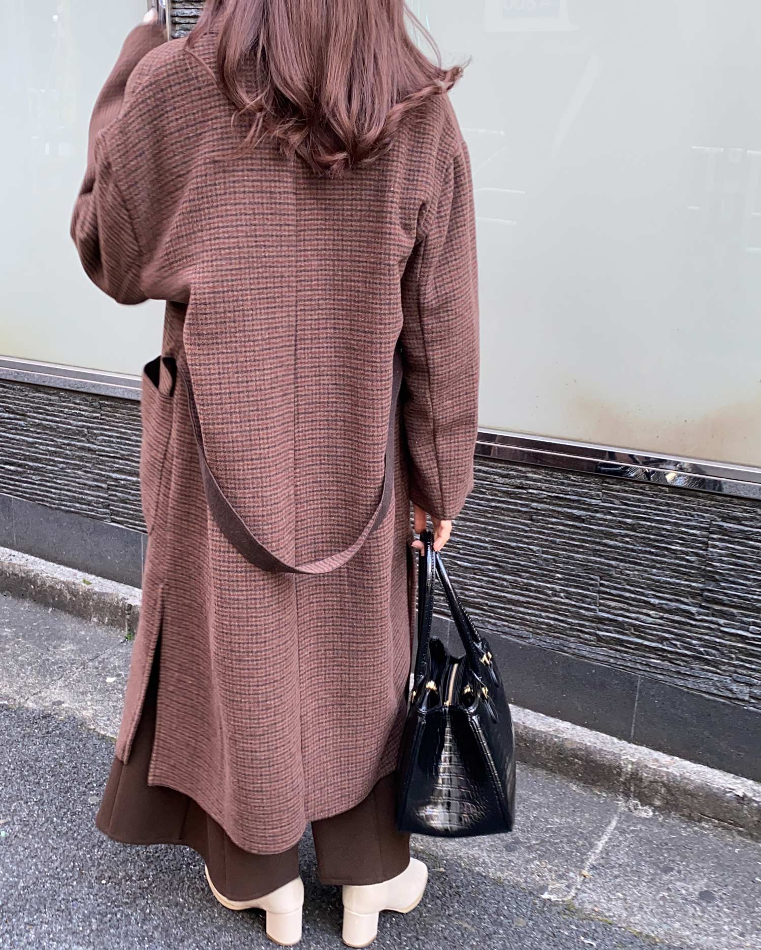 羽織るだけでレトロ&シックなコーデが完成するチェック柄のロングコート。