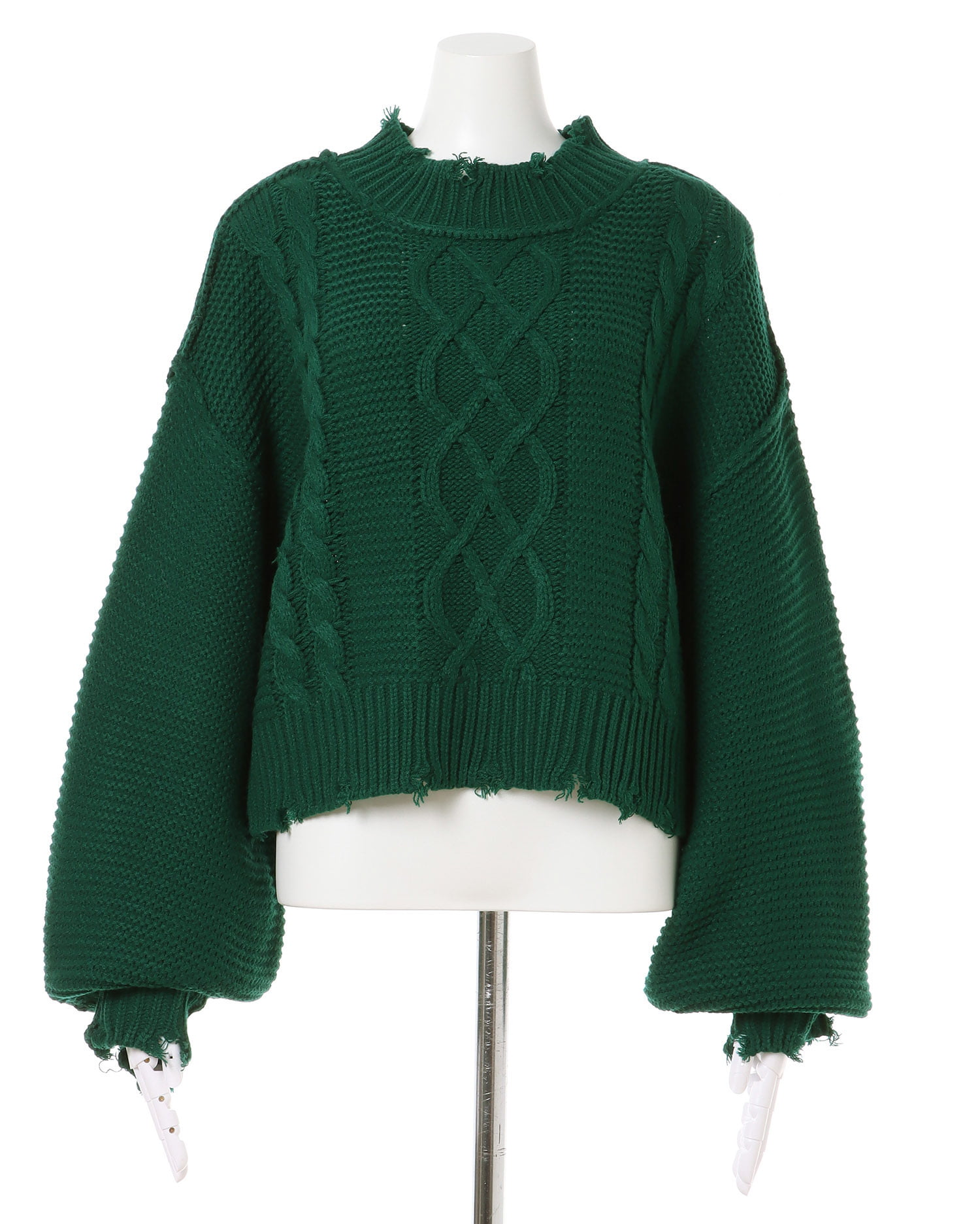 ざっくりニットにブロークン加工を組み合わせたスタイリッシュデザインのモックネックニット。