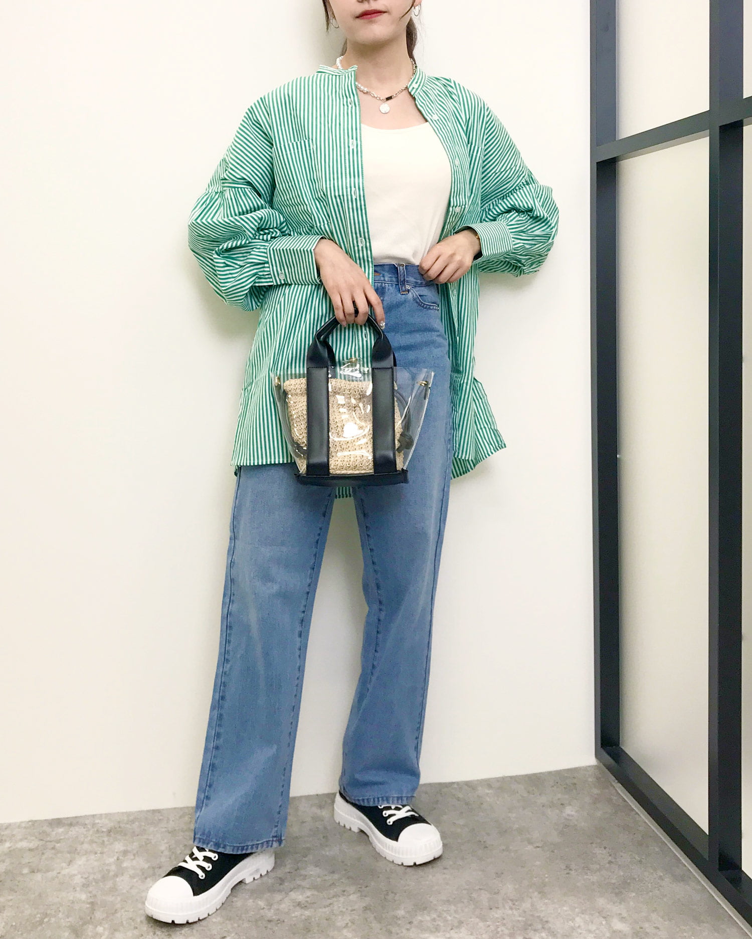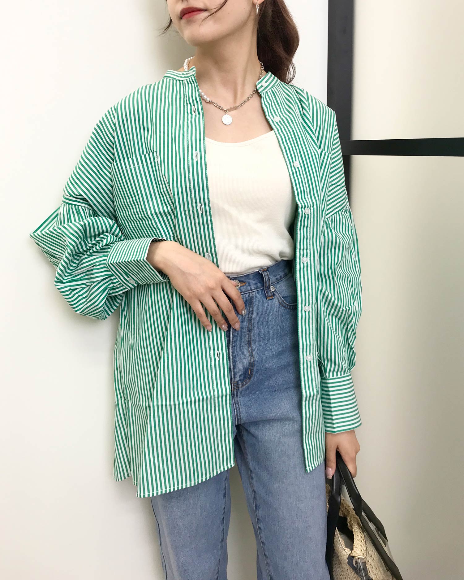 レディライクなスタイルはもちろん、Tシャツなどに合わせたカジュアルスタイルにもおすすめ。