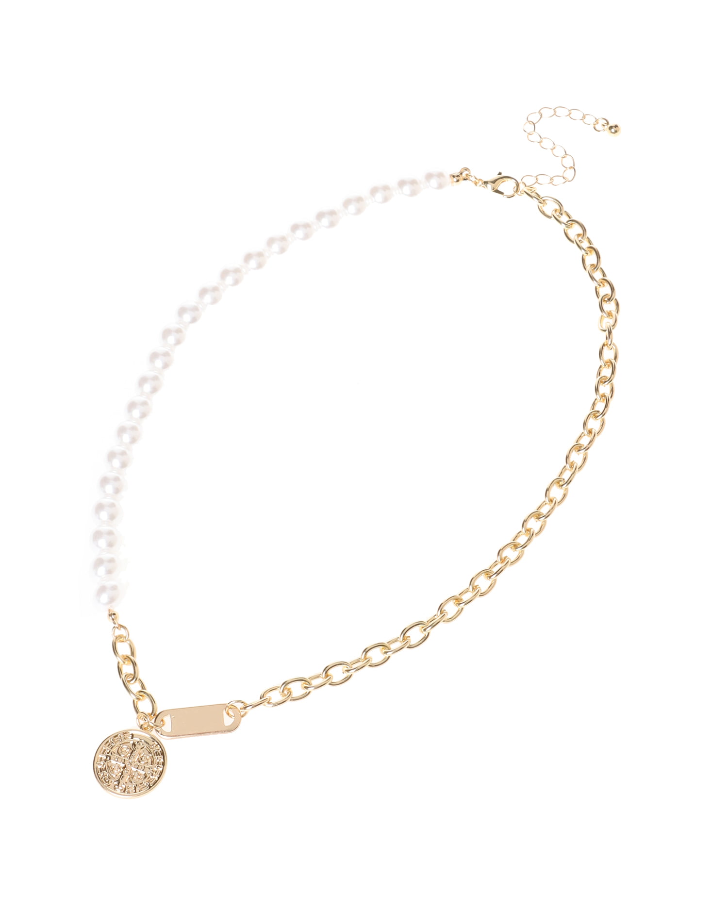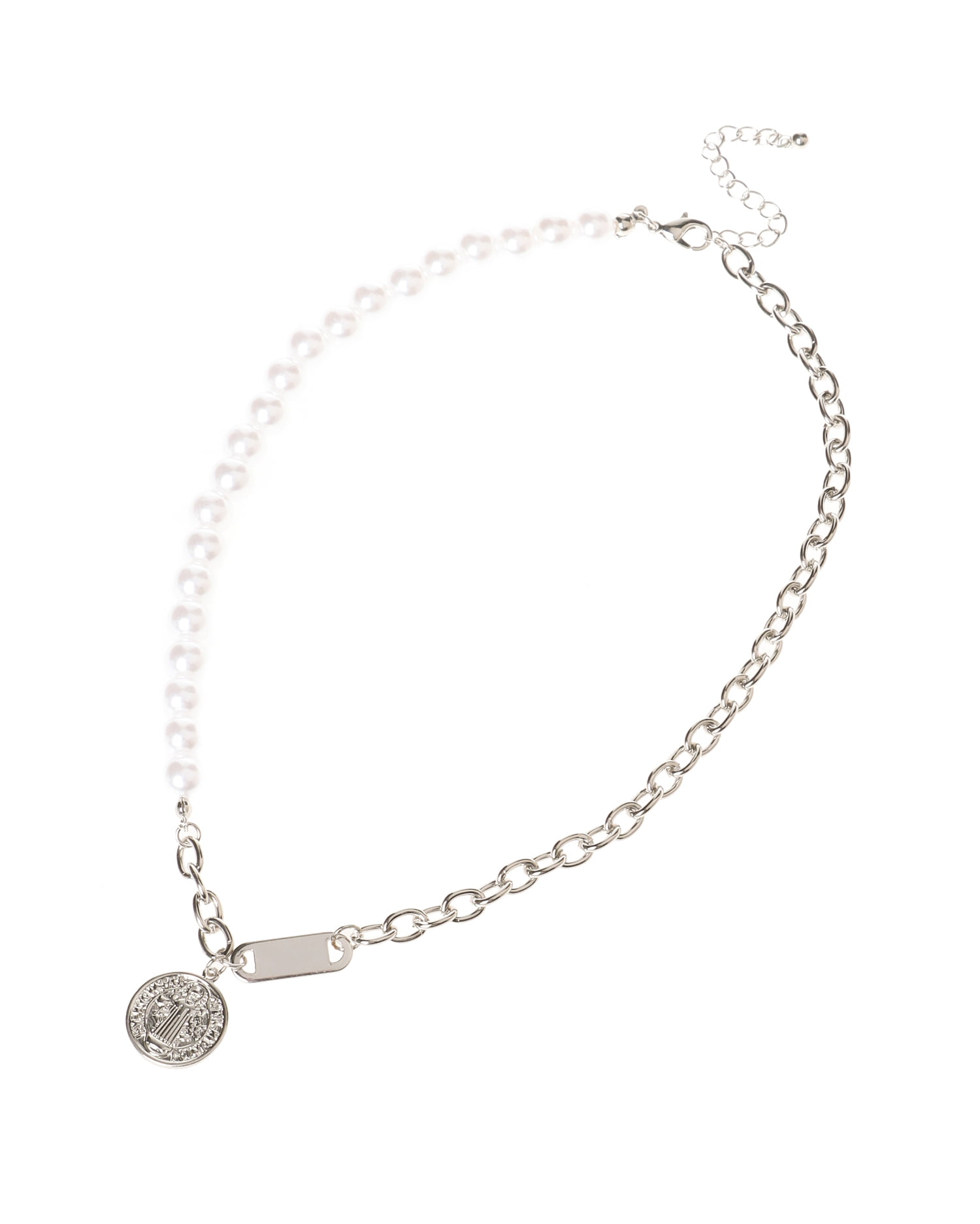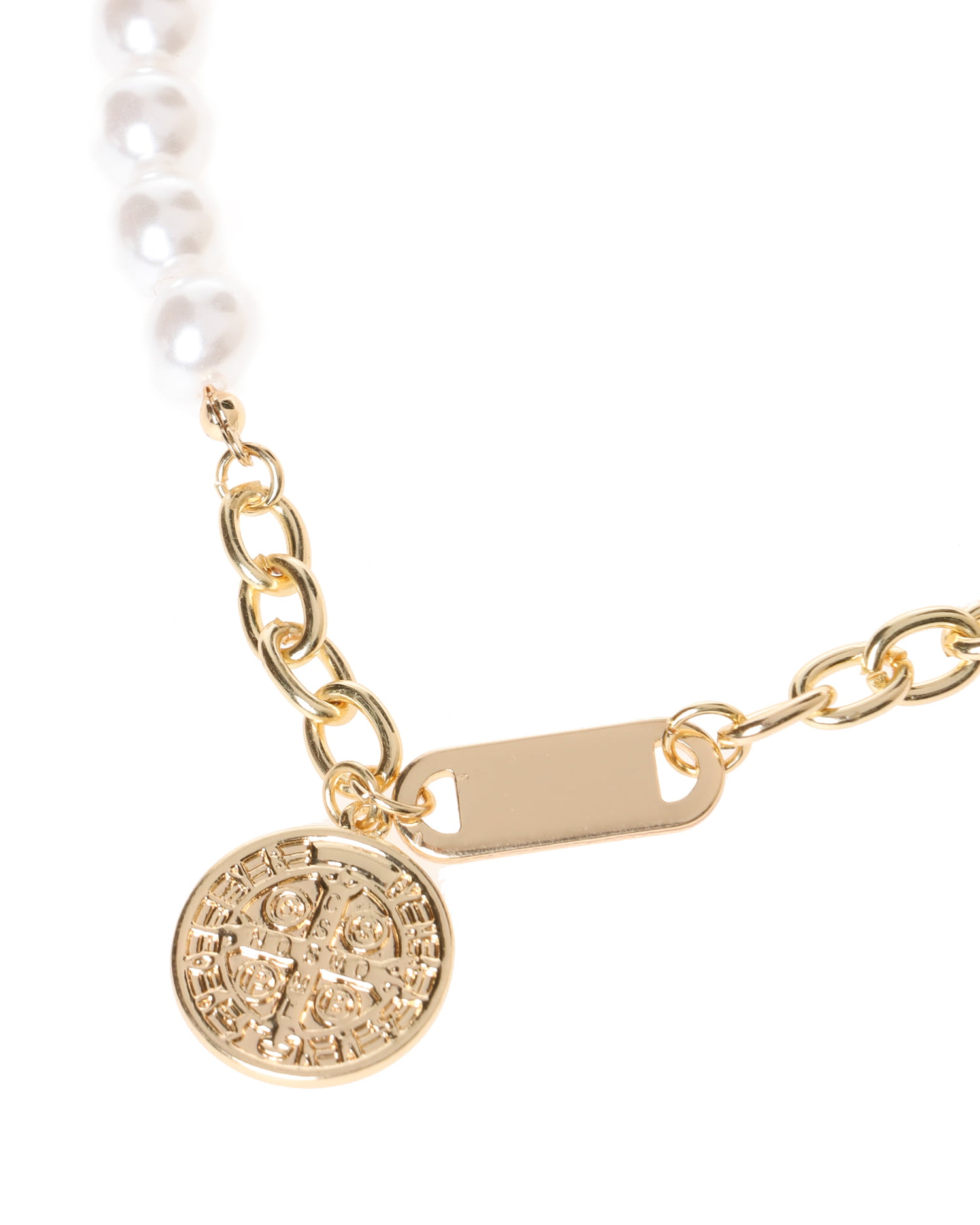 パールビジューとチェーンを組み合わせたリュクスな雰囲気のネックレス。