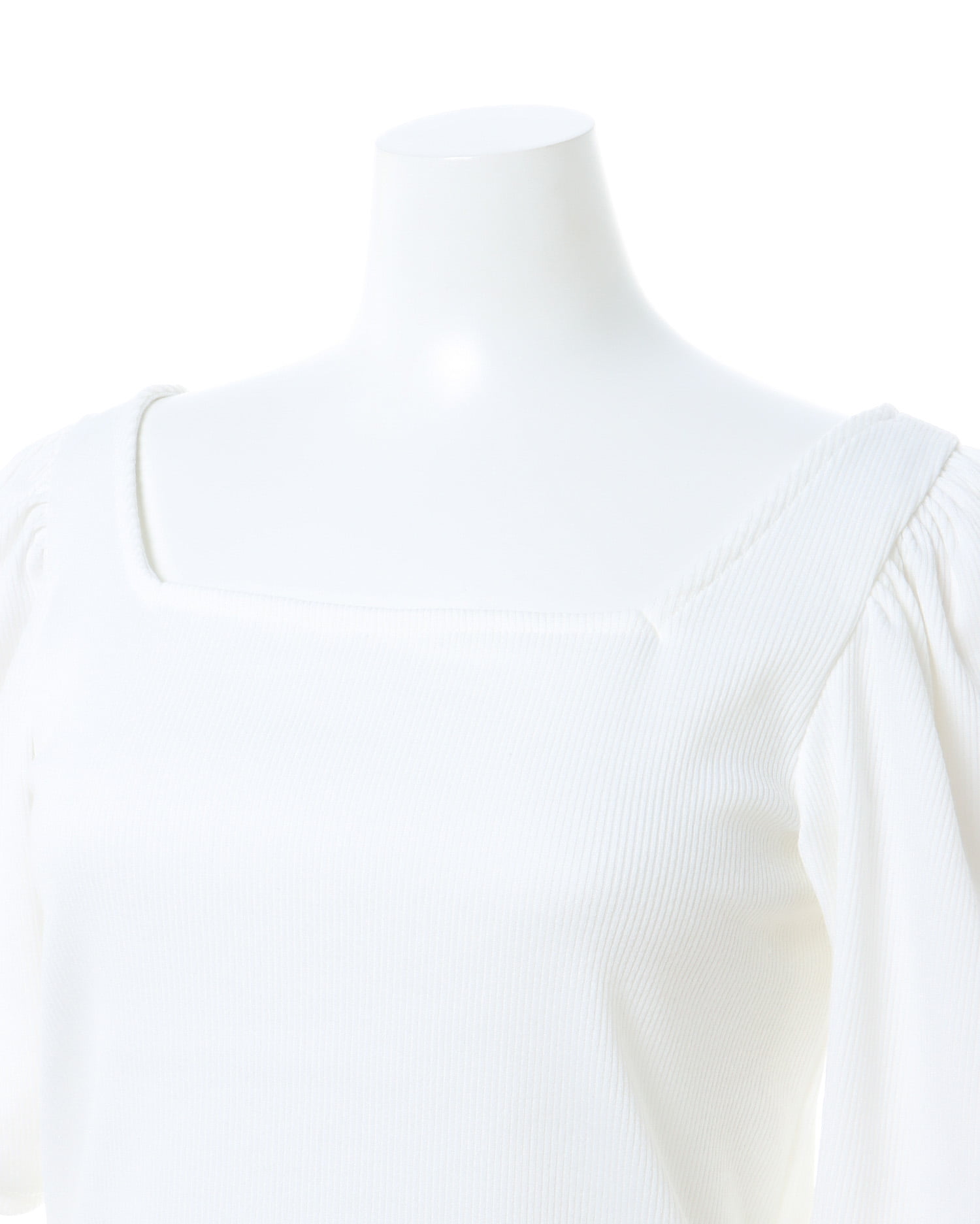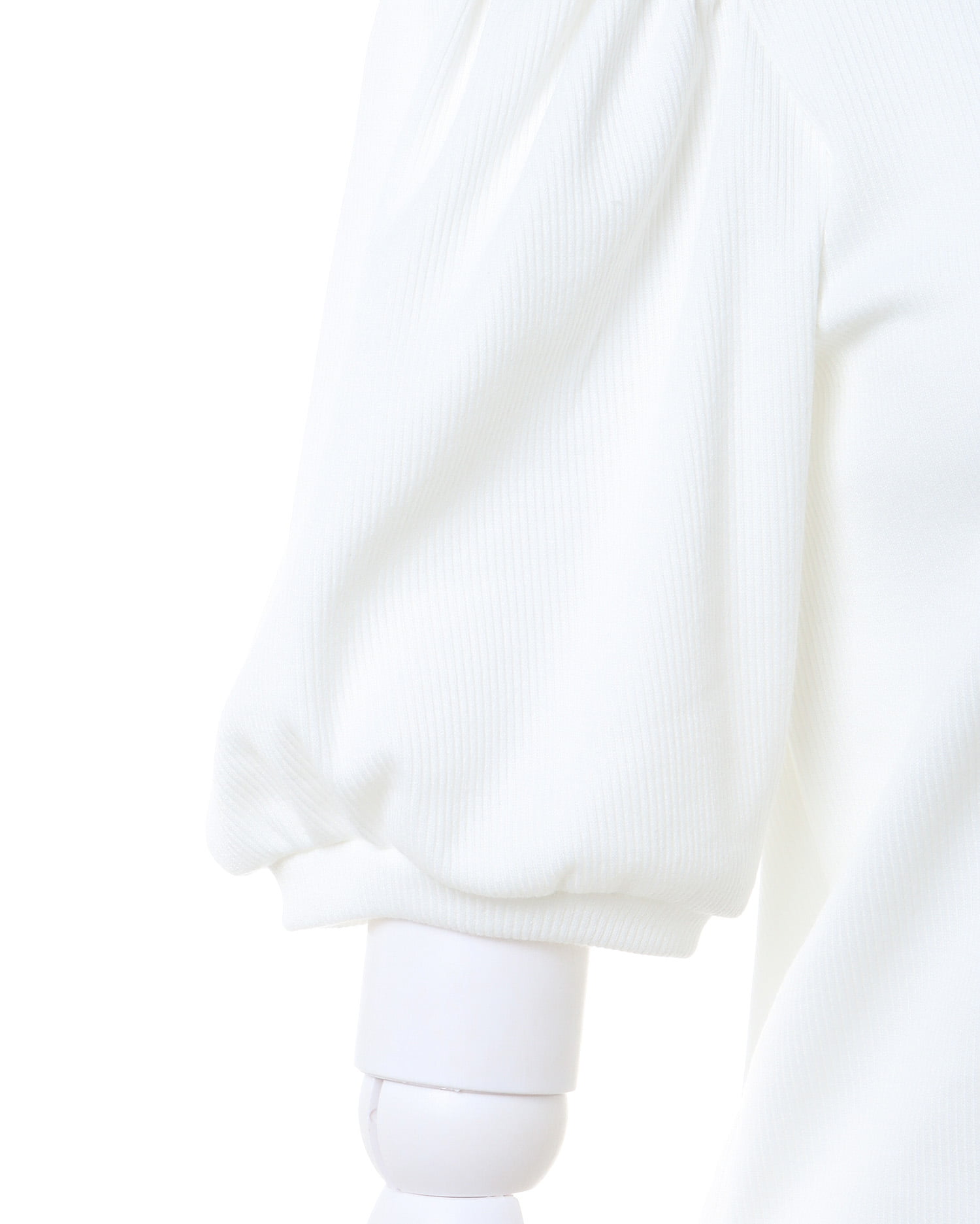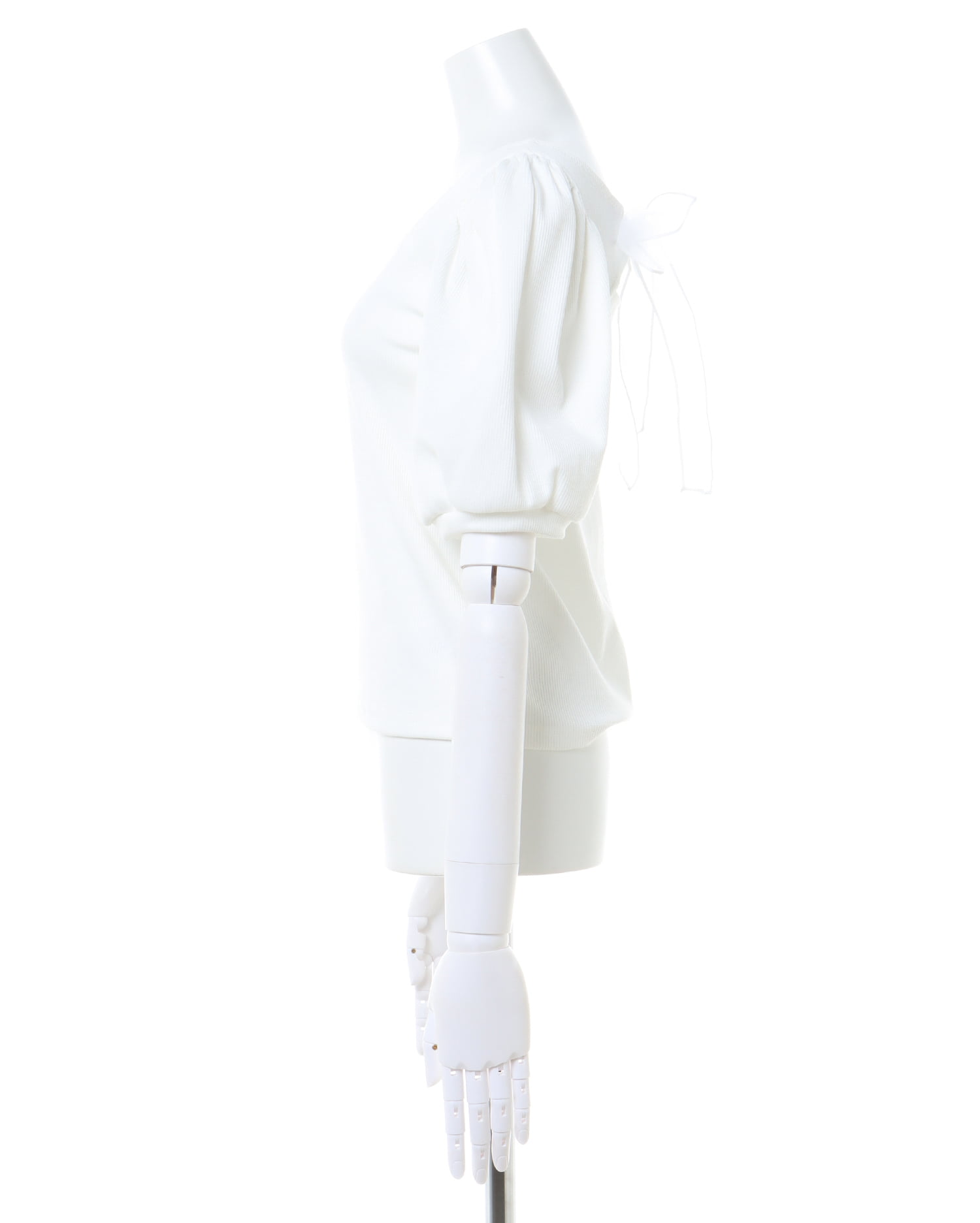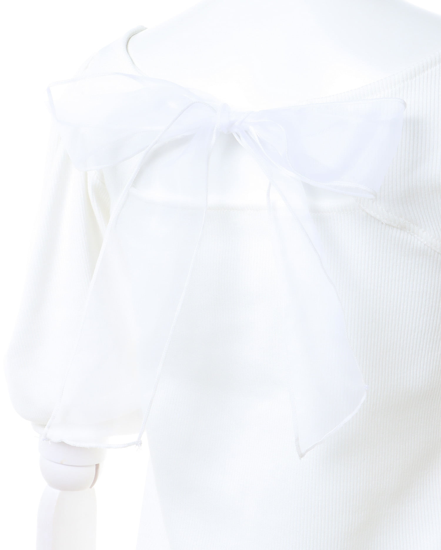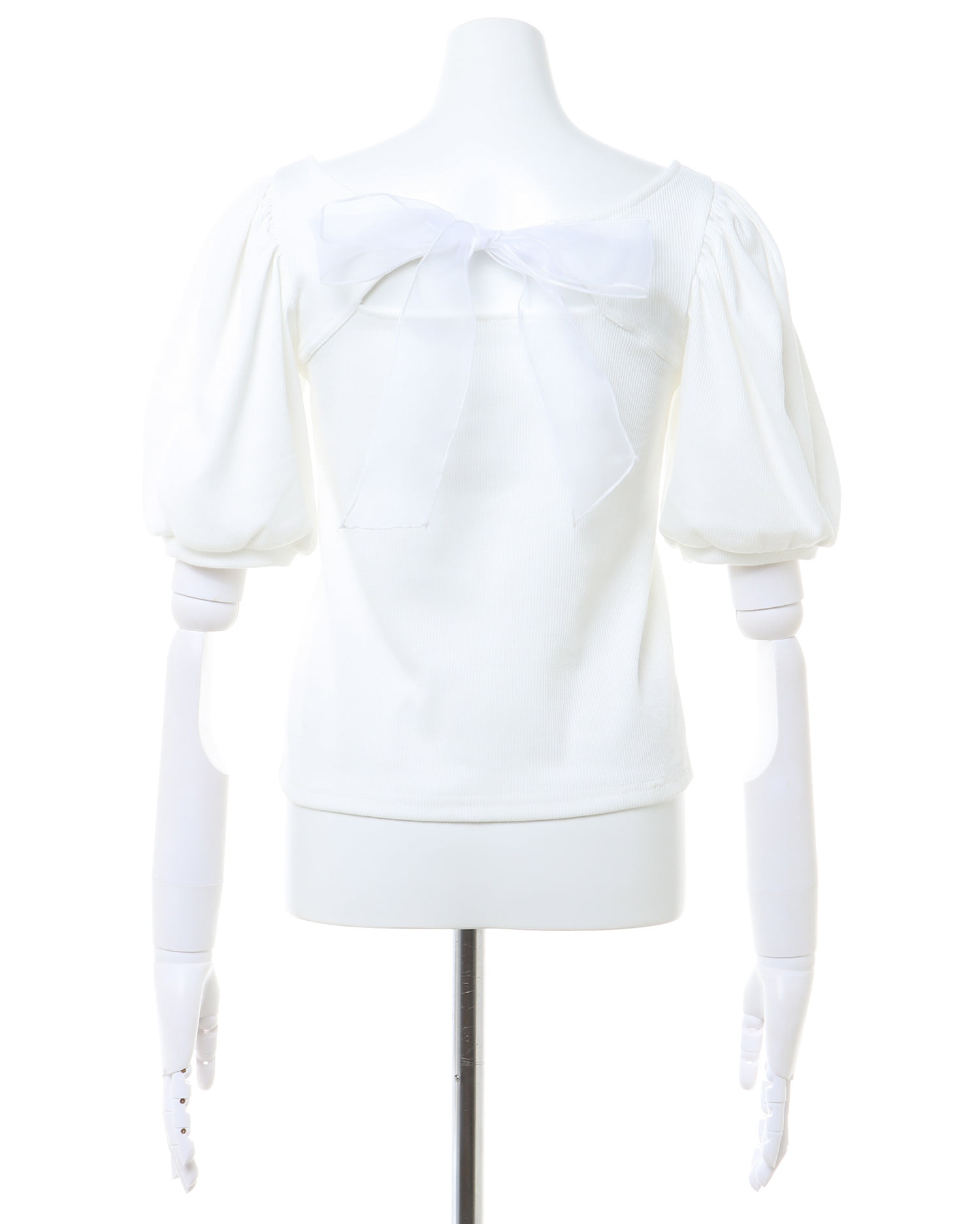 バックの大きなリボンが主役級の存在感を放つリブトップス。