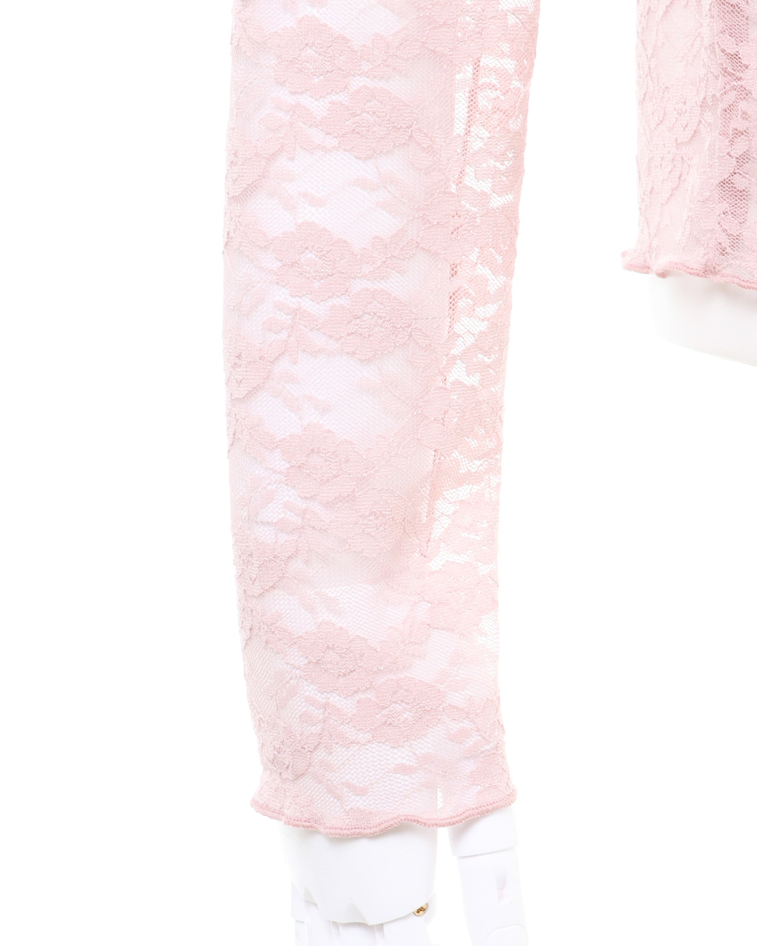 繊細な総レースが品のあるレイヤードを完成させるトップス。