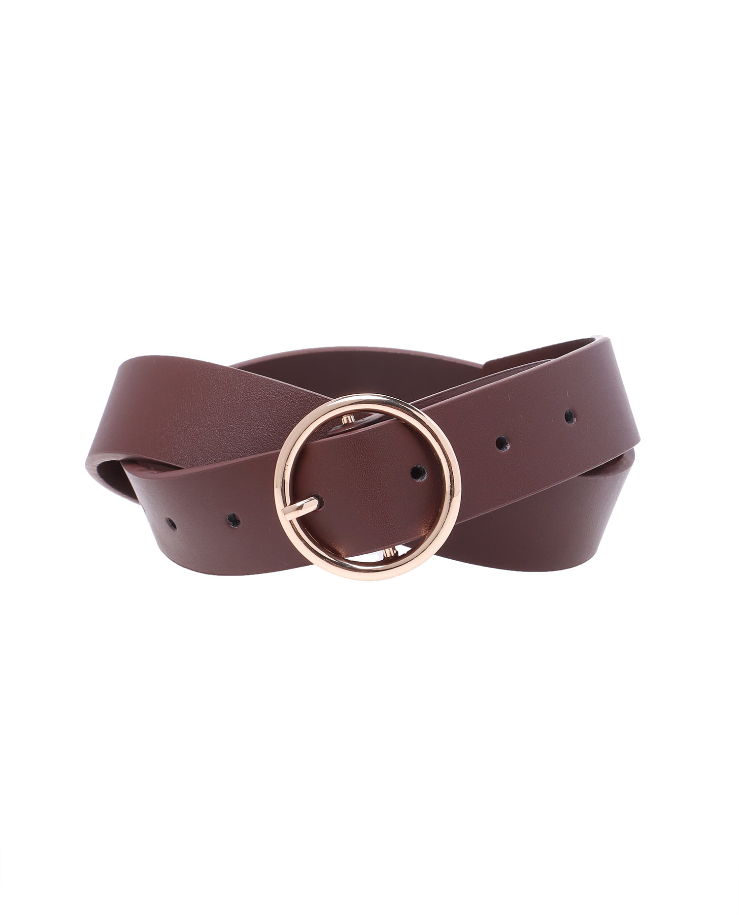丸いリングバックルがやわらかな印象へ導くシックなベルト。