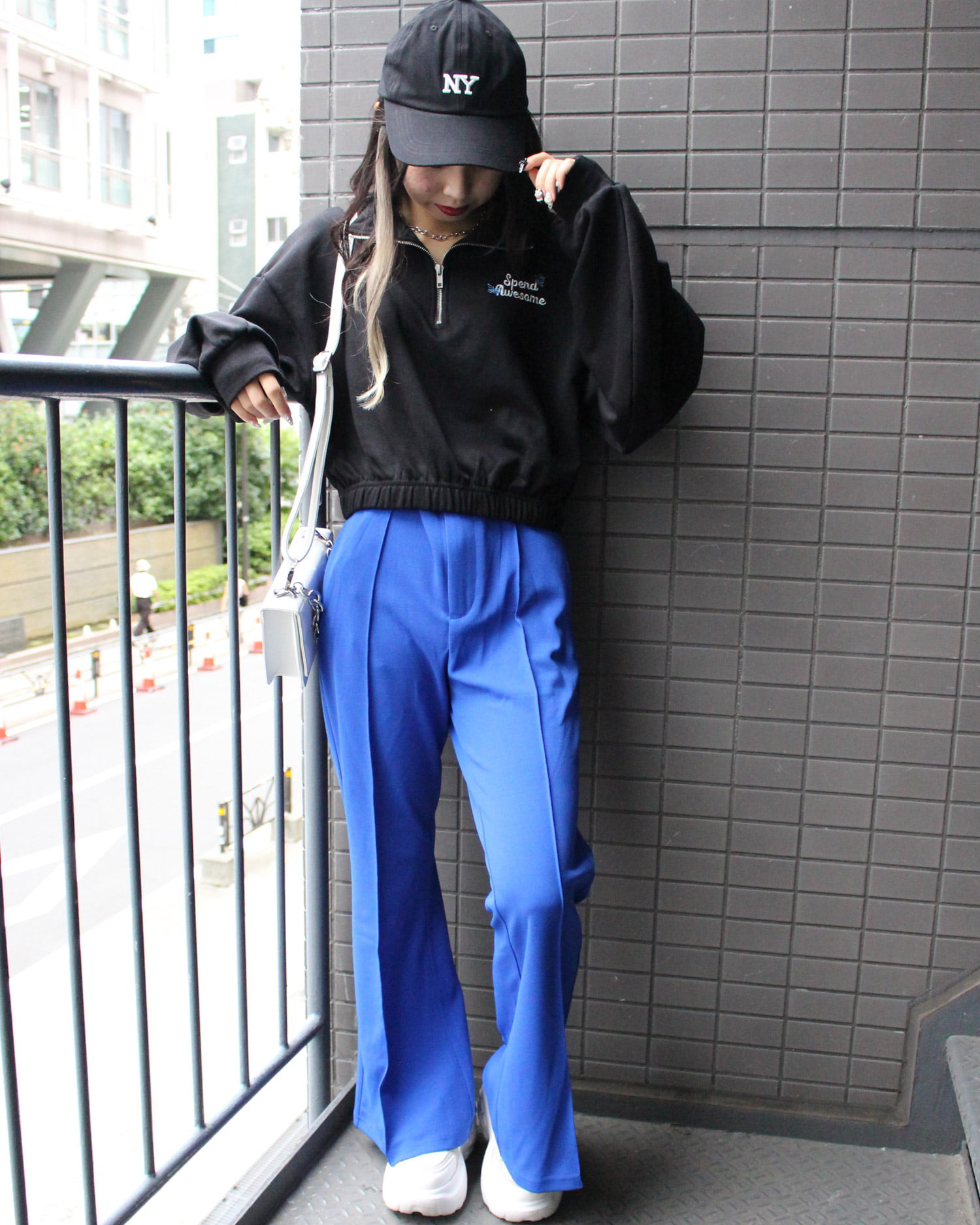 裾をキュッと絞ったデザインでメリハリのあるシルエットを演出するハーフジップトップス。