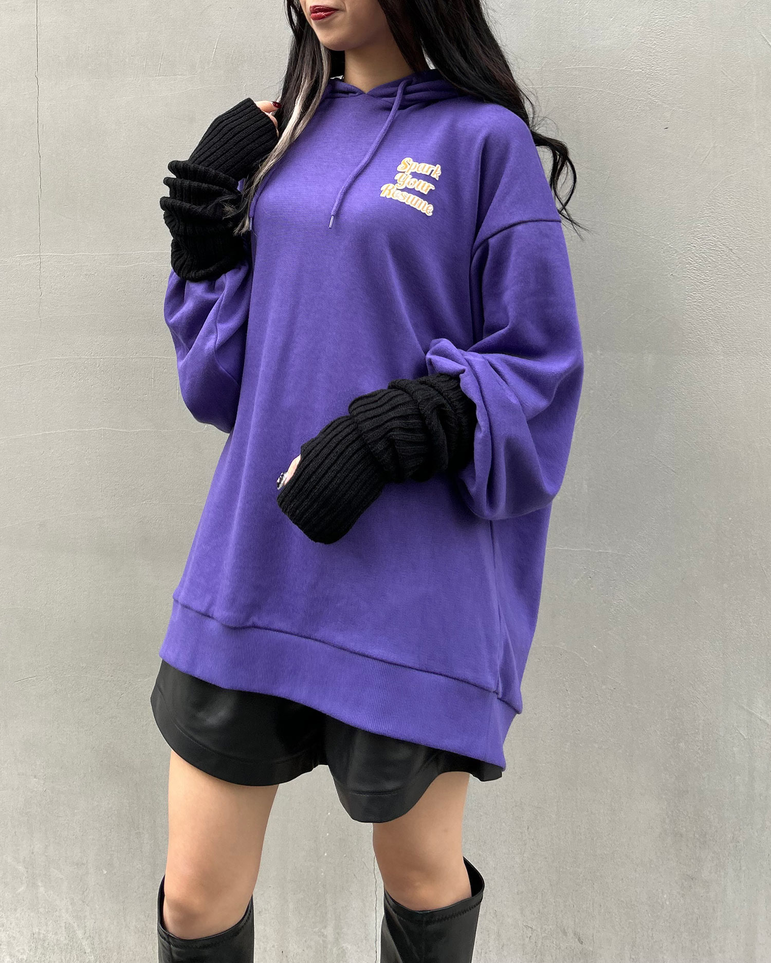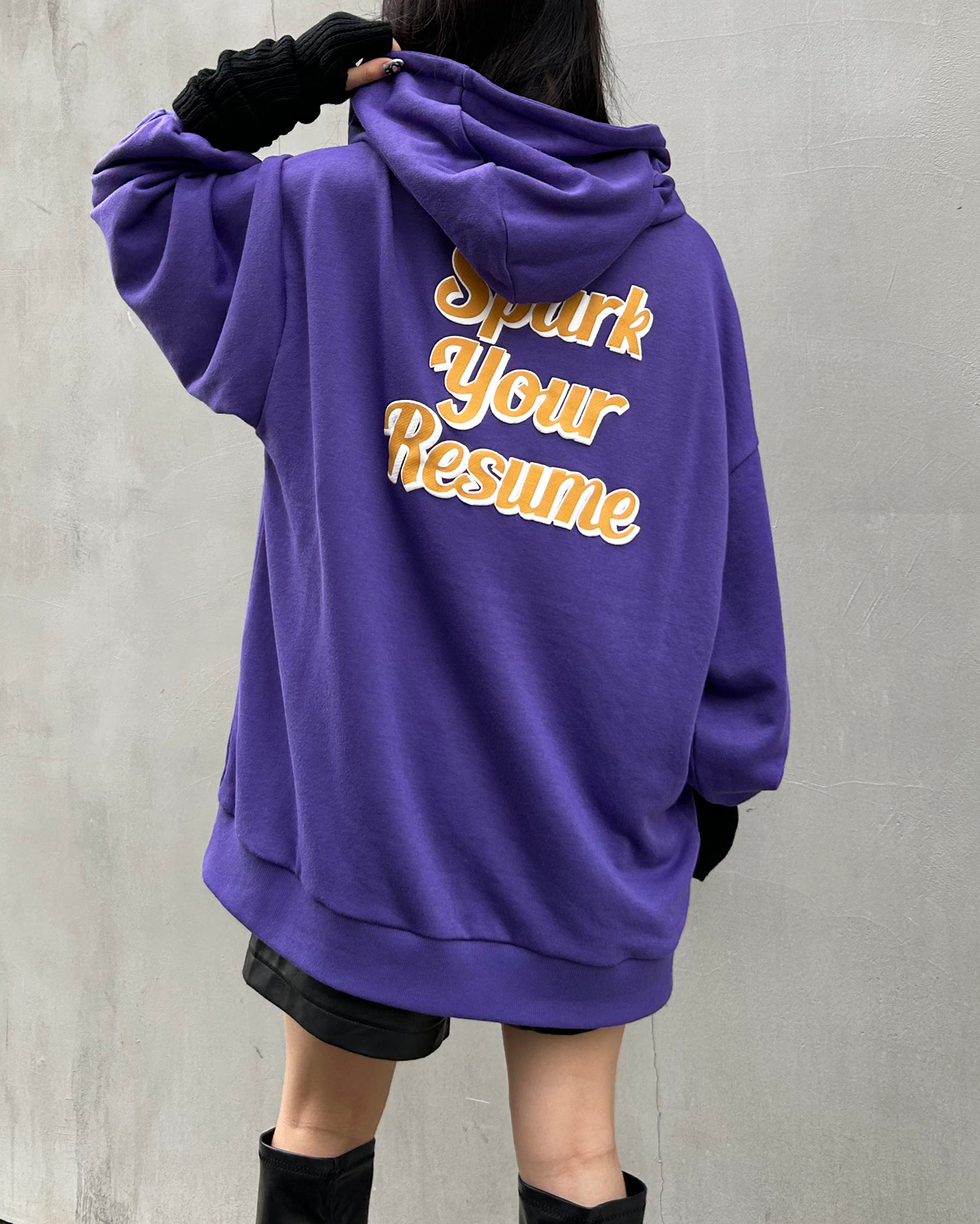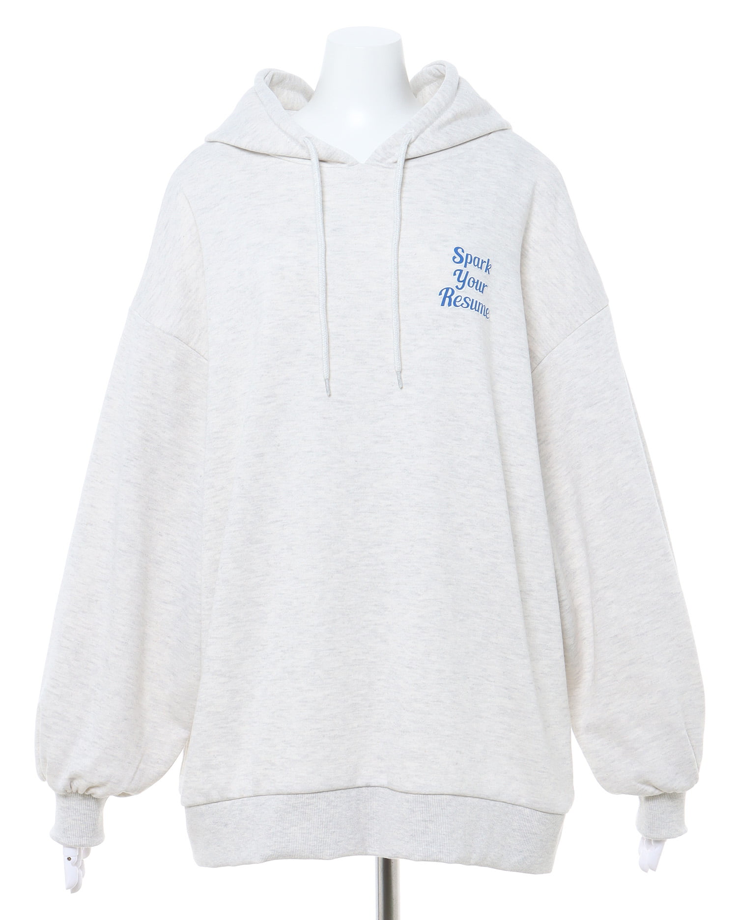 バックにあしらった大きな発泡ロゴが目を引くパーカー。