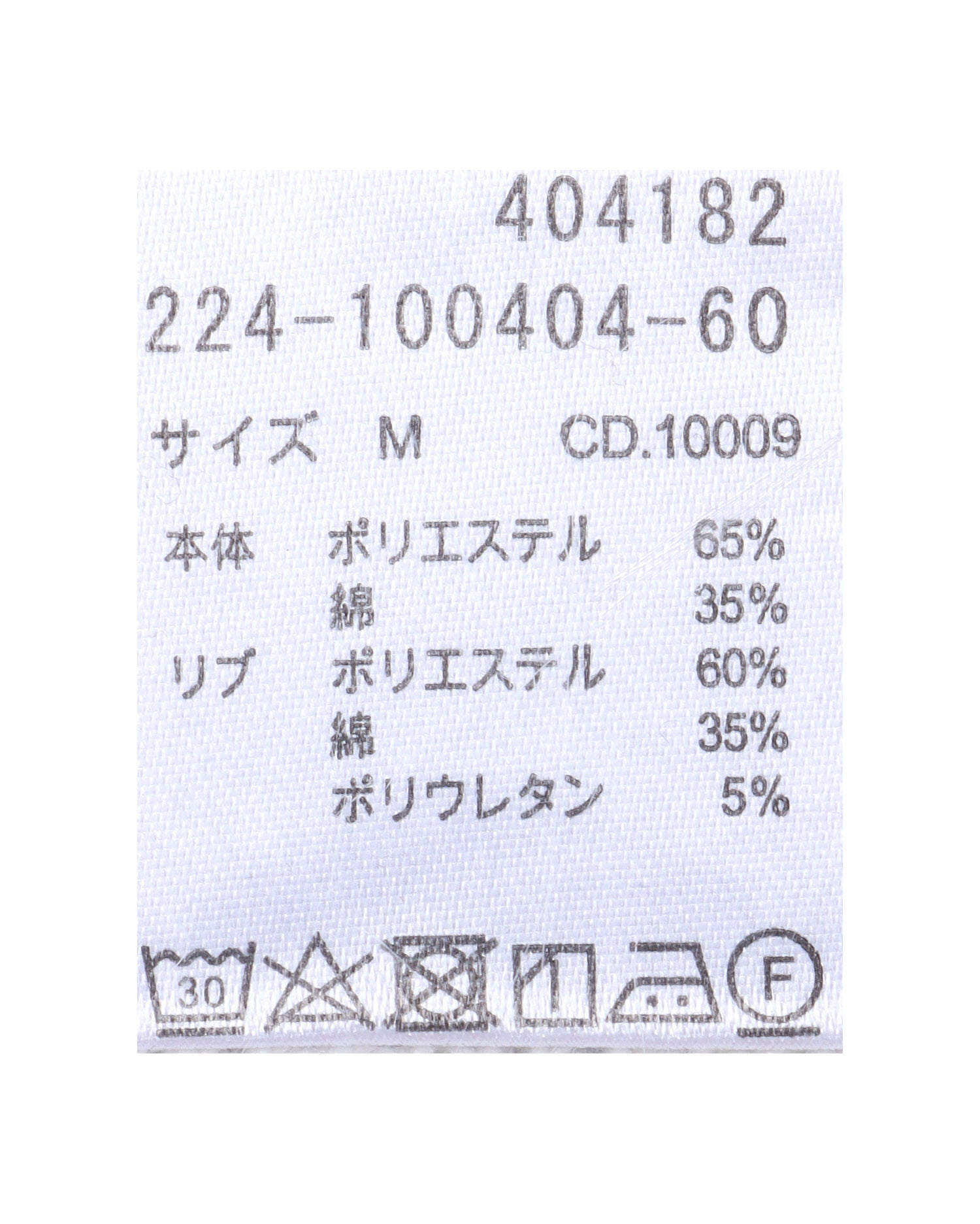 原産国 中国 本体 ポリエステル65% 本体 綿35% リブ ポリエステル60% リブ 綿35% リブ ポリウレタン5%
