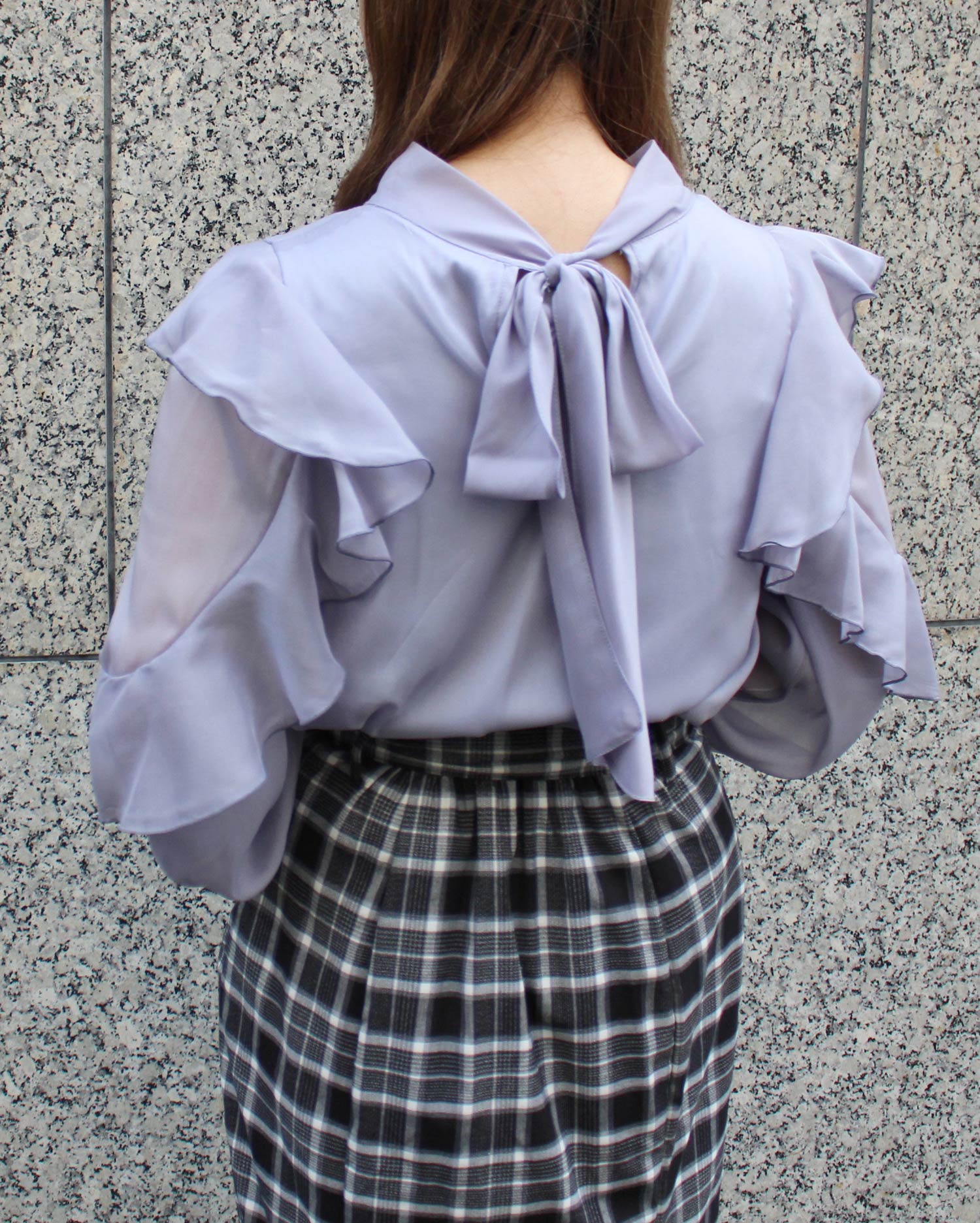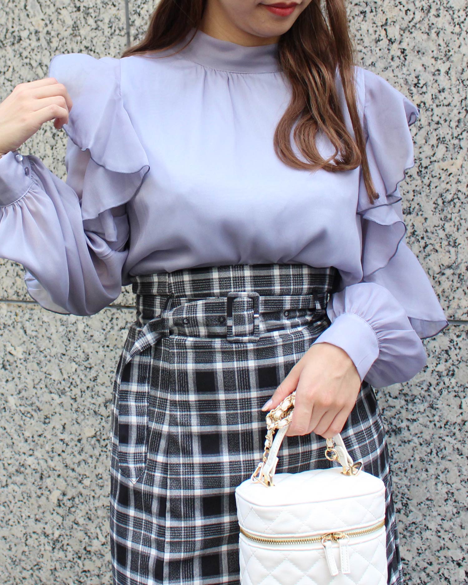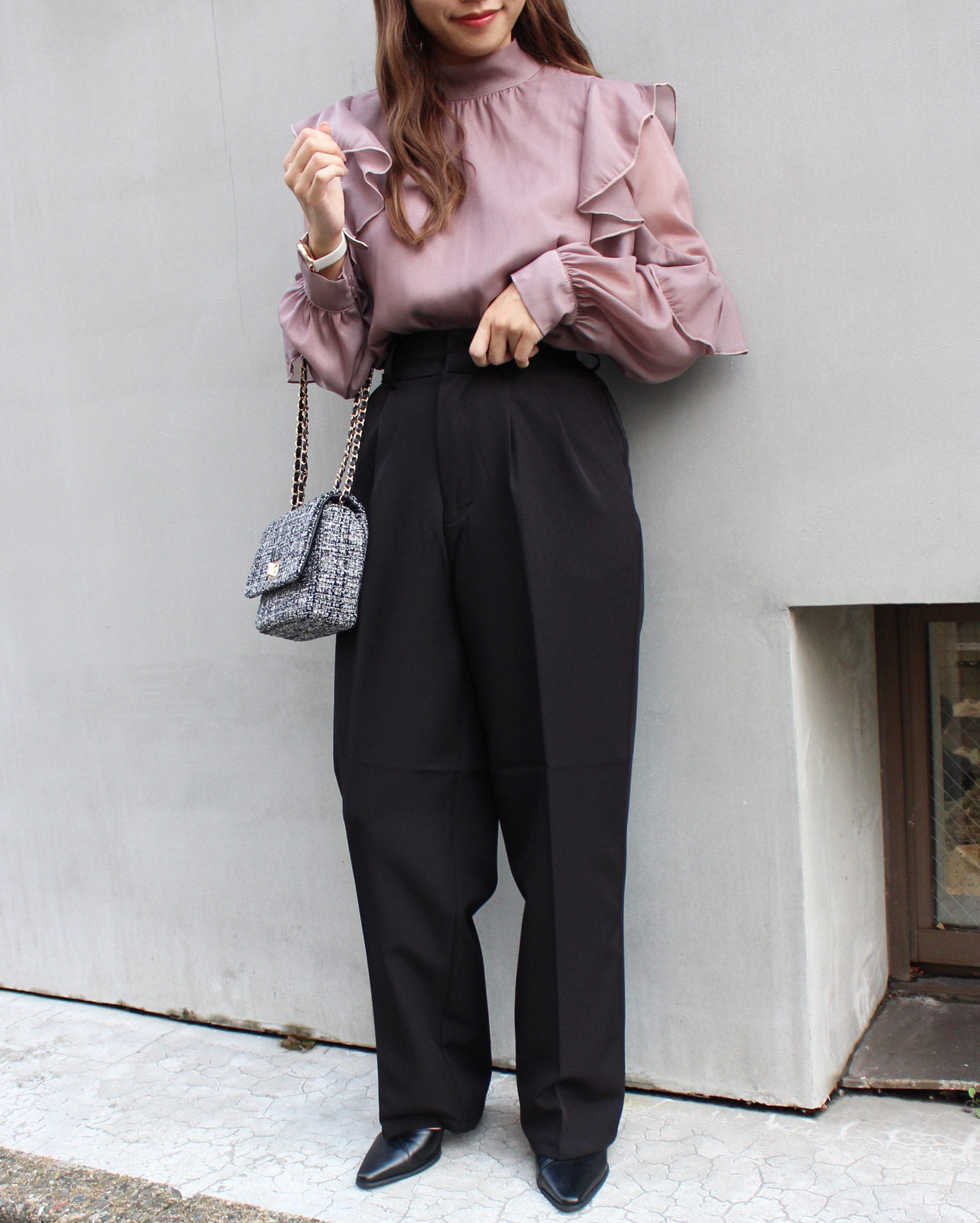 袖にあしらったフリルがレディライクな印象をさらにプラス。