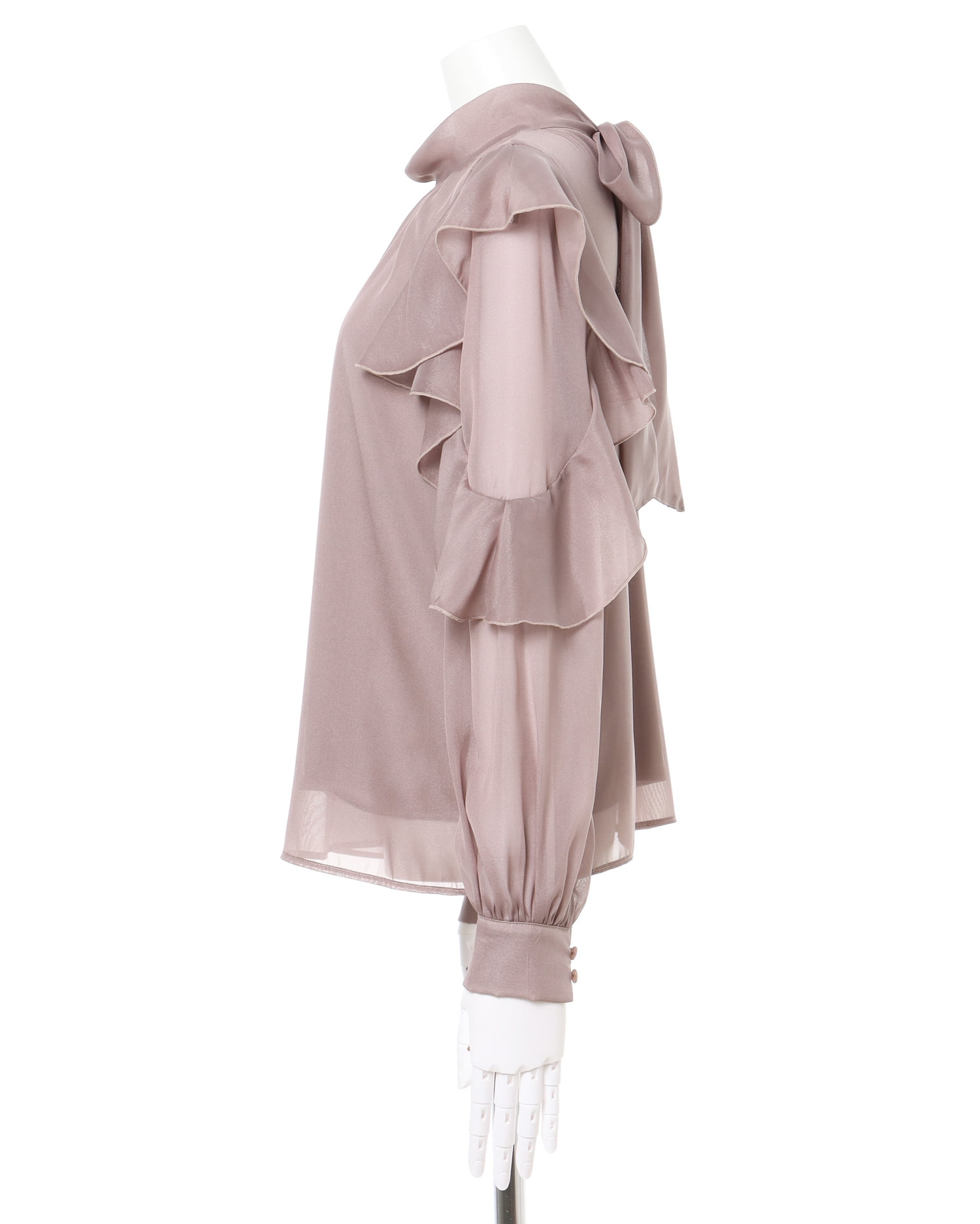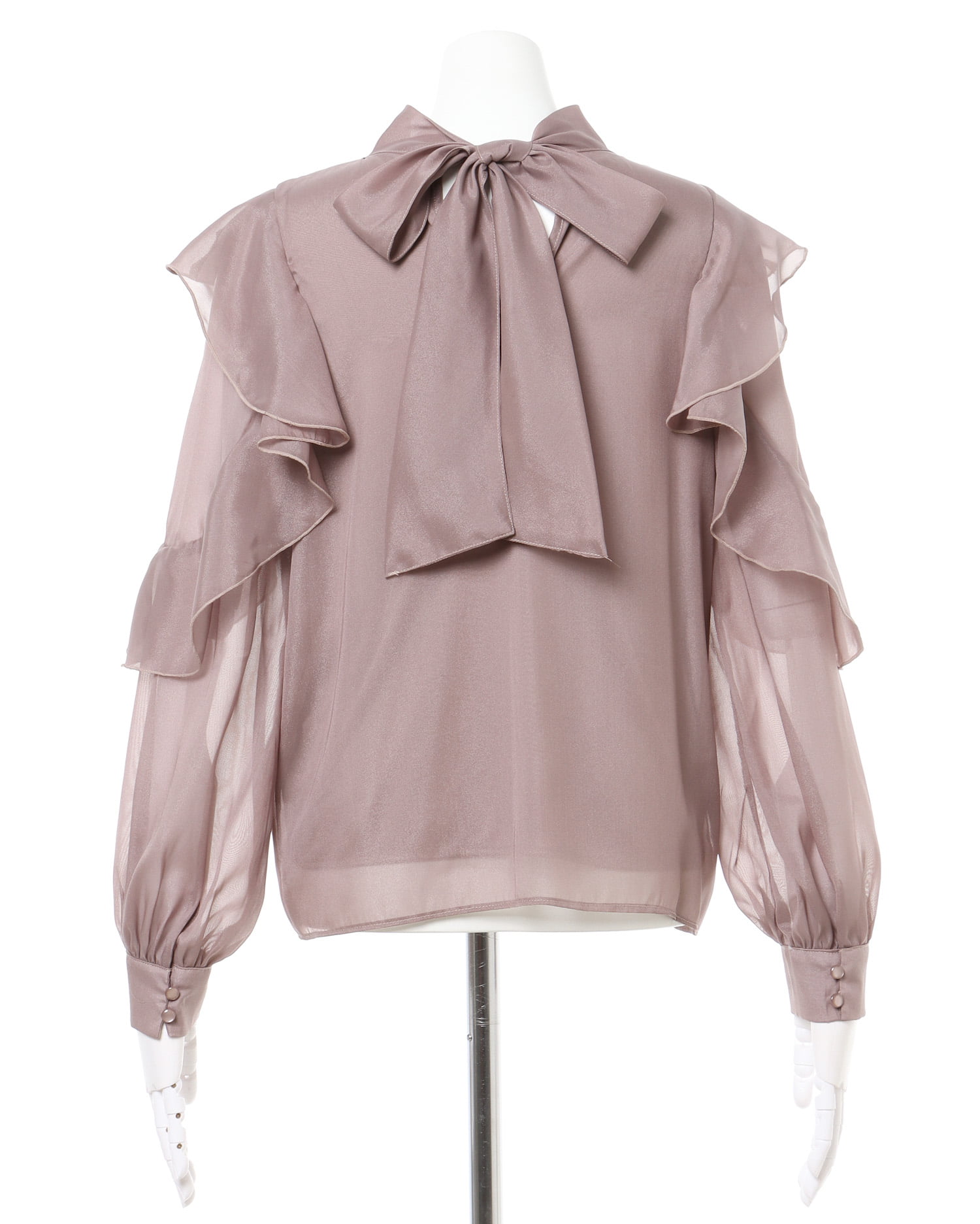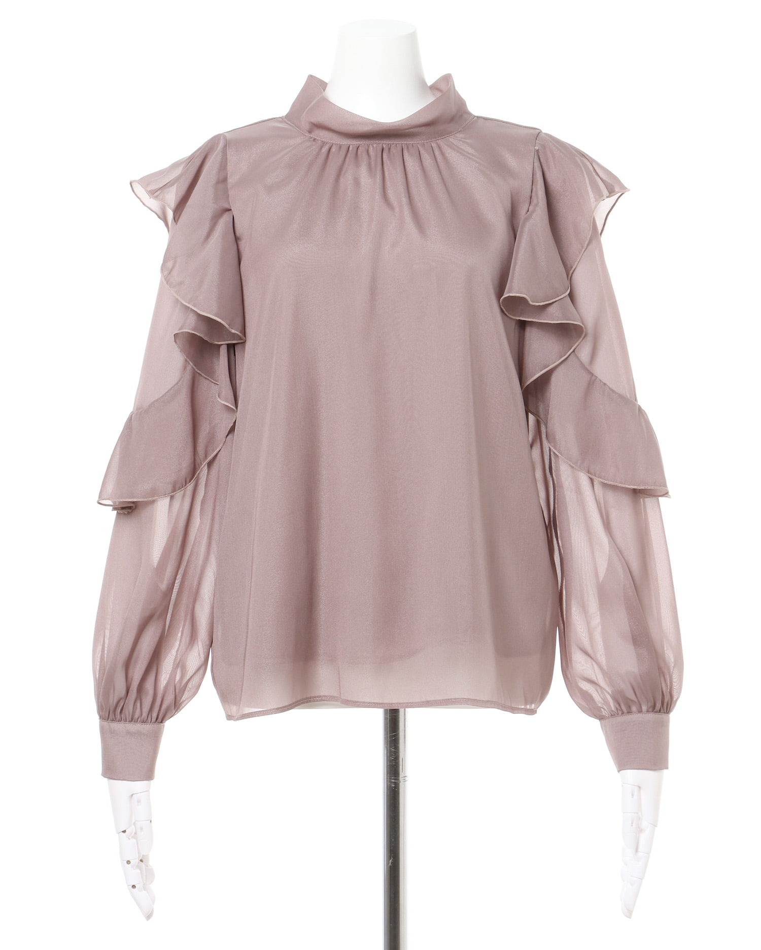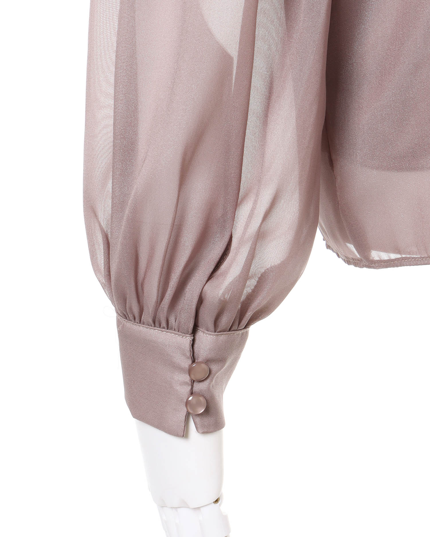 ほんのりラメ感のあるシアー生地で仕立てたラグジュアリーな雰囲気のブラウス。
