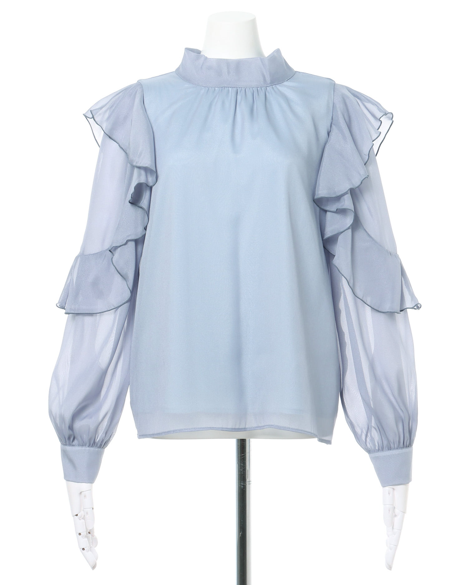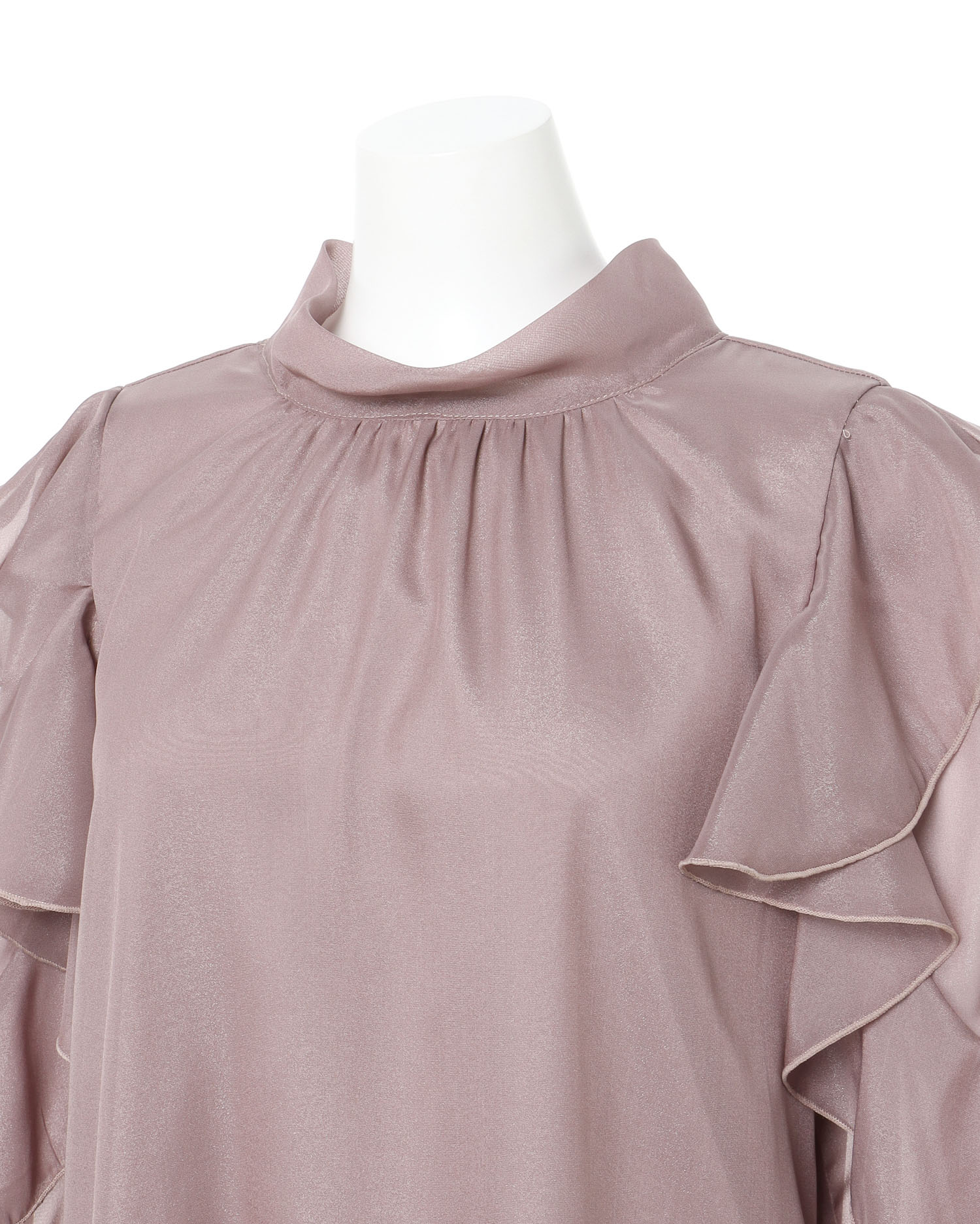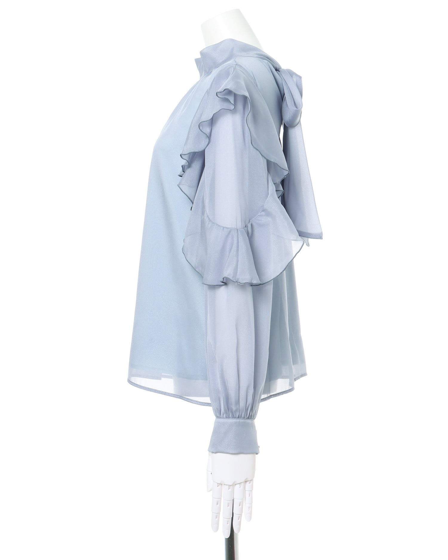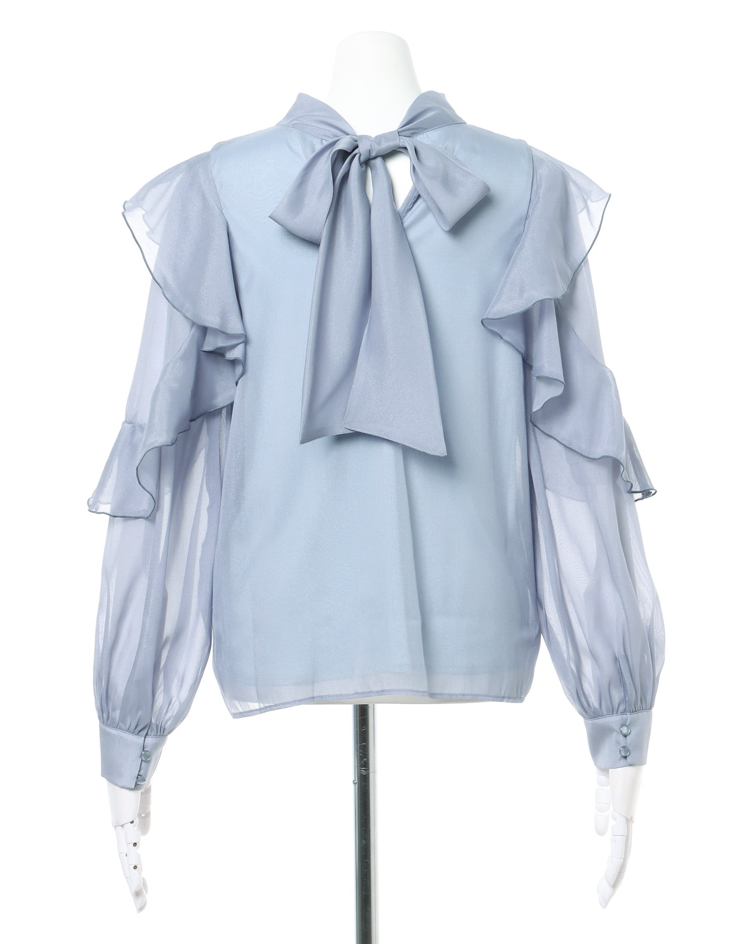 ほんのりラメ感のあるシアー生地で仕立てたラグジュアリーな雰囲気のブラウス。
