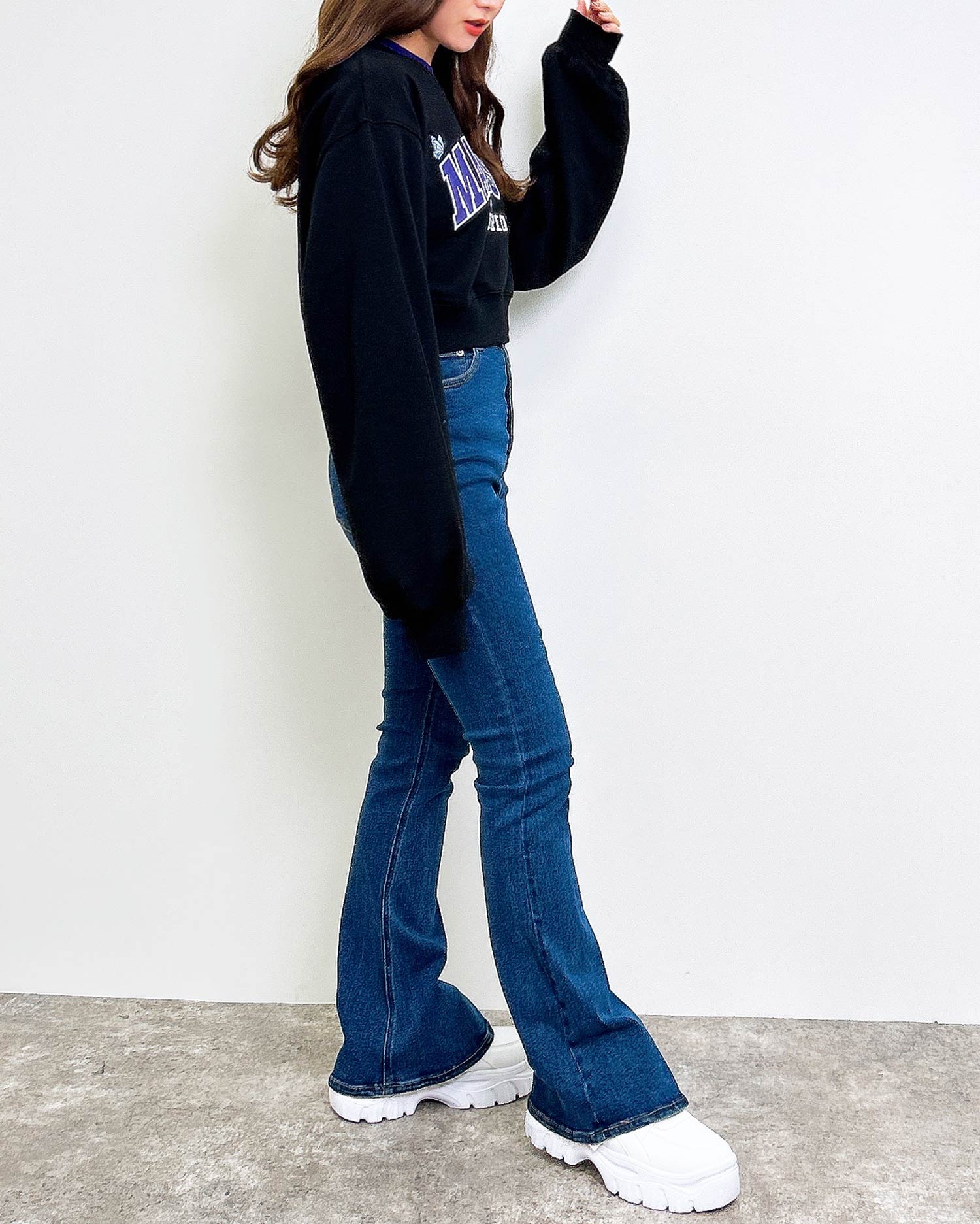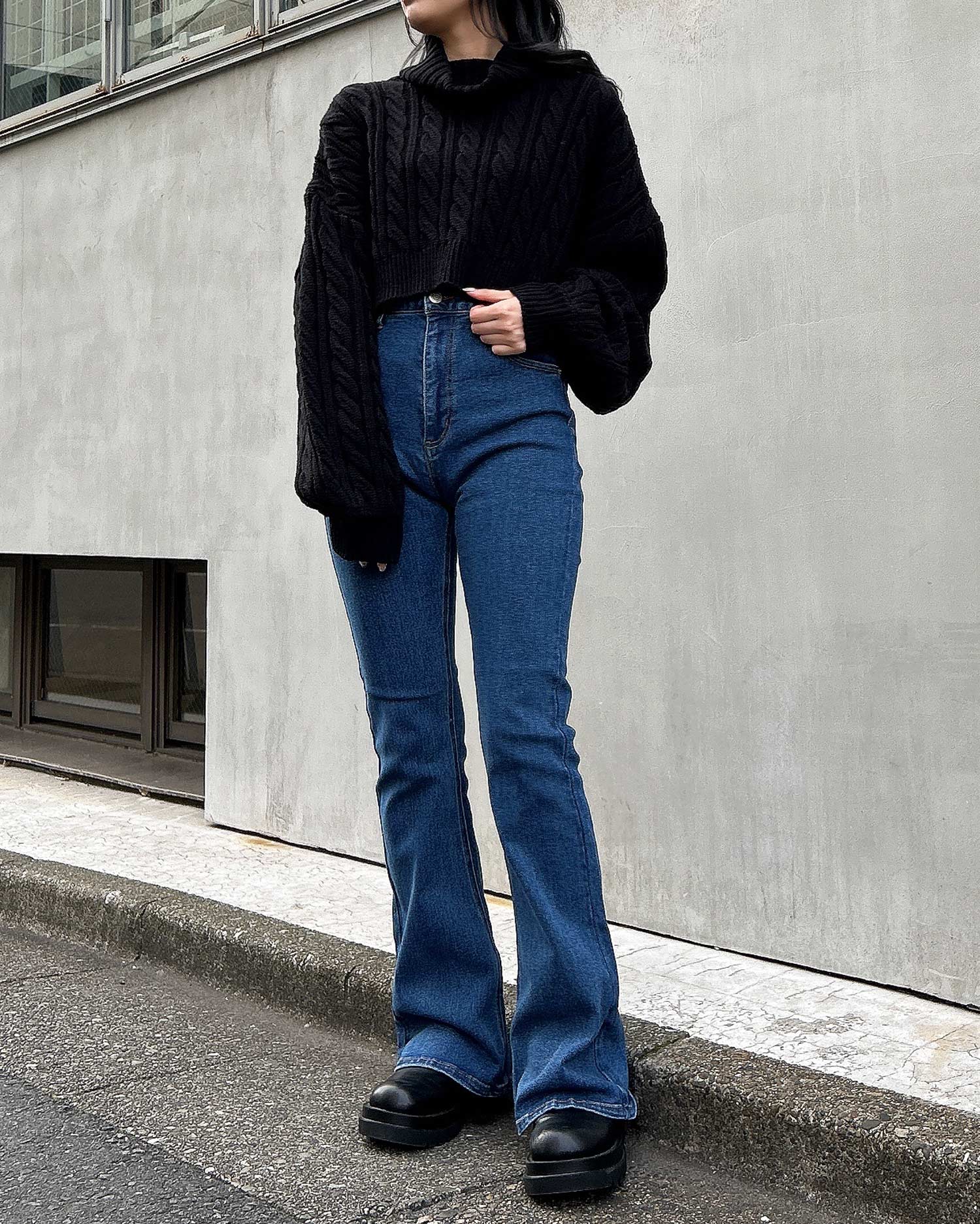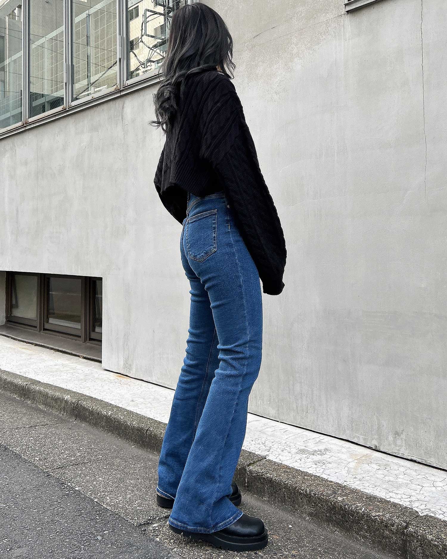 (※ウエスト64cm)カジュアルスタイル定番のデニムをフレアシルエットでトレンドライクな着こなしに。