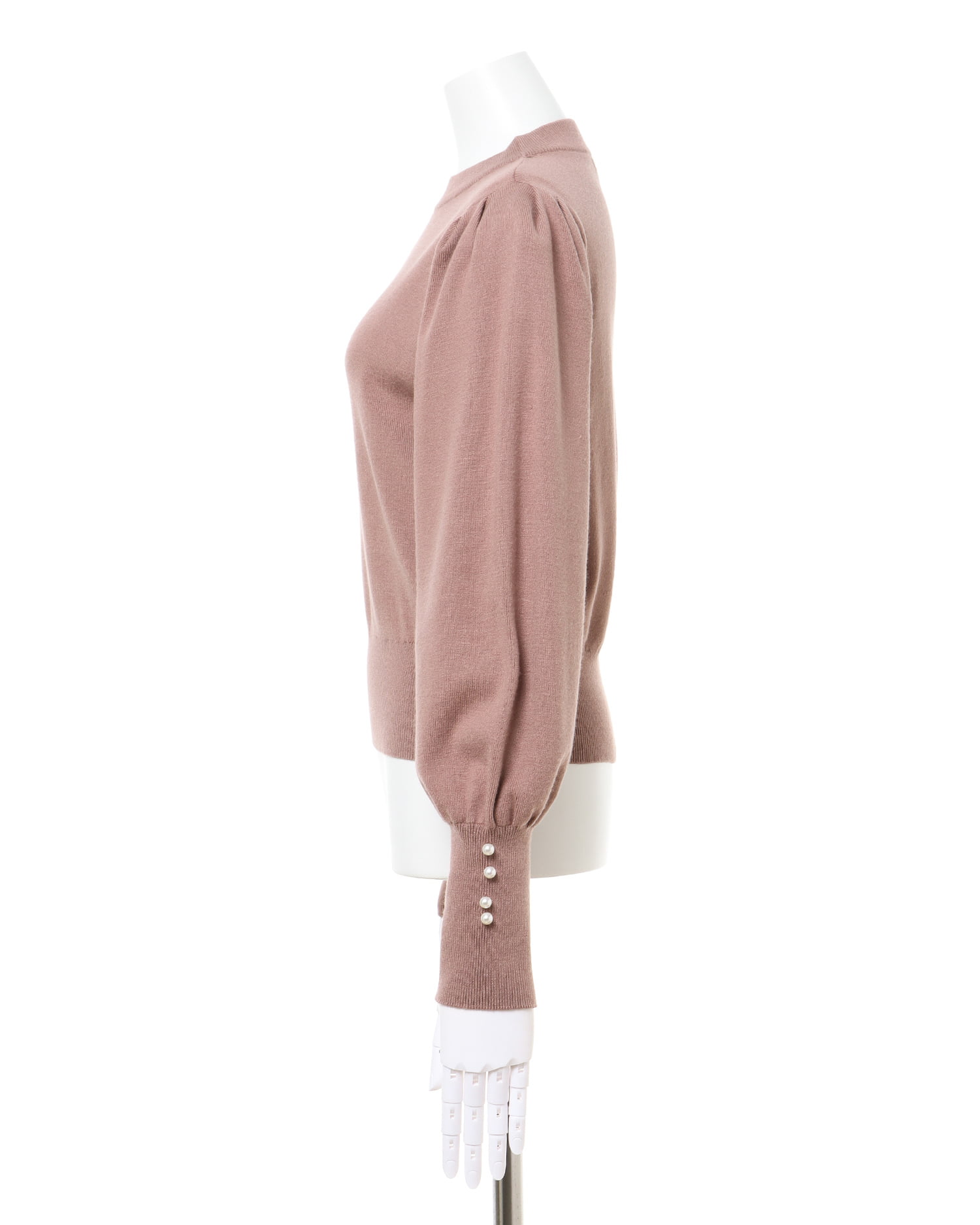 ボリュームのあるふんわりスリーブと袖口のパールビジューが大人フェミニンなニットトップス。