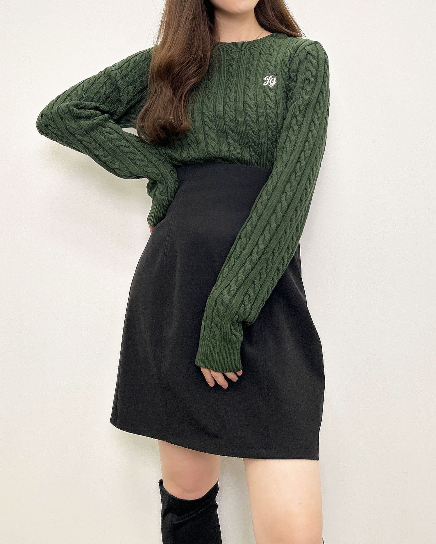 コンパクトなシルエットと小さめのケーブル編みを組み合わせたトレンド感たっぷりのニット。