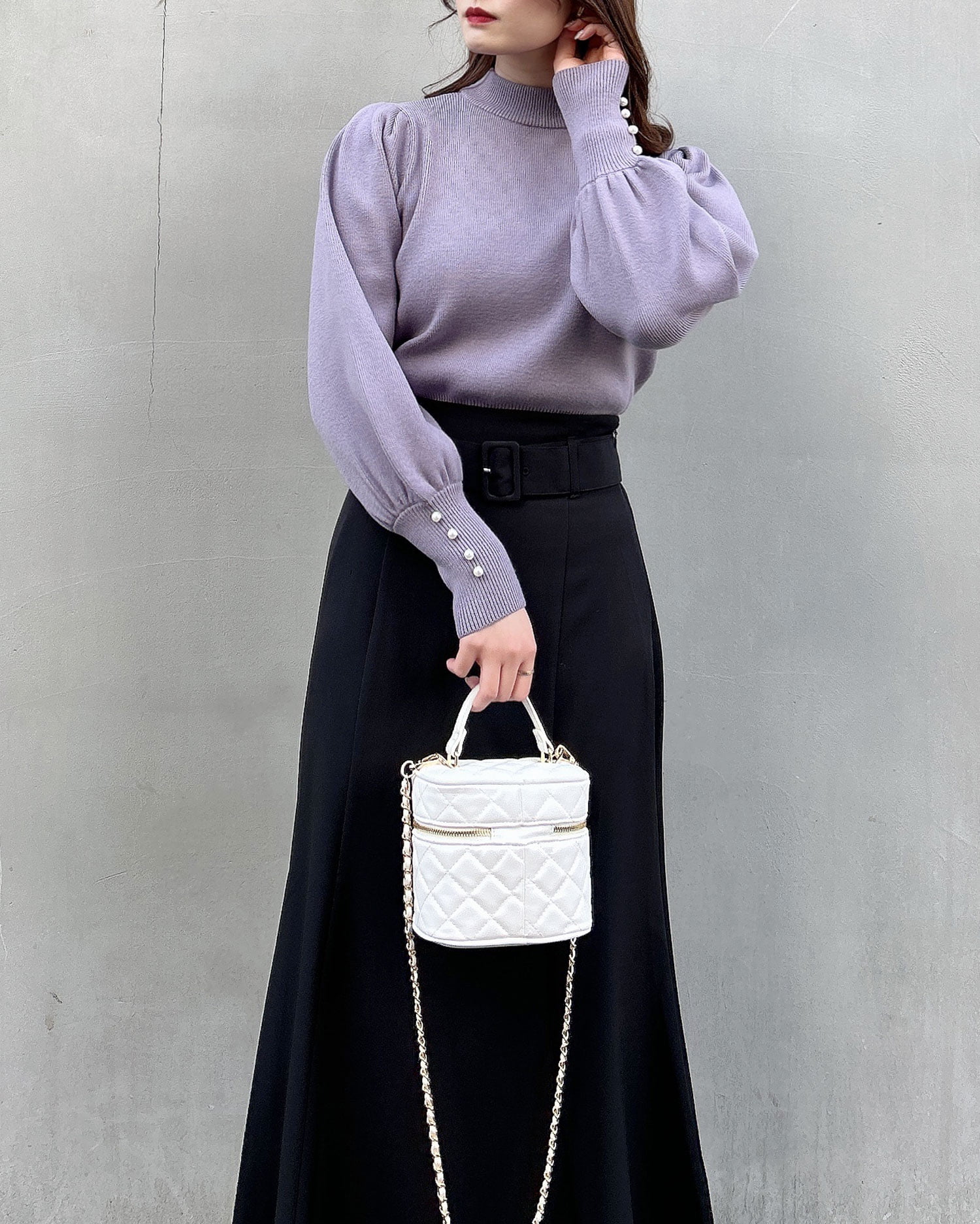 袖口にあしらったパールビジューが華やかなアクセントになっています。