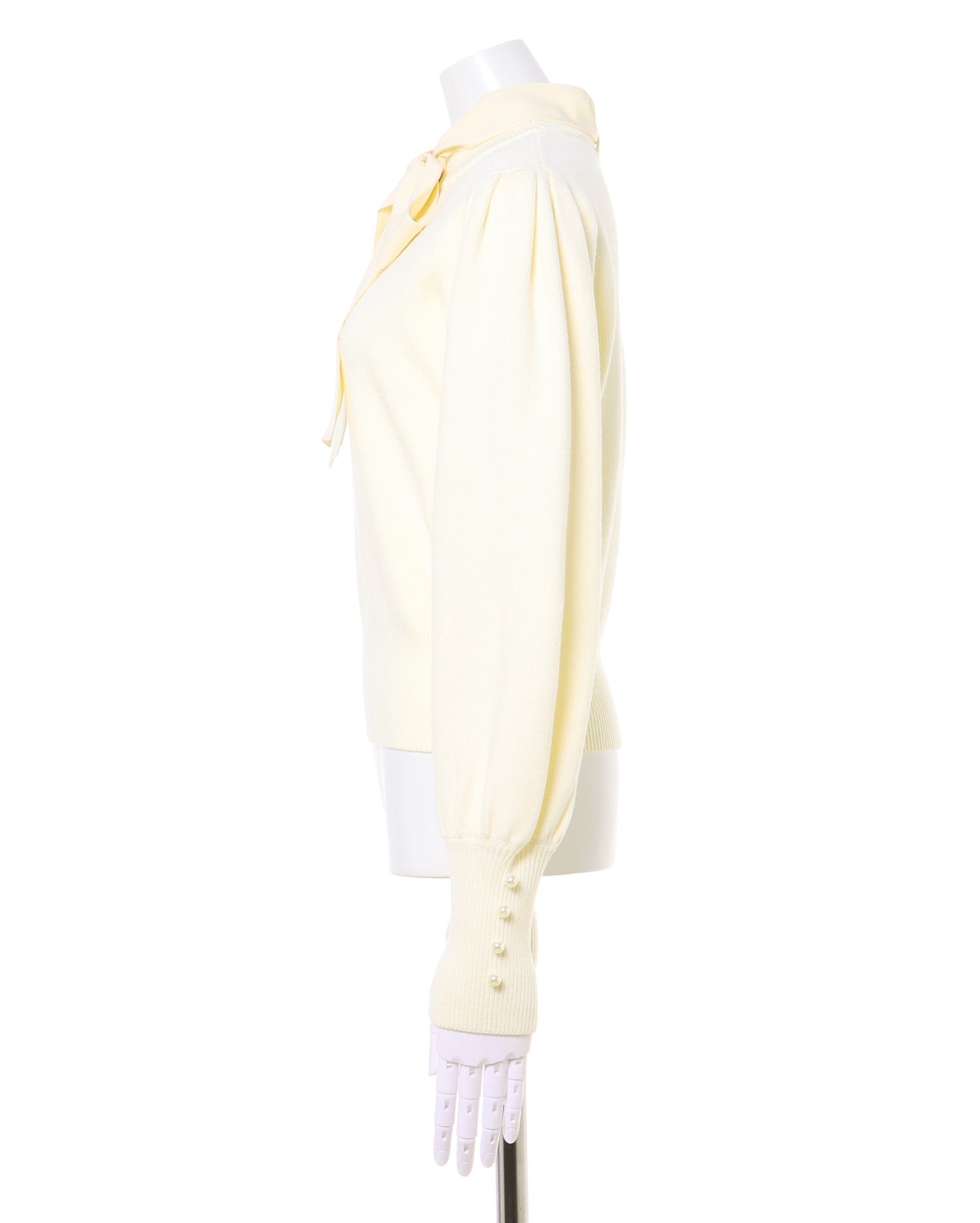 コンパクトなシルエットとふんわりスリーブの組み合わせがレディなニットトップス。