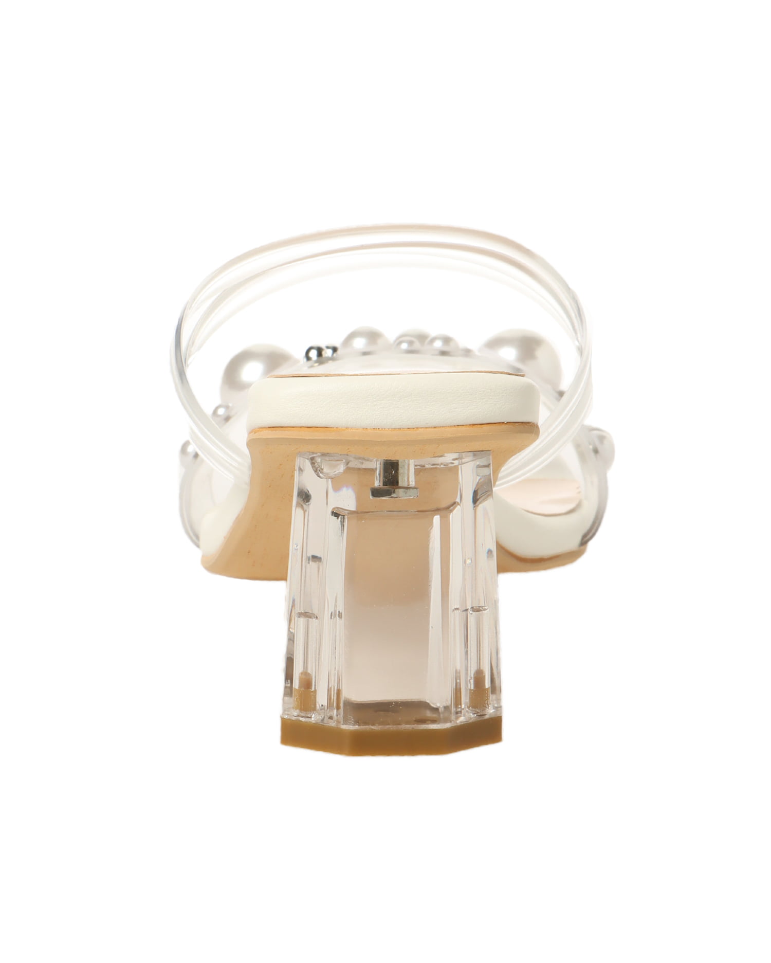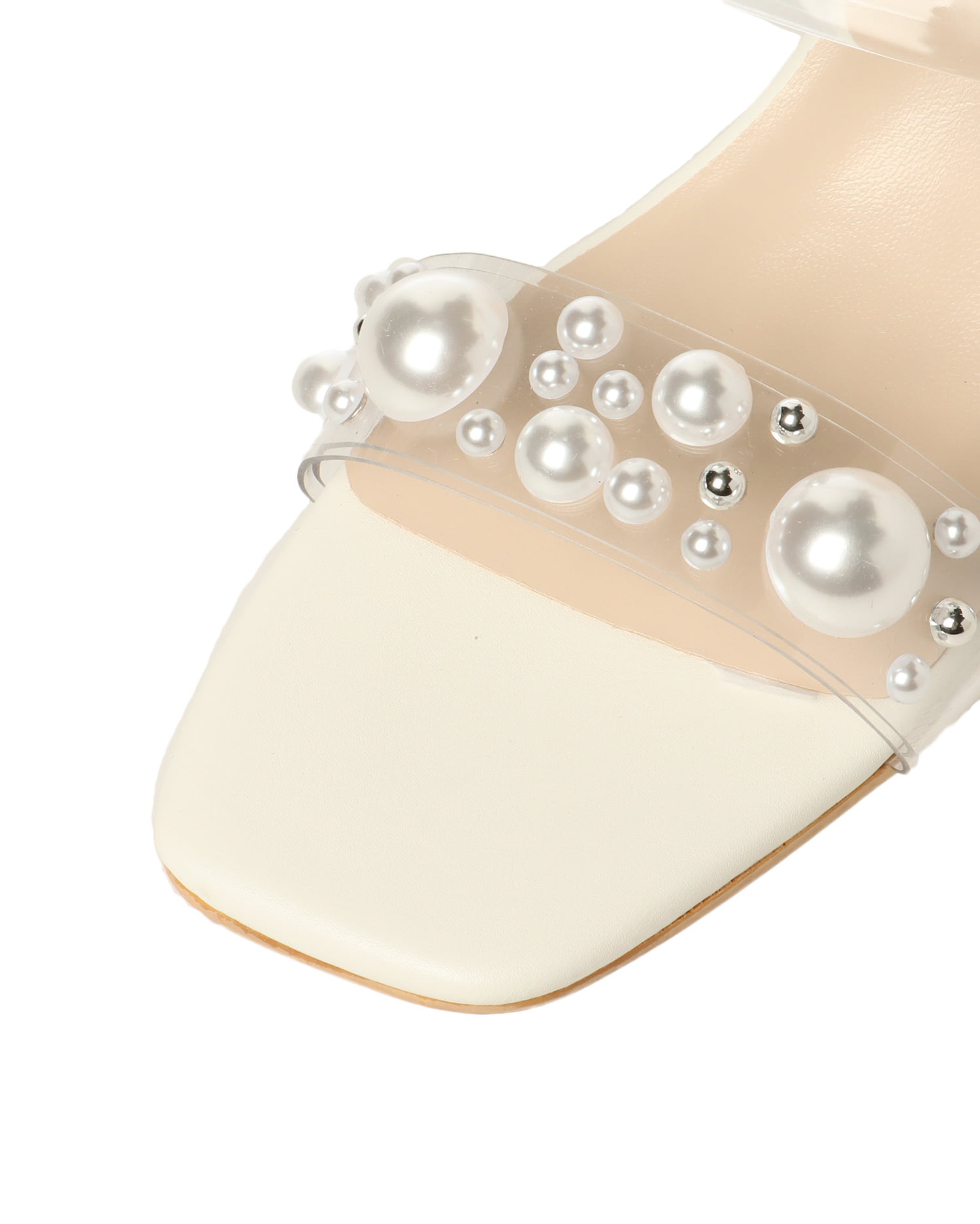 甲ストラップには大きさの異なるパールビジューを散りばめ、華やかな雰囲気に。