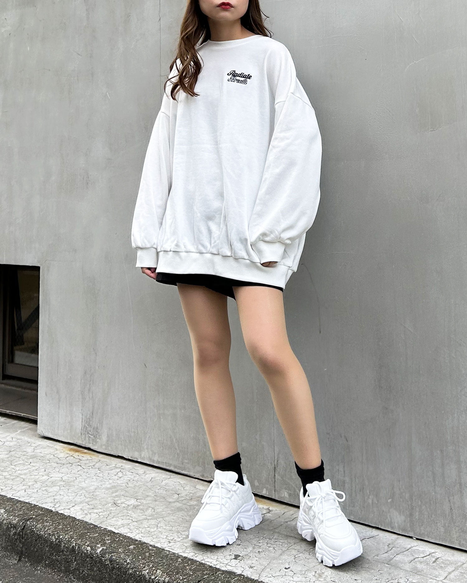 バックにあしらった大きな刺繍ロゴが印象的なスウェットトップス。