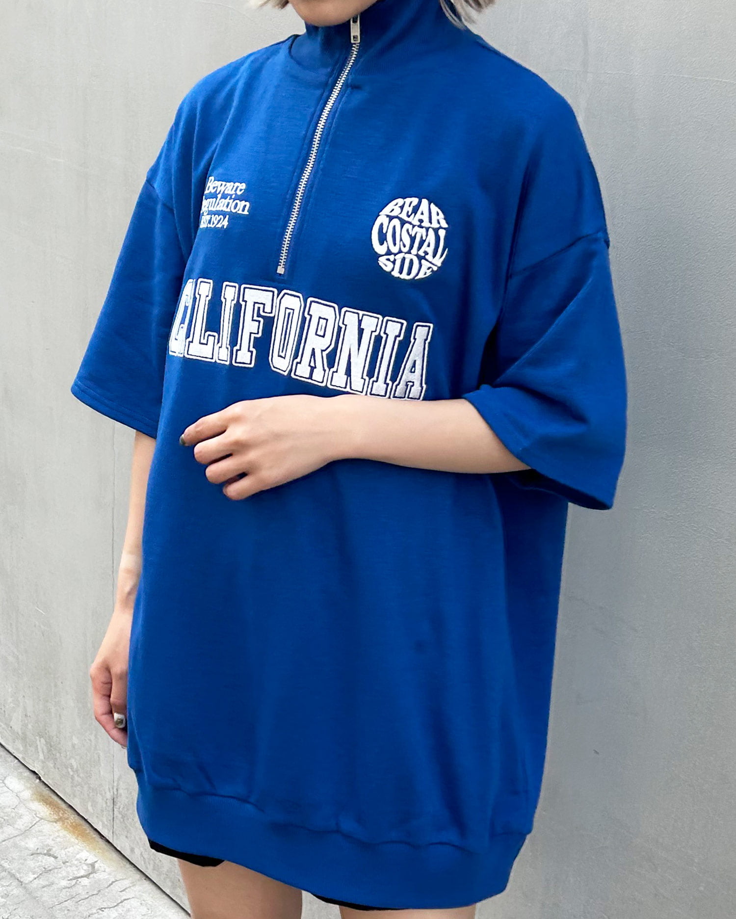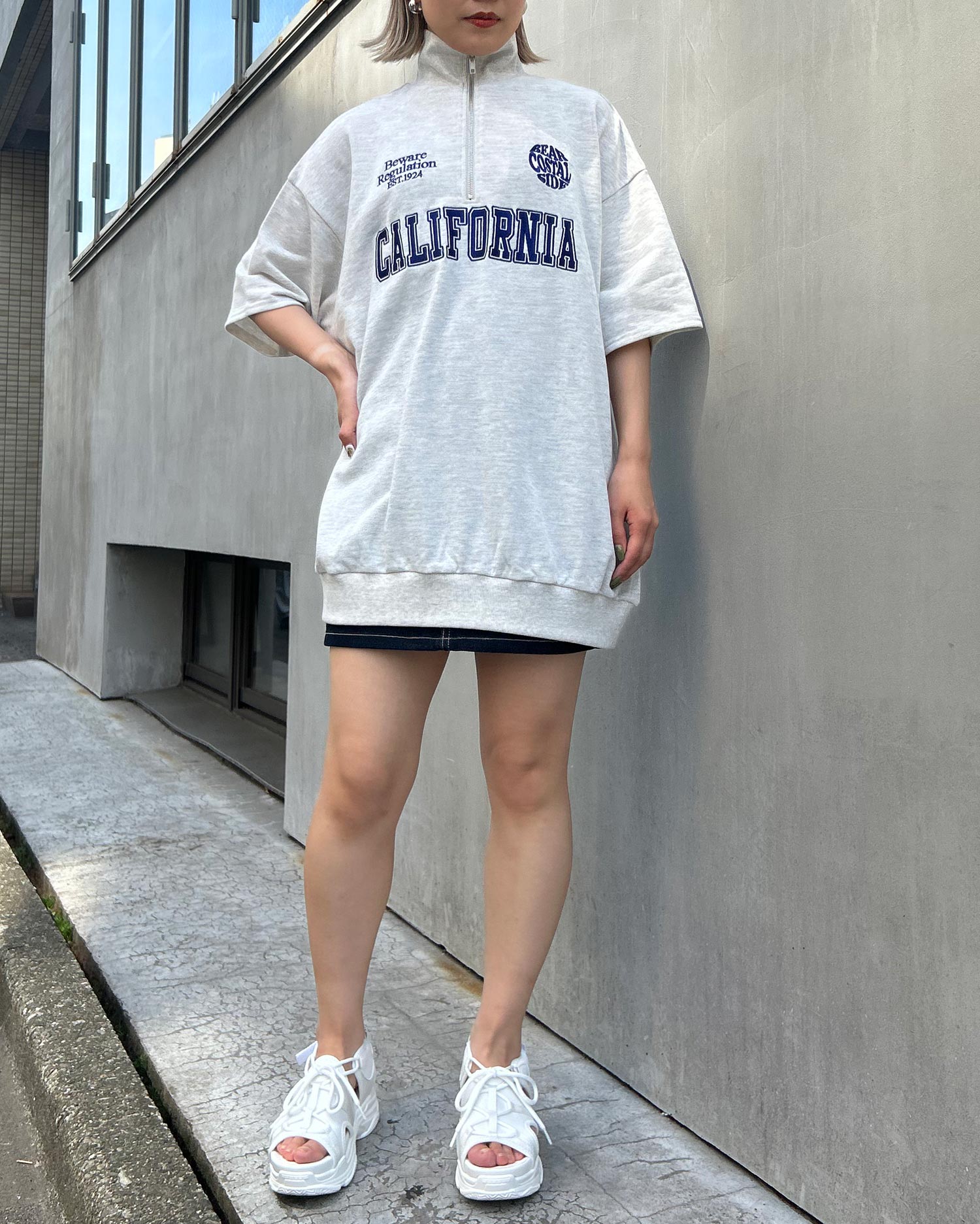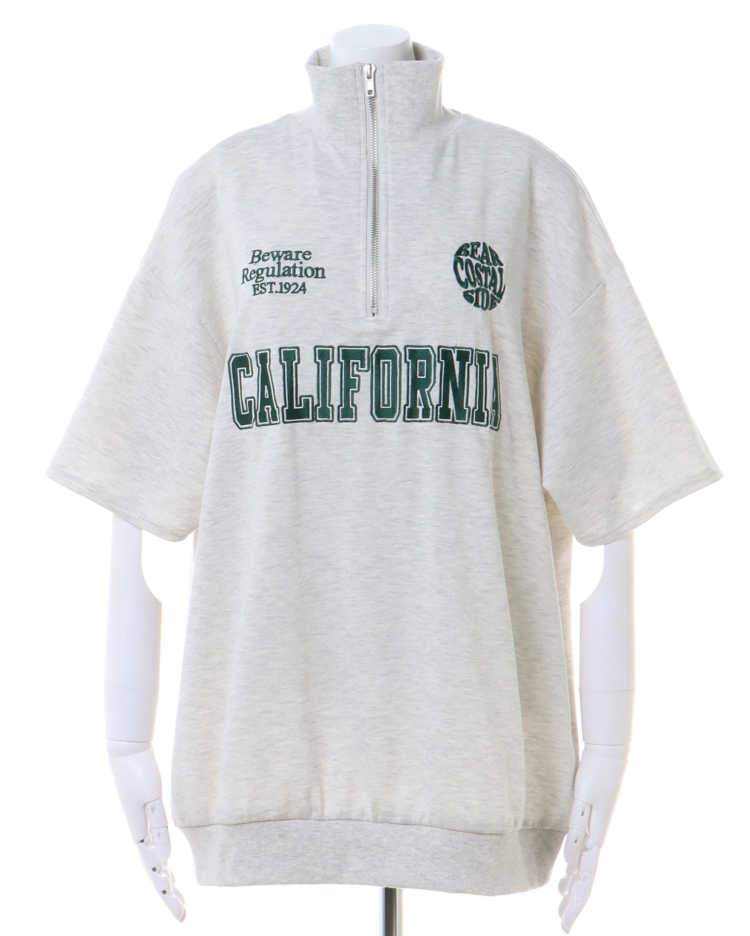 フロントのカレッジロゴがスポーティなアクセントになったハーフジップトップス。