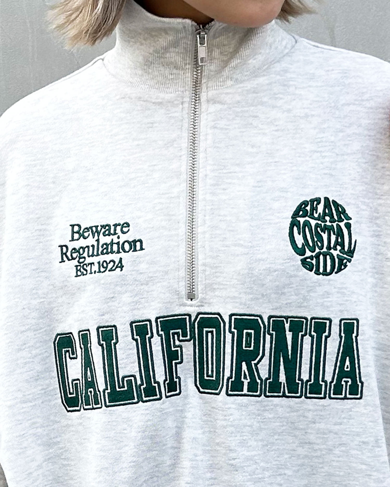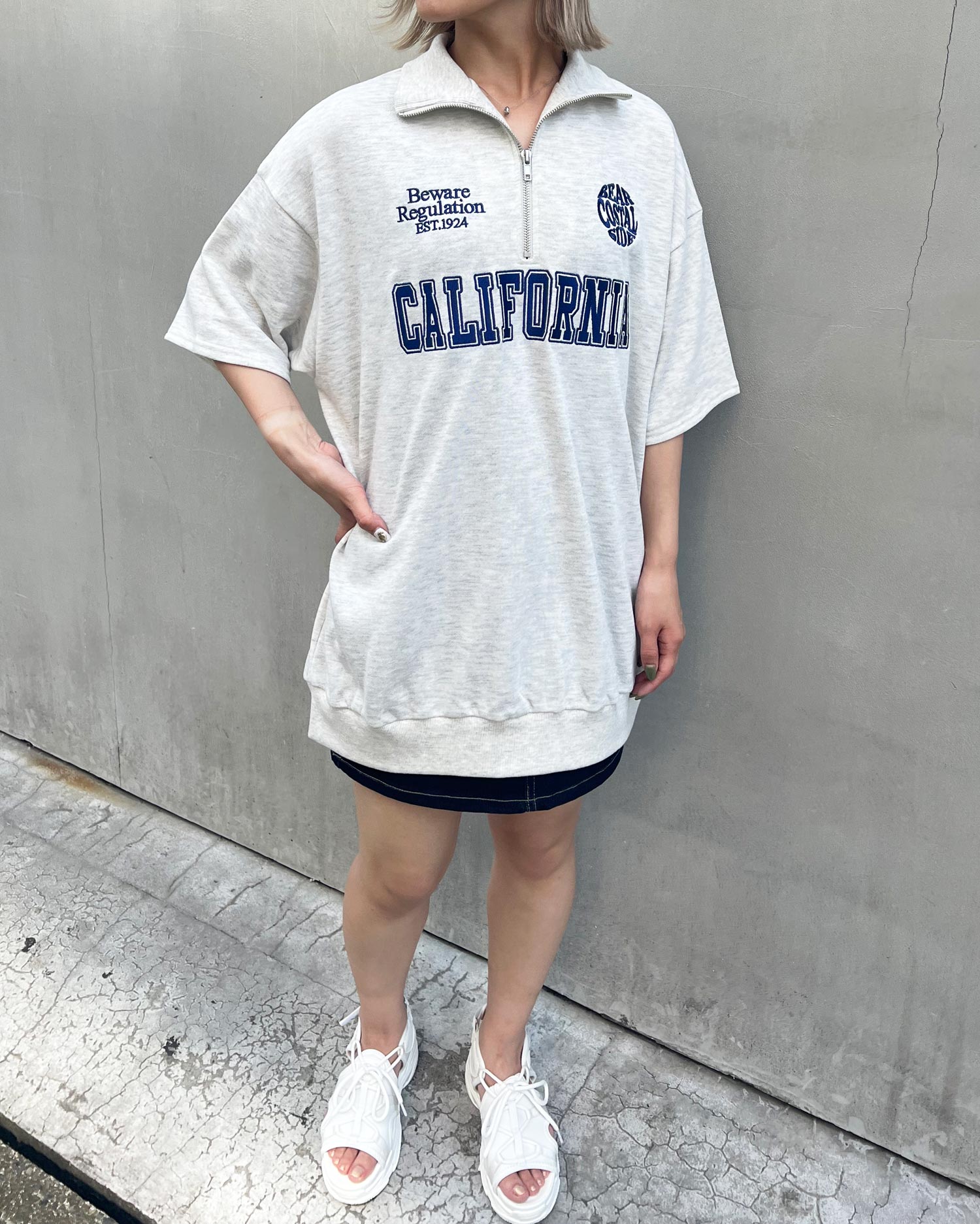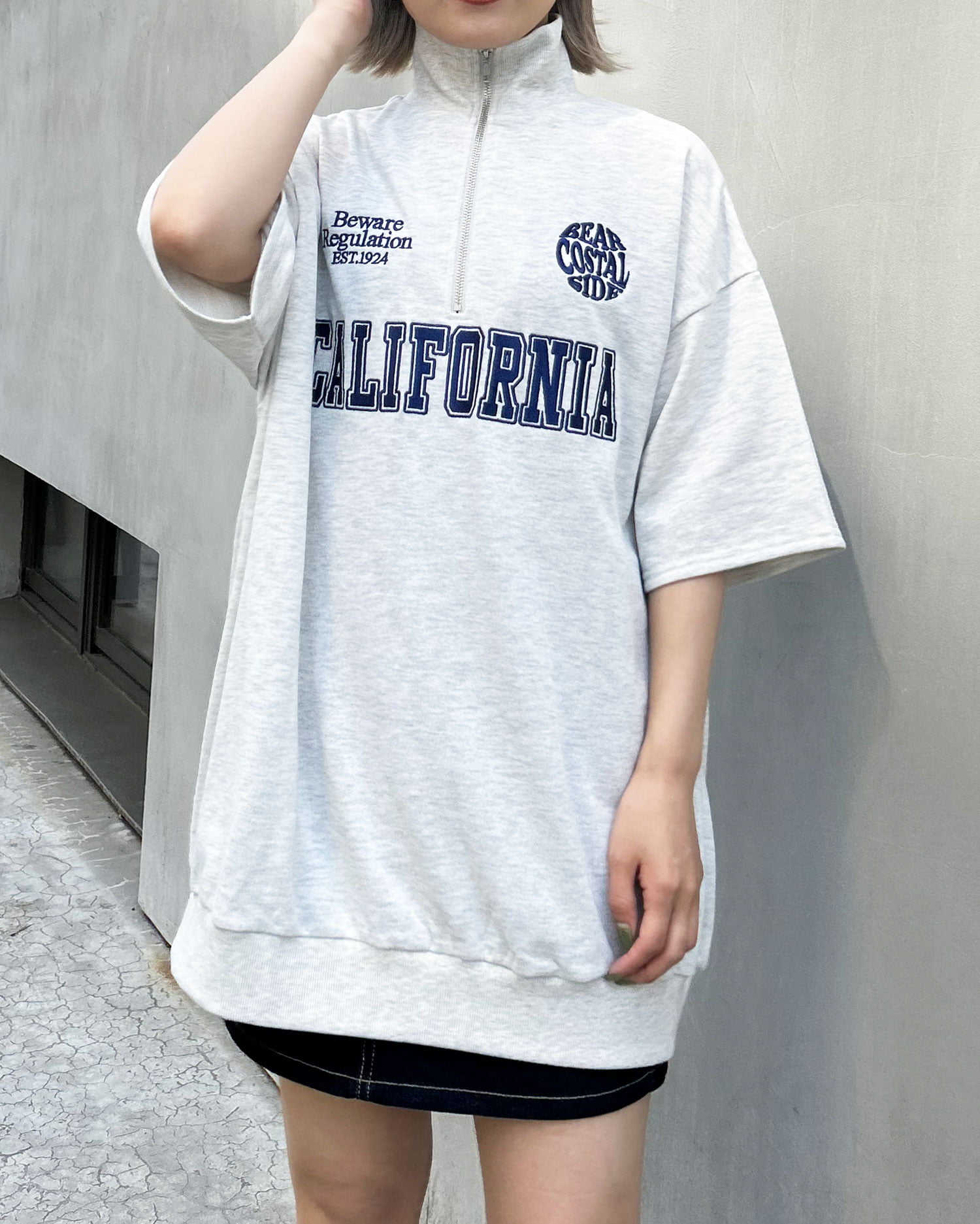 フロントのカレッジロゴがスポーティなアクセントになったハーフジップトップス。
