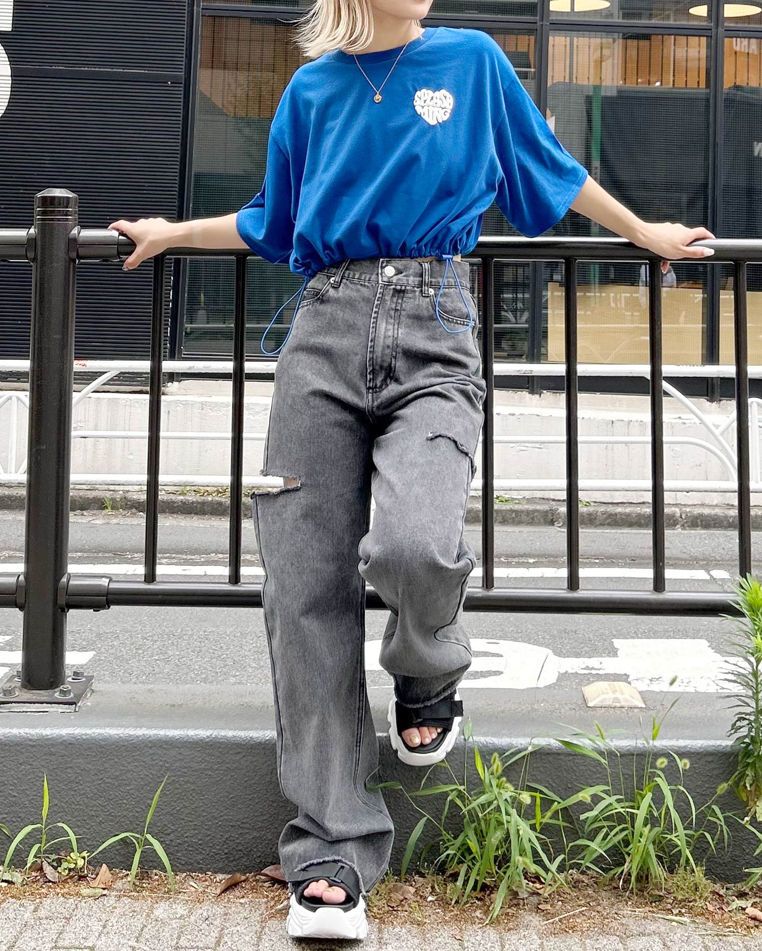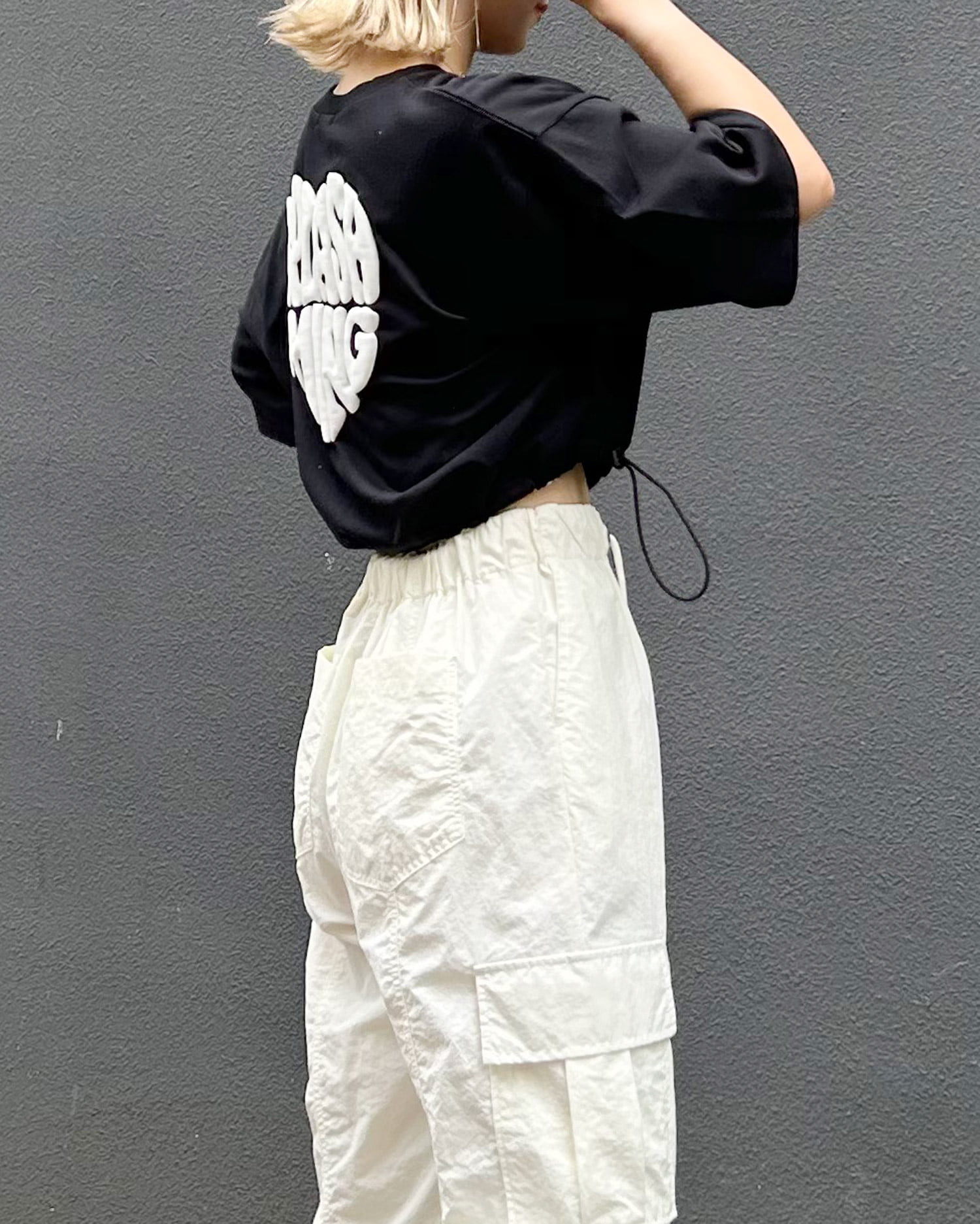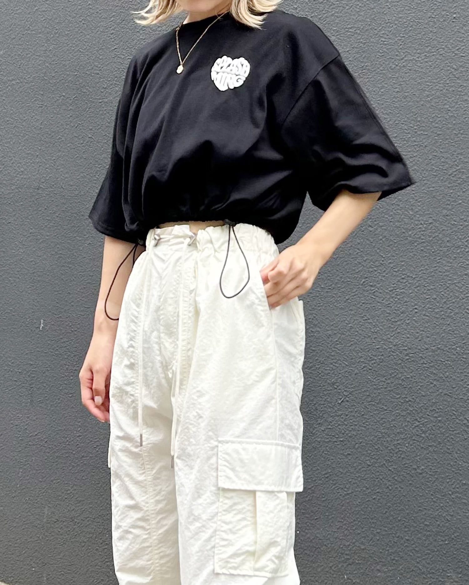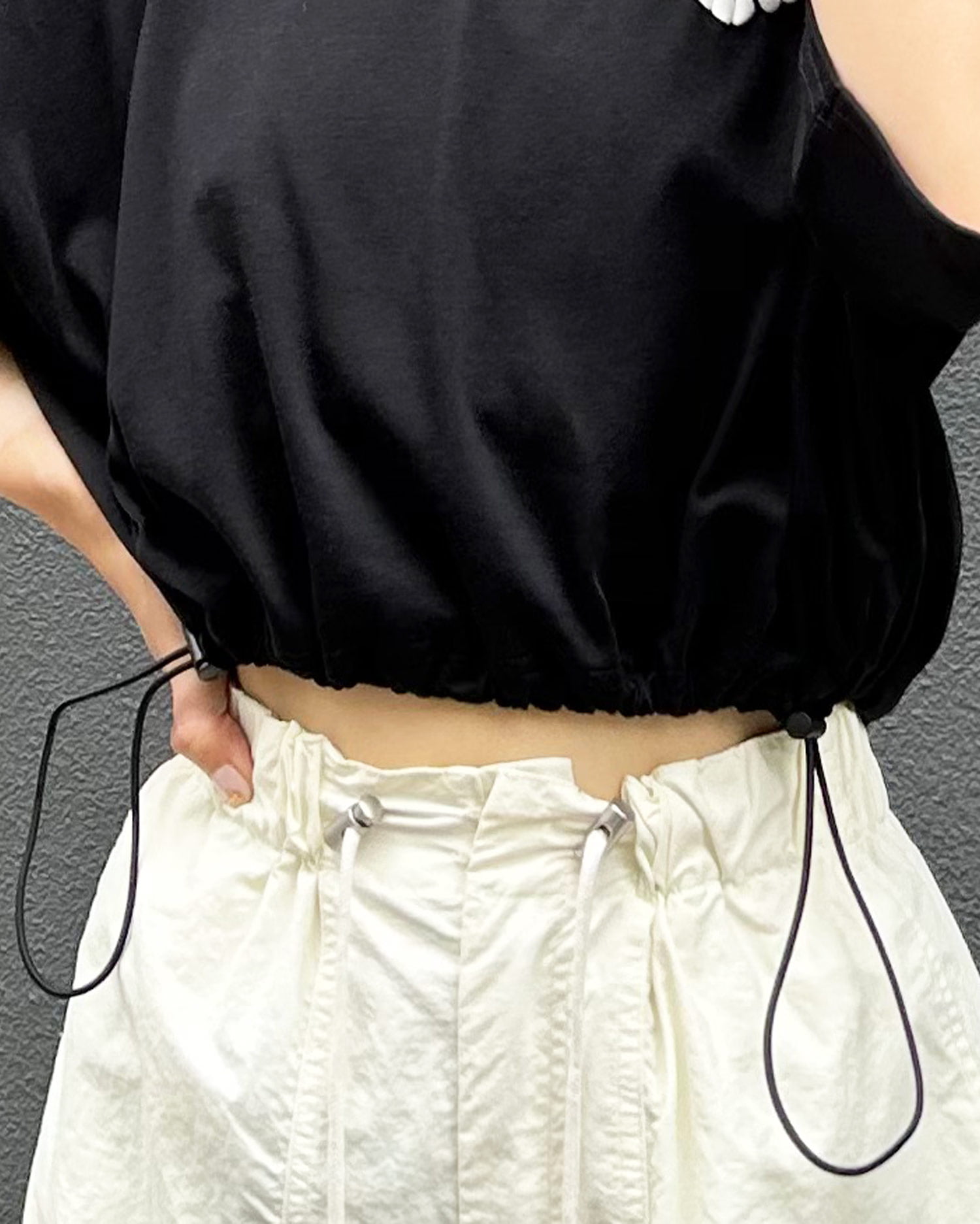 裾はドローストリングになっているのでシルエットチェンジも可能です。