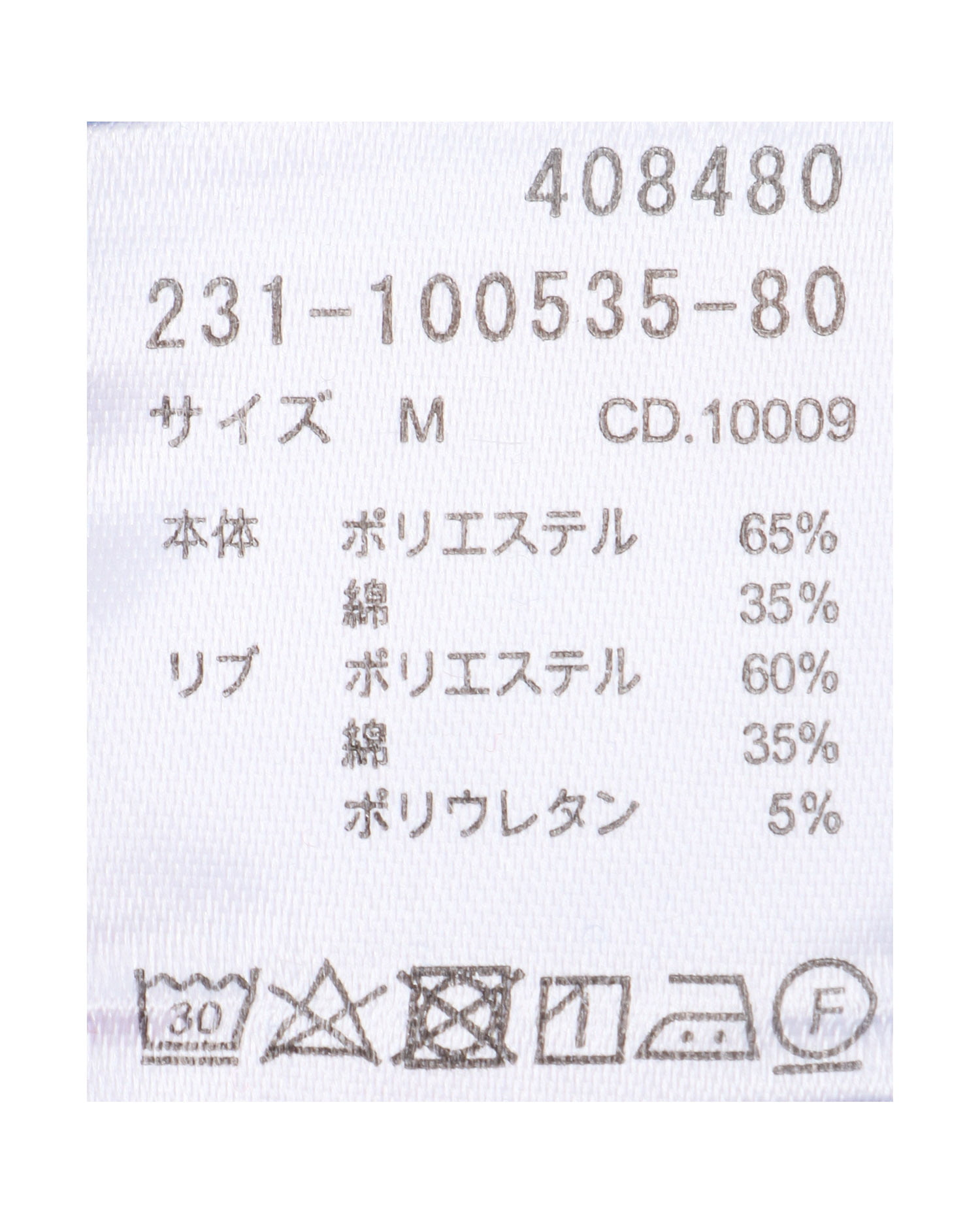 原産国 中国 本体 ポリエステル65% 本体 綿35% リブ ポリエステル60% リブ 綿35% リブ ポリウレタン5%