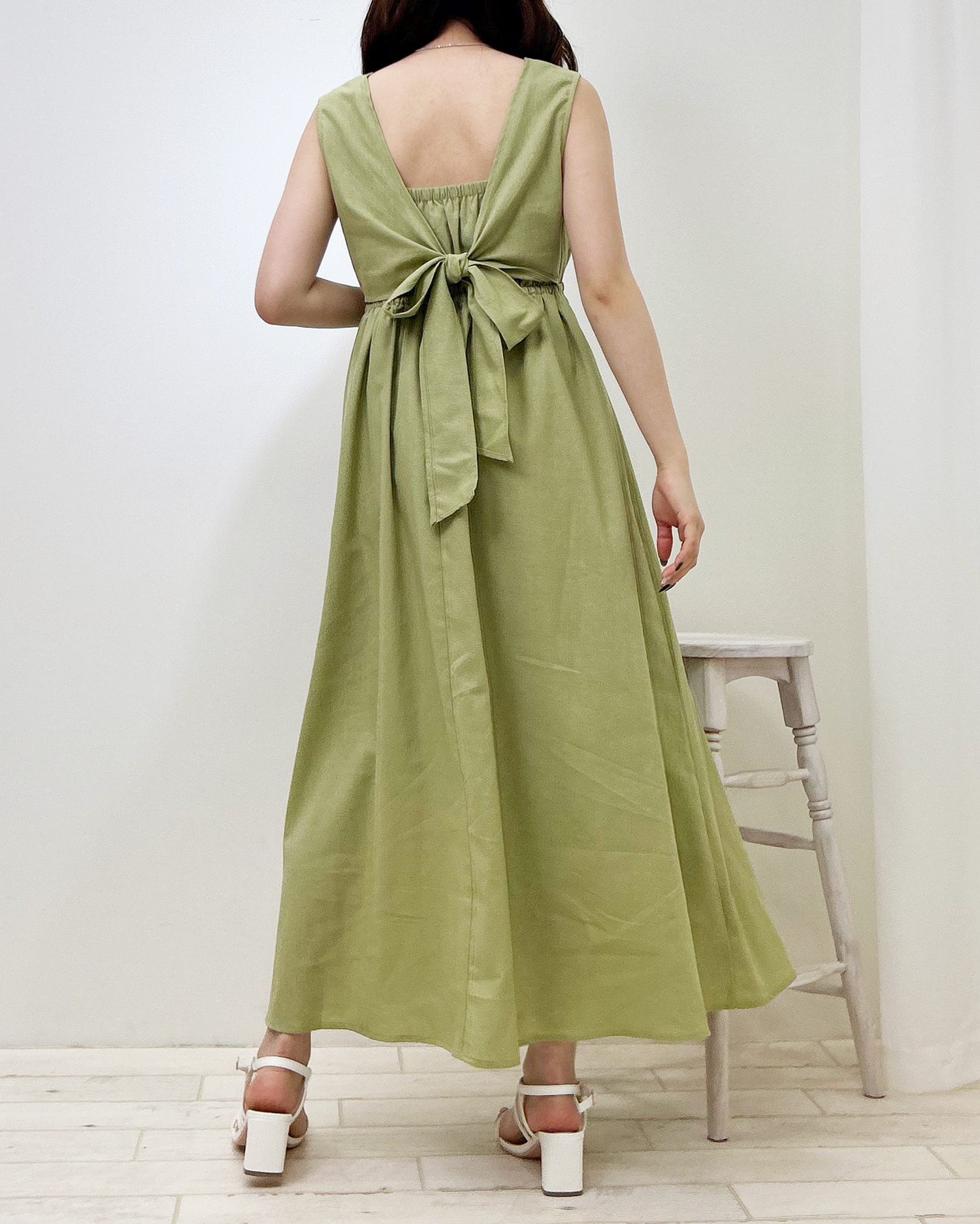 大きなバックリボンをあしらったリゾートムードたっぷりのエレガントなロングワンピース。