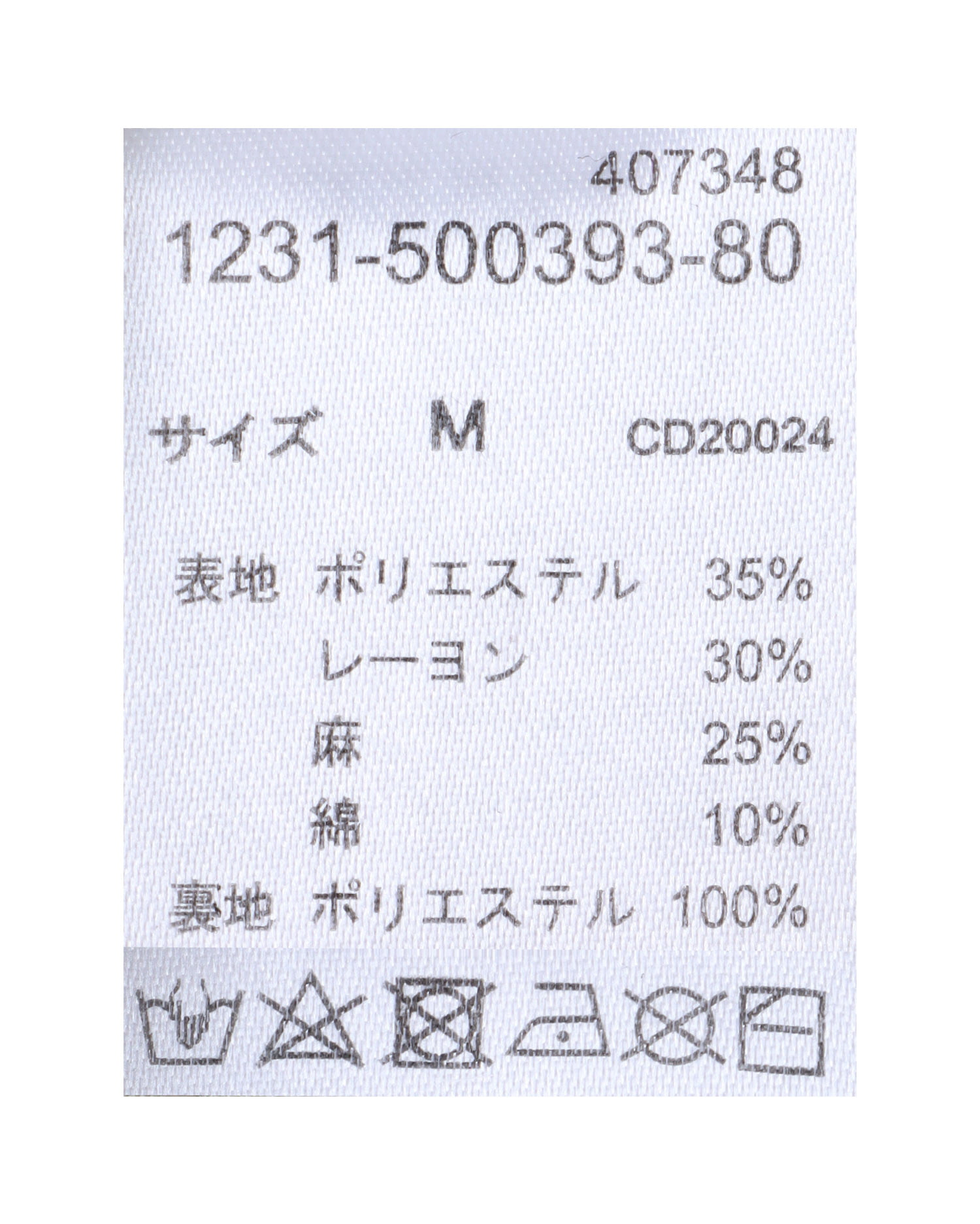 原産国 中国 表地 ポリエステル35% 表地 レーヨン30% 表地 麻25% 表地 綿10% 裏地 ポリエステル100%