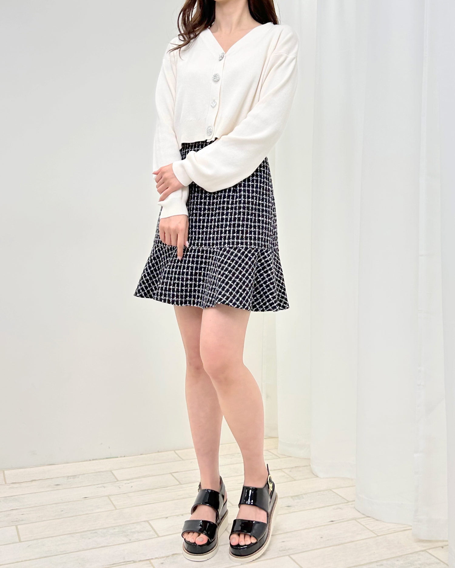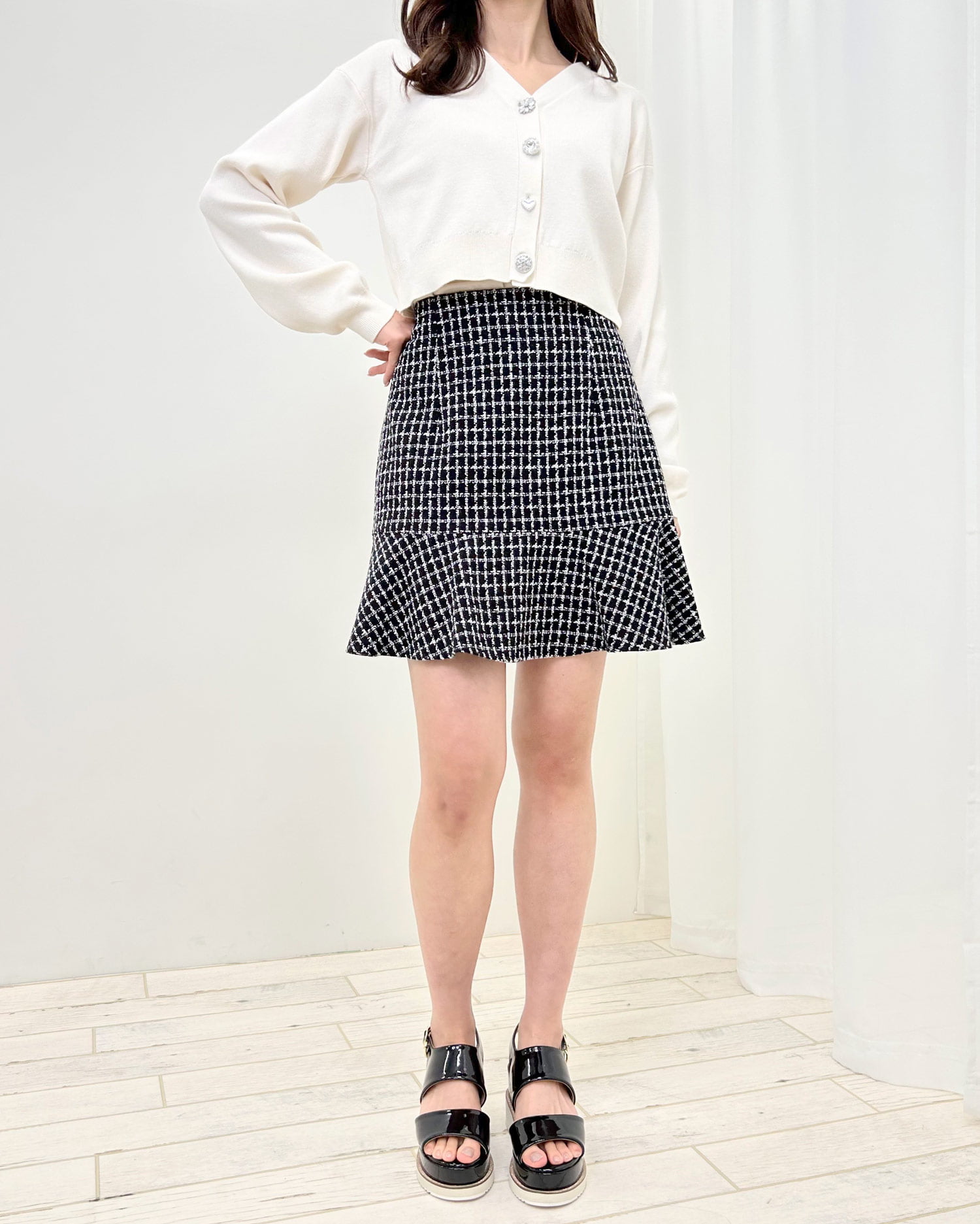 コンパクトなシルエットとショート丈の組み合わせがトレンドライクなカーディガン。