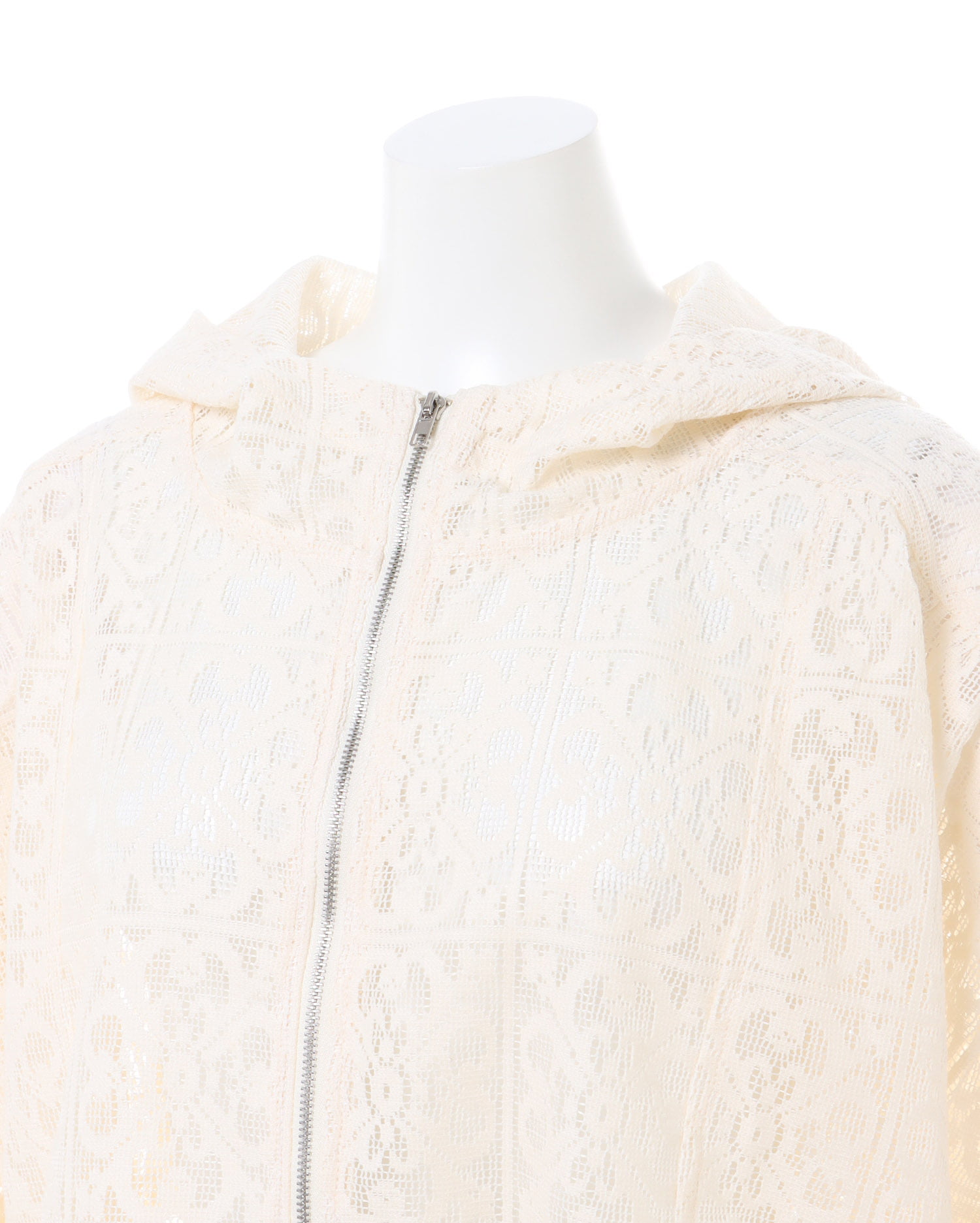 レースで仕立てたレディライクなデザインのマウンテンパーカー。