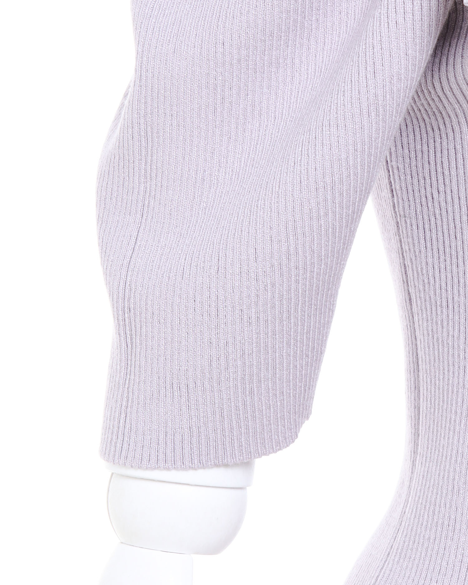 程よく体に沿う伸縮性抜群のリブニットで、女性らしいシルエットを叶えつつ着心地も快適。