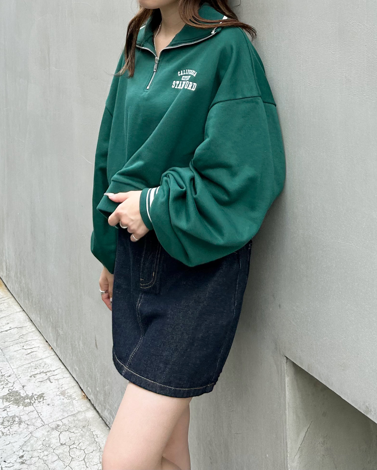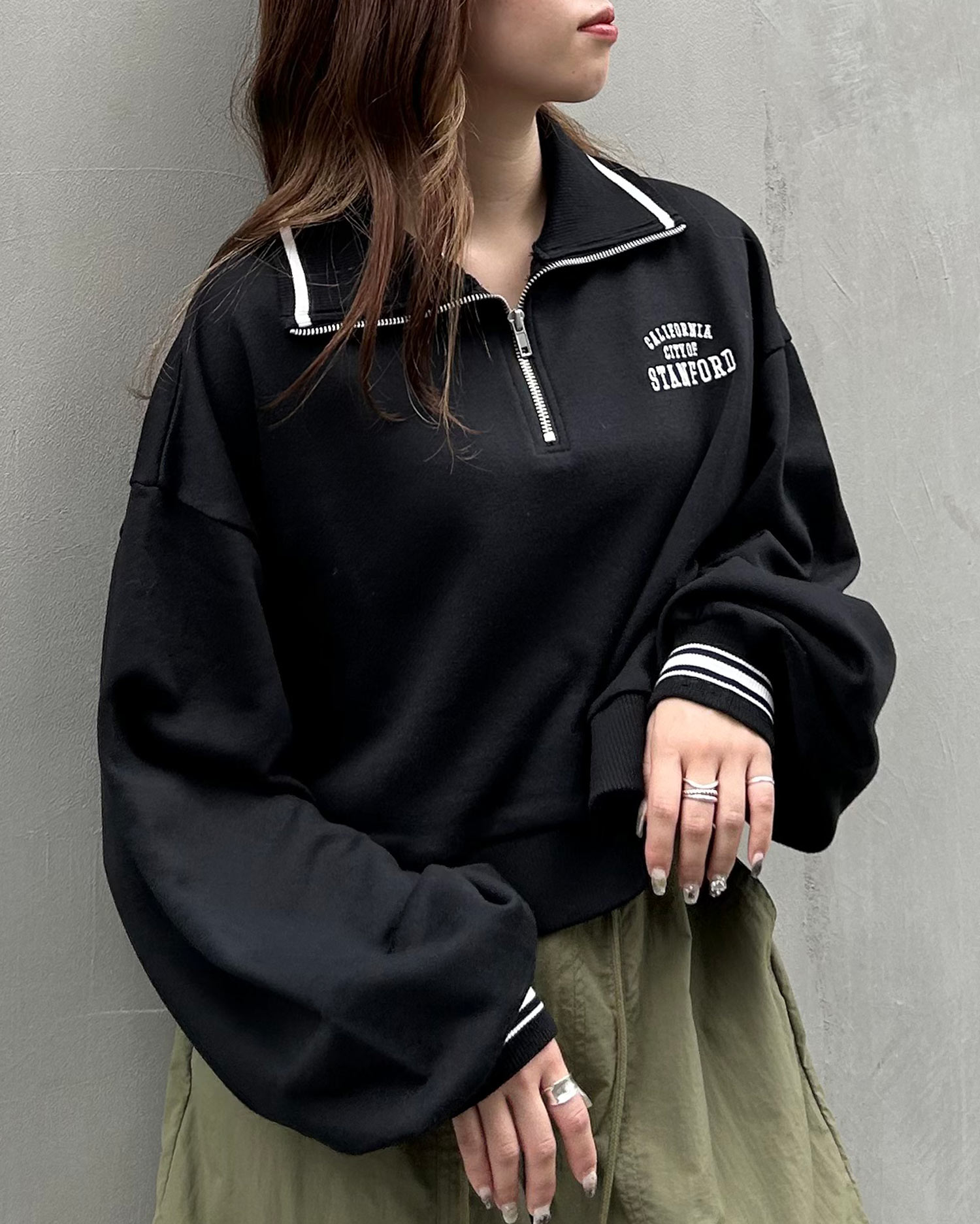 ショート丈と配色デザインが映えるカジュアルスウェット