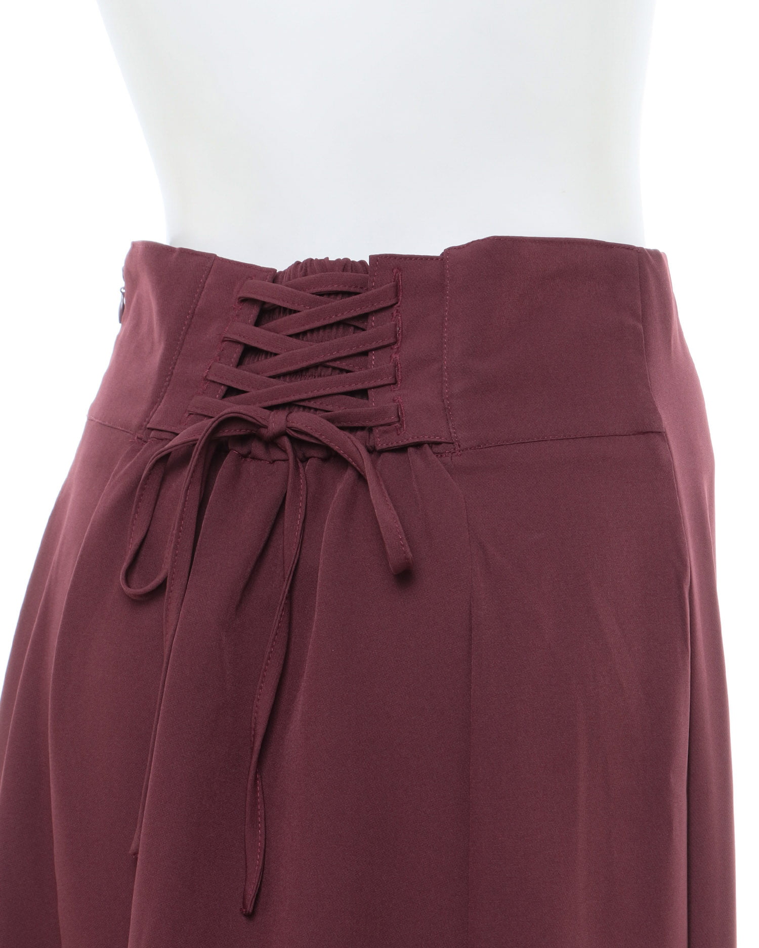 ・自分のウエストに合わせて調整できるレースアップが、ベルトいらずで体にフィット。