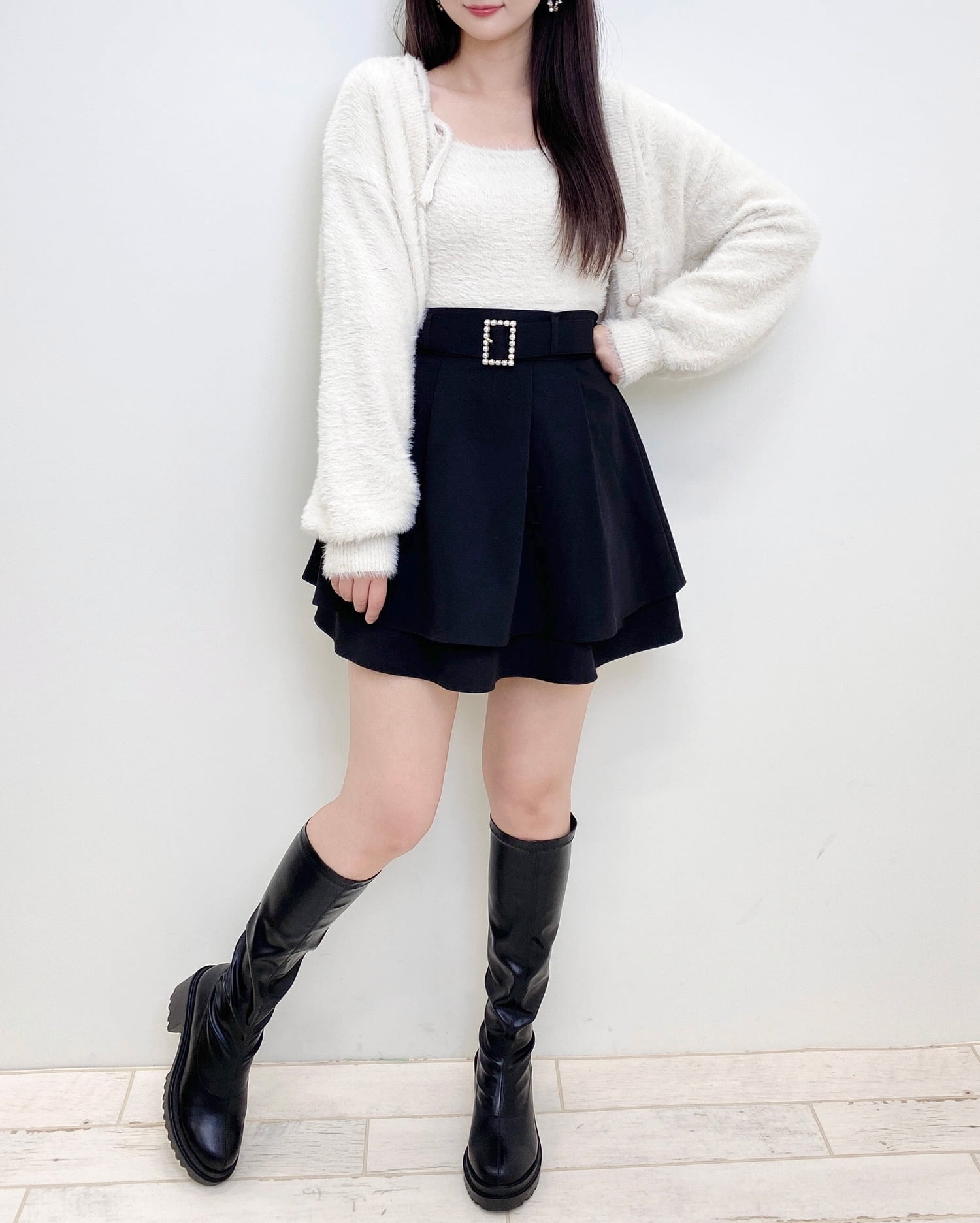 ・キャミソールもカーディガンと同素材なのでコーデに統一感を与えます。