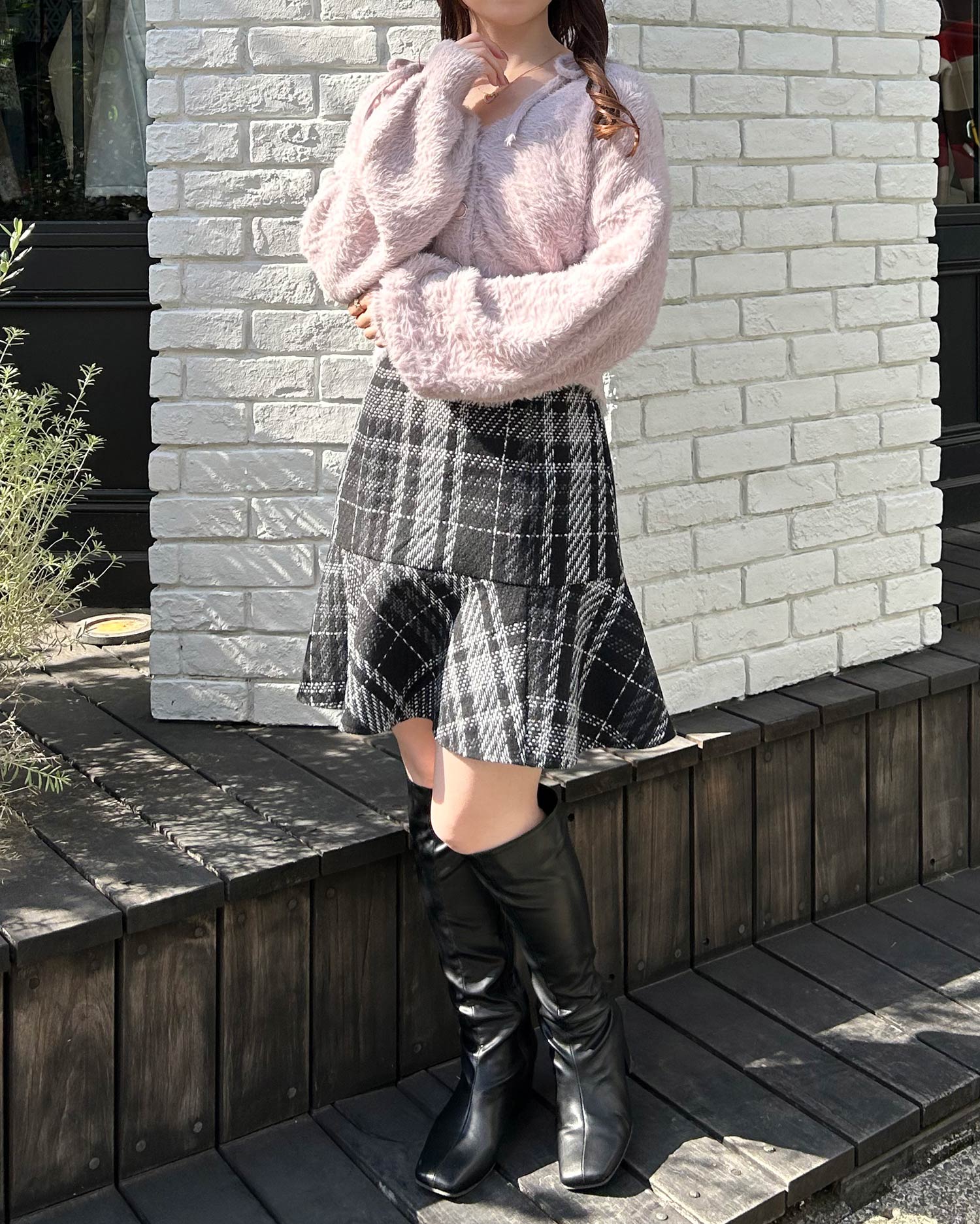 ・今季マストアイテムの毛足の長いシャギーニットで仕上げており、なめらかな触り心地であたたかさもばっちり。