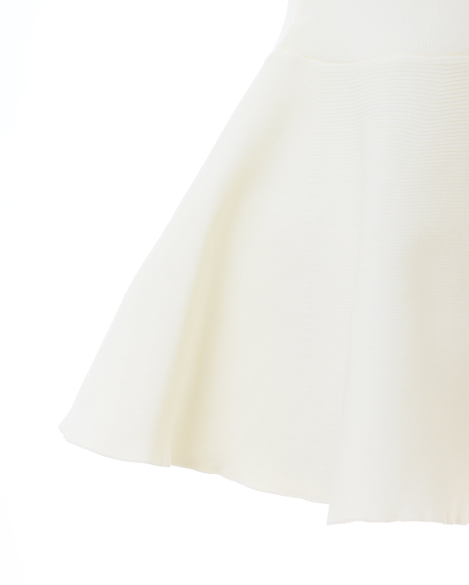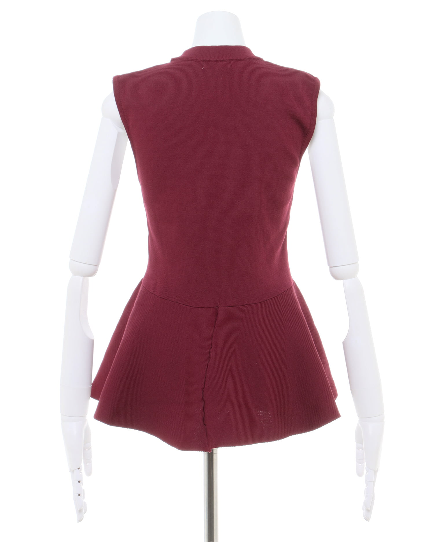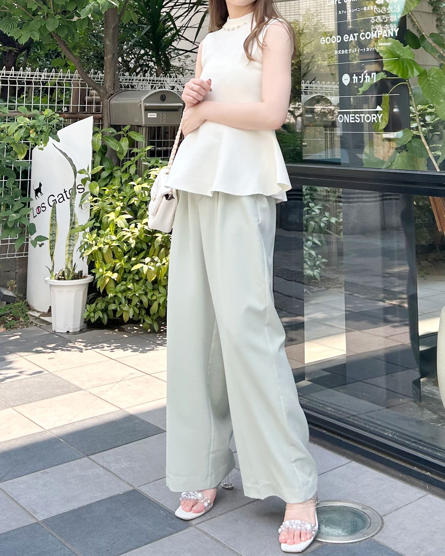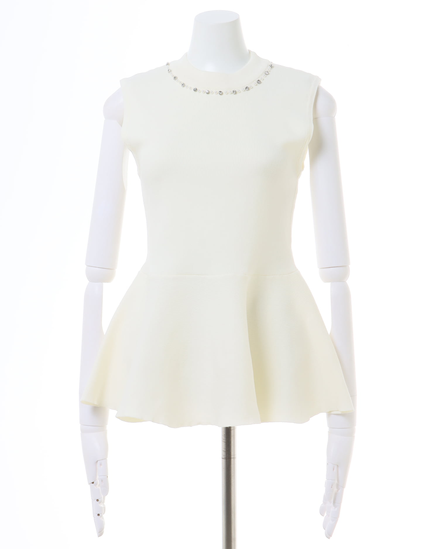 すっきりとしたノースリーブとバスト下で切り替えたペプラムの組み合わせが◎。
