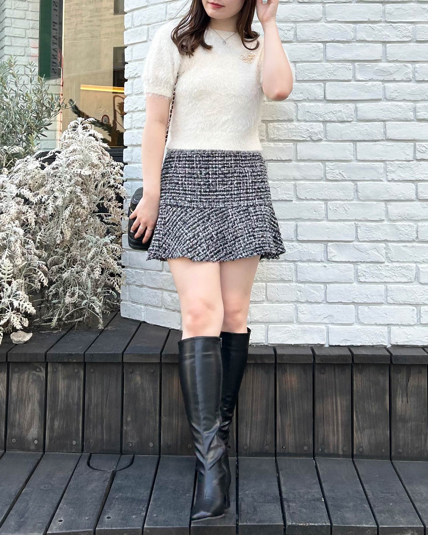 今年のマストアイテムのシャギーニットにラメが散りばめられたフェミニンなアイテム。