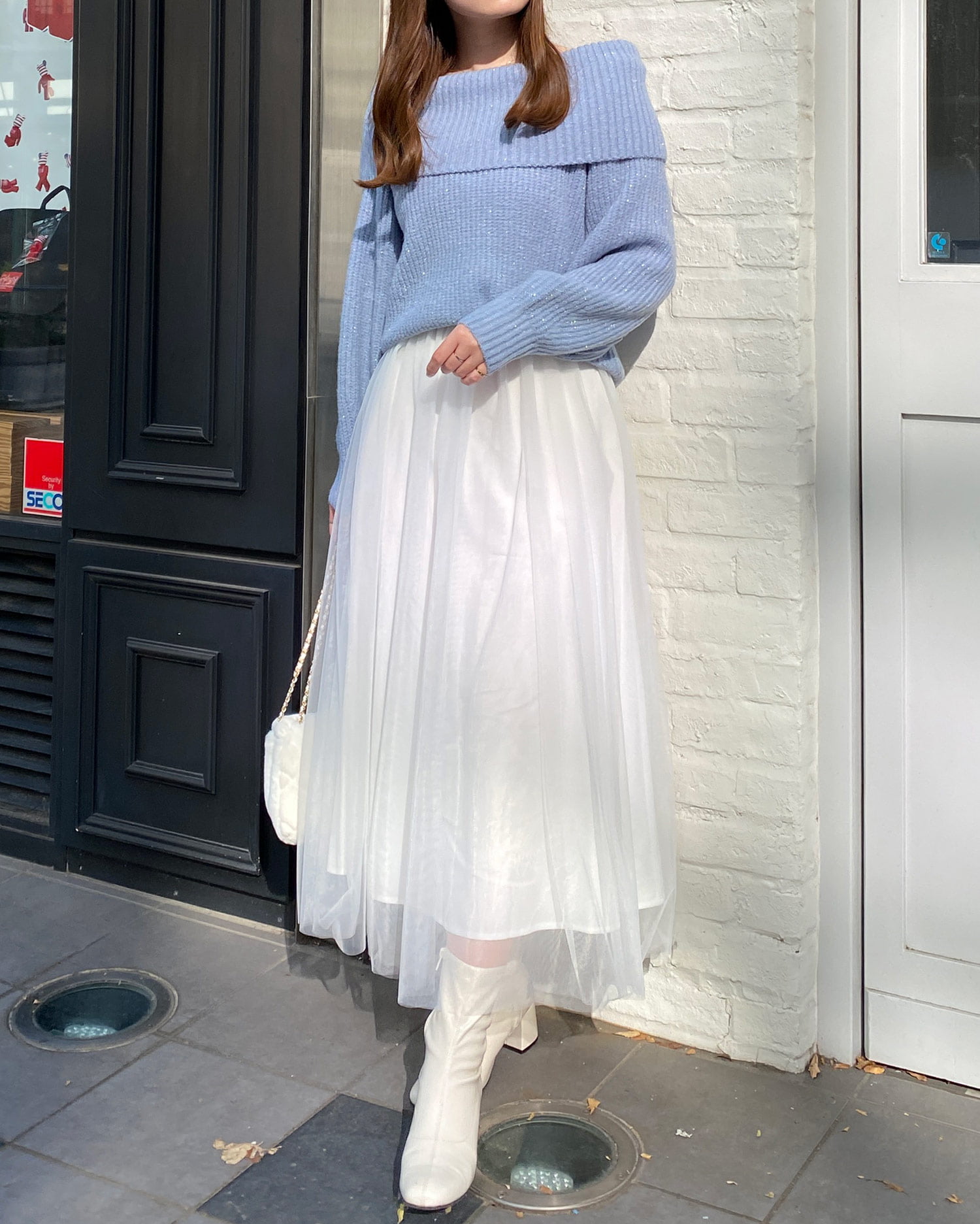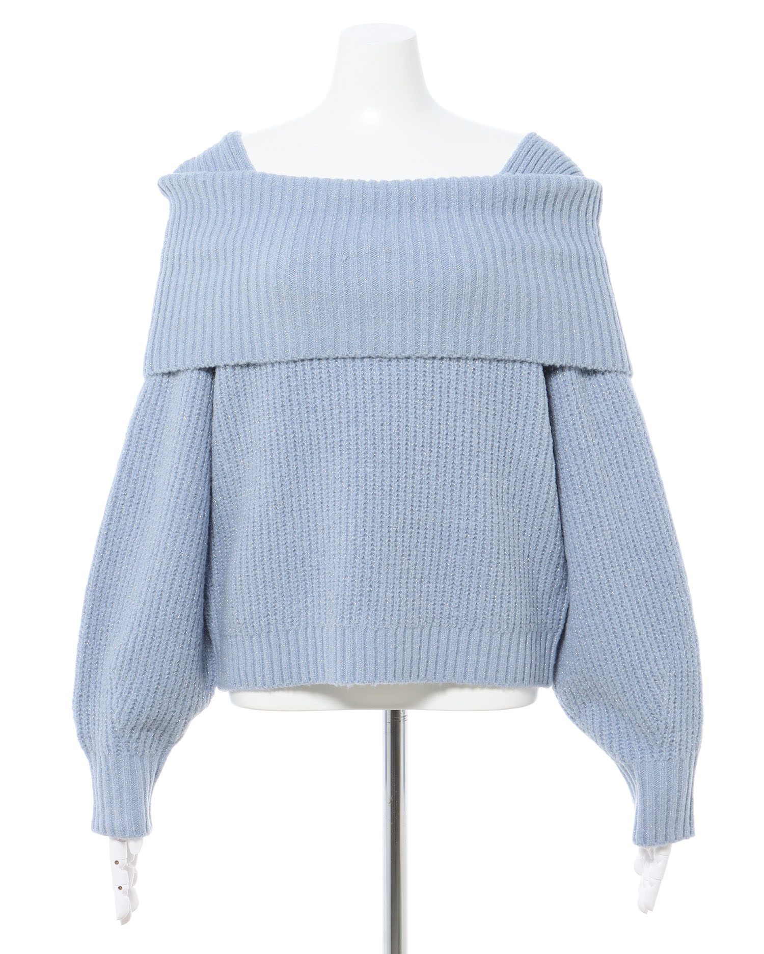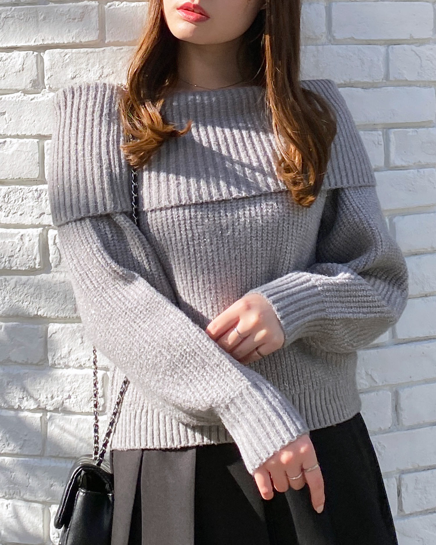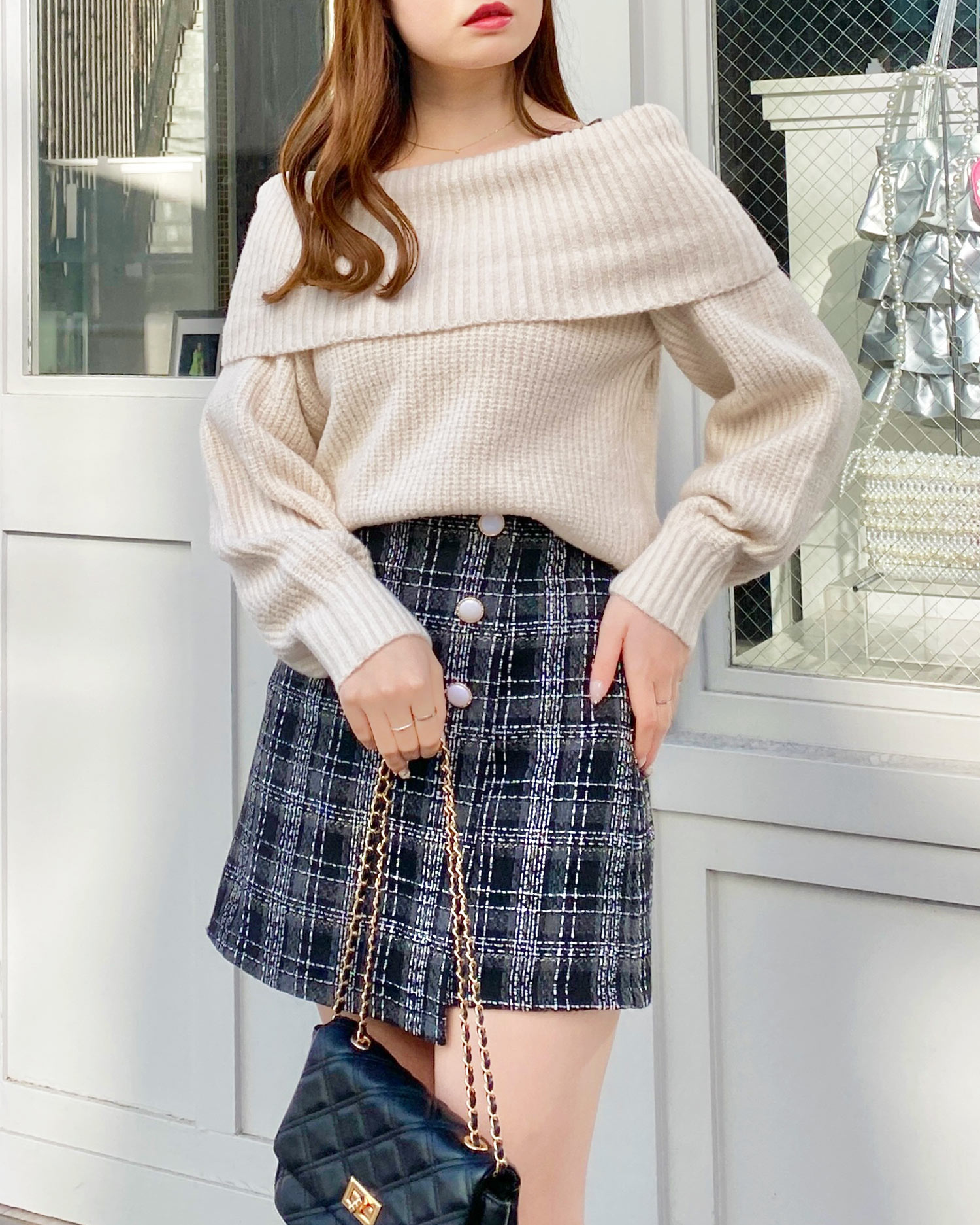 【1234-800319 ラメ入りオフショルニット+スカートSET】