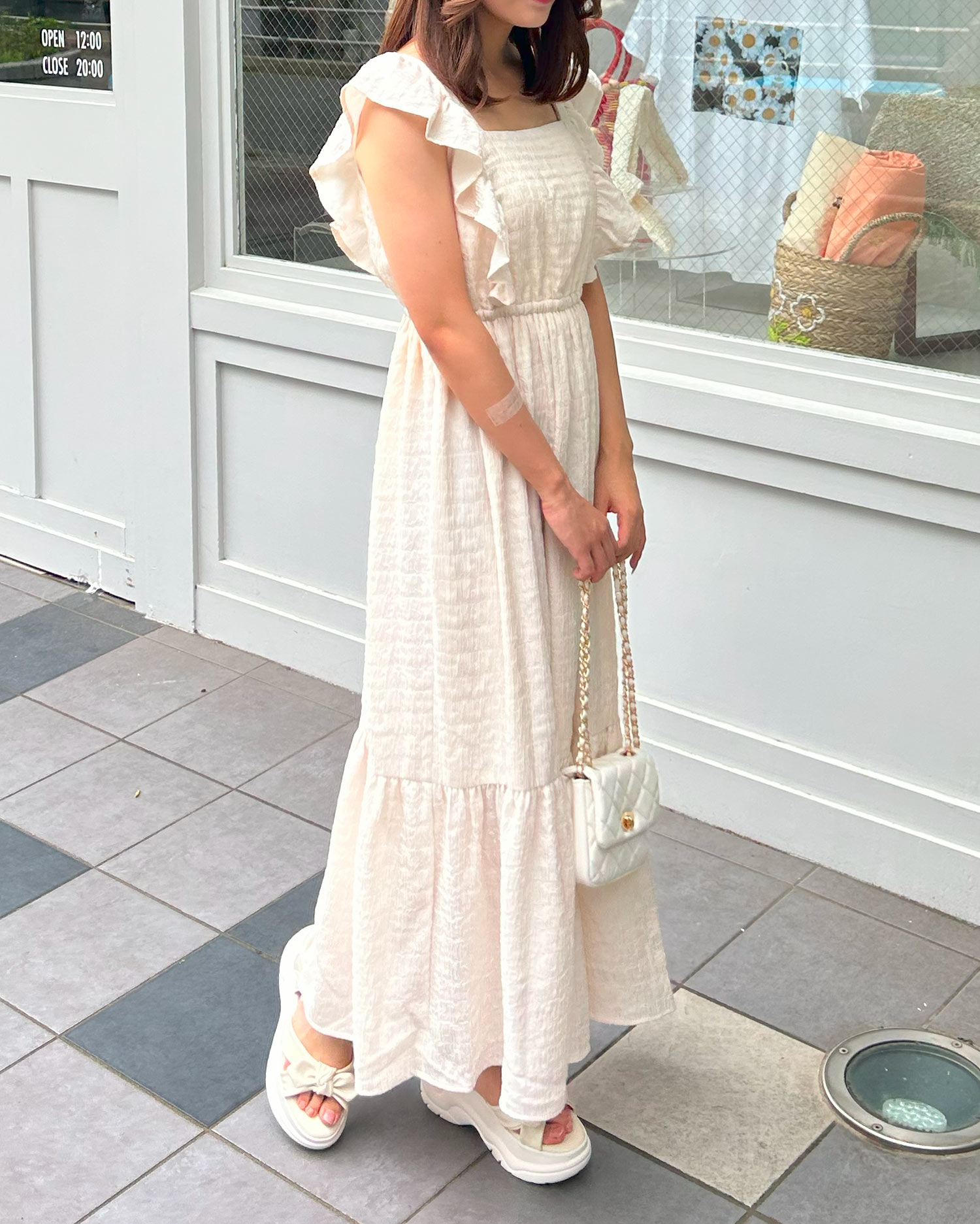 素足に合わせるのはもちろん、シアーソックスなどもおすすめ。