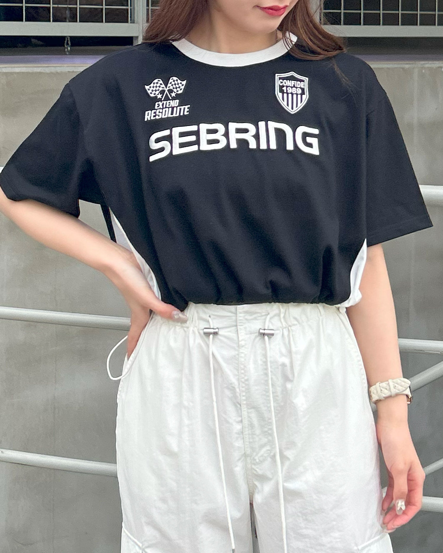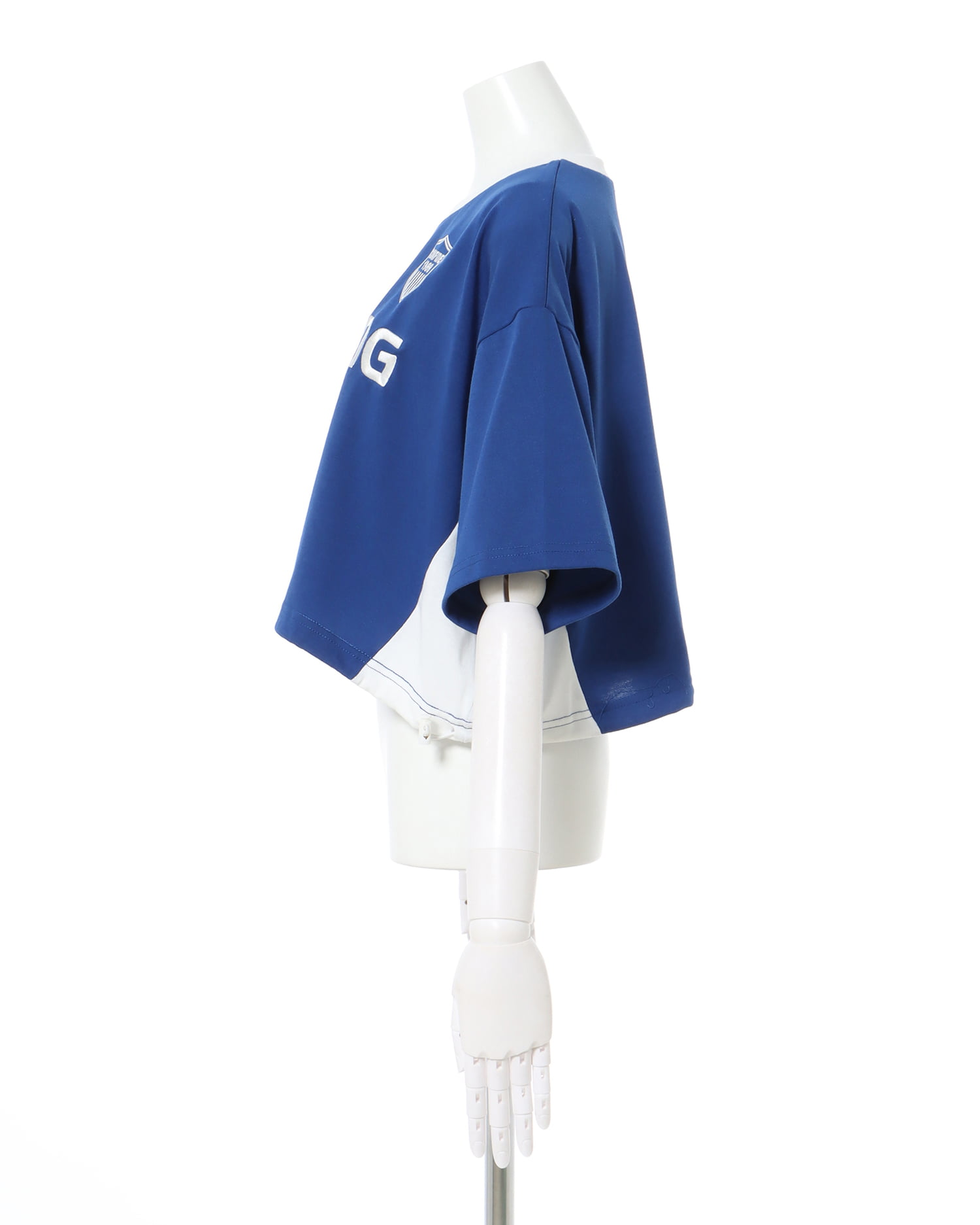 バイカラーやフラッグ刺繍でアクティブな雰囲気に仕上げています。