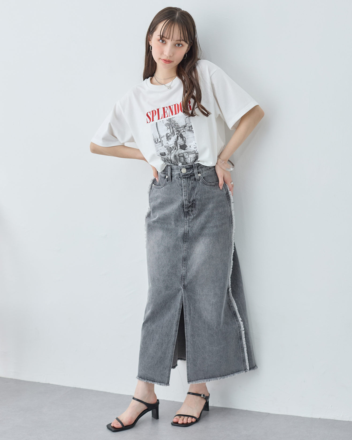 フロントの大きな転写プリントがクール&スタイリッシュなTシャツ。