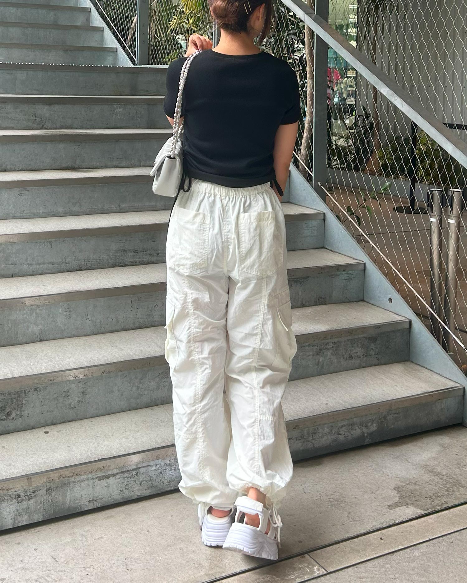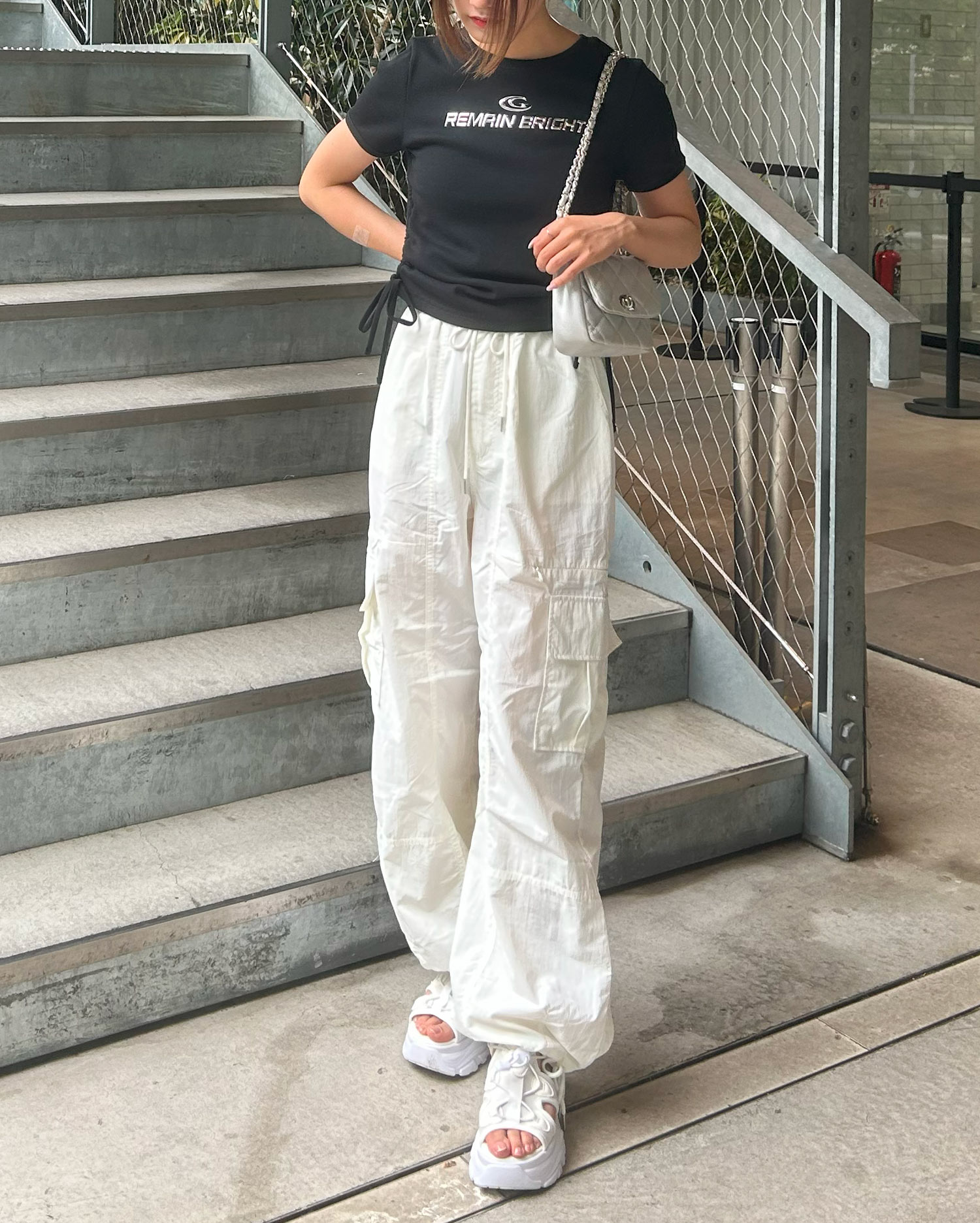 裾サイドをドロストで絞ればシルエットチェンジも可能です。