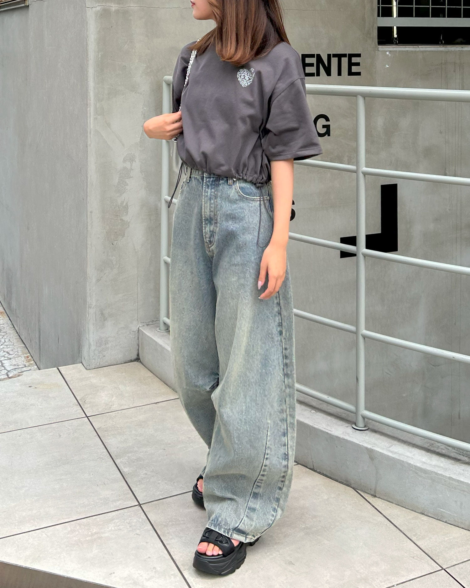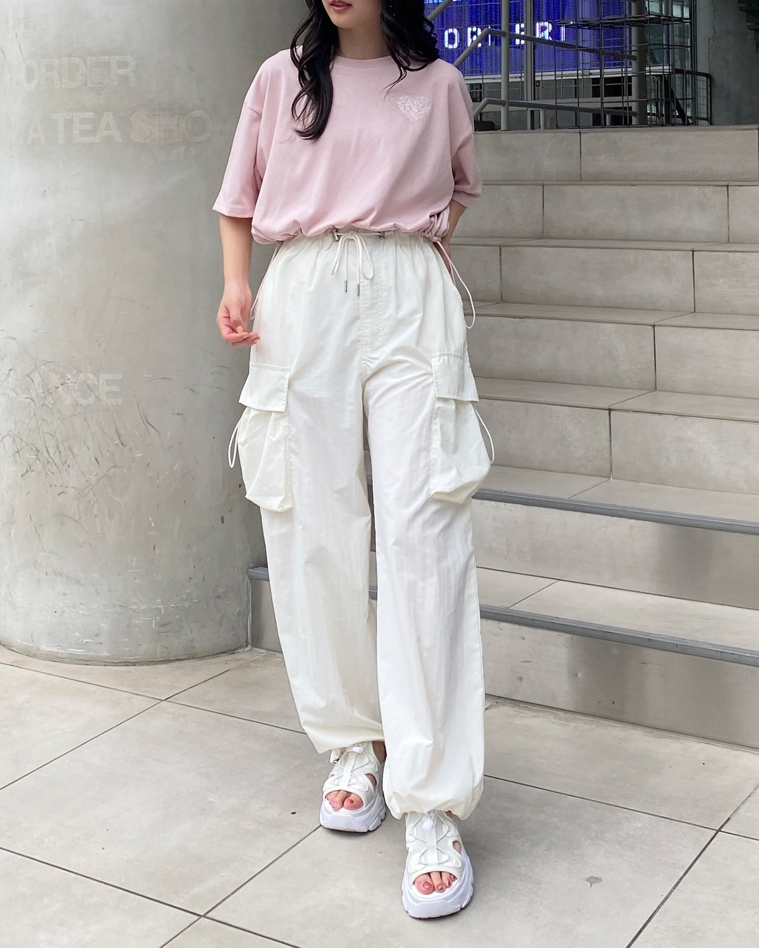 裾部分をドロストで絞れるデザインでトレンドコーデが完成します。