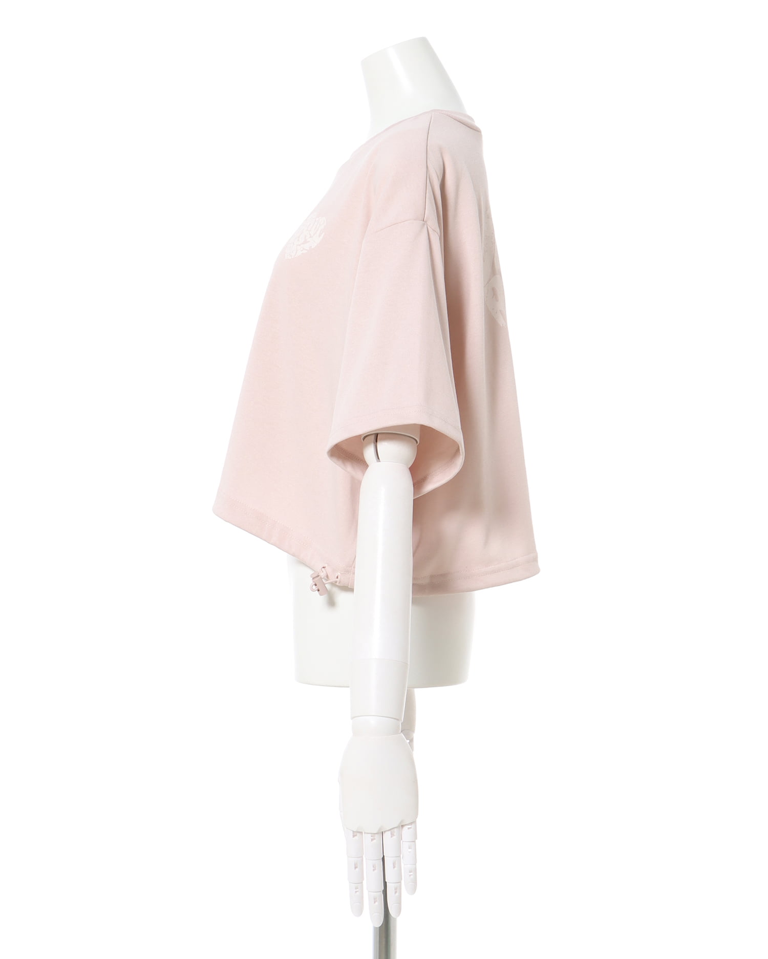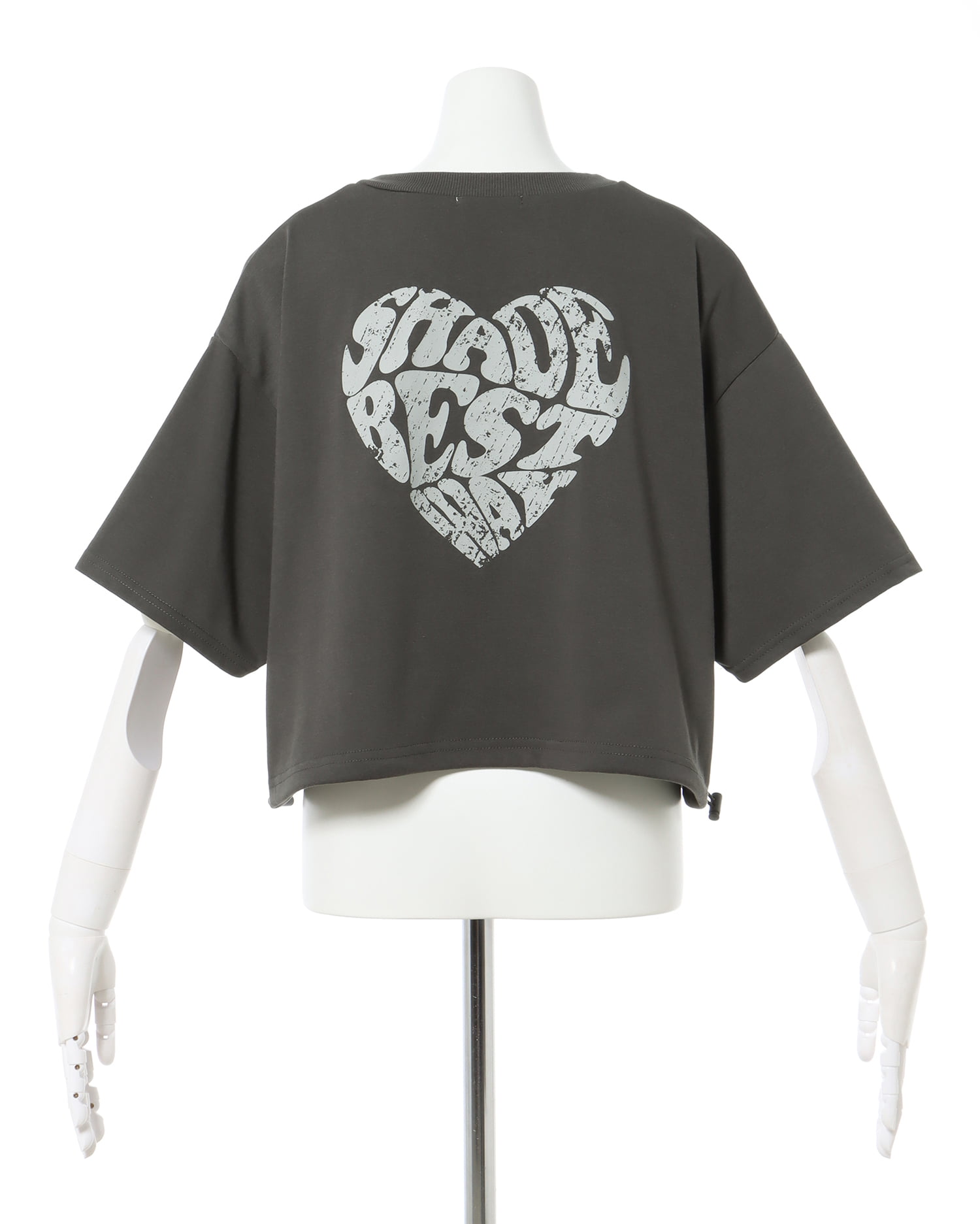 バックにあしらった大きなハートロゴがキュートなTシャツ。