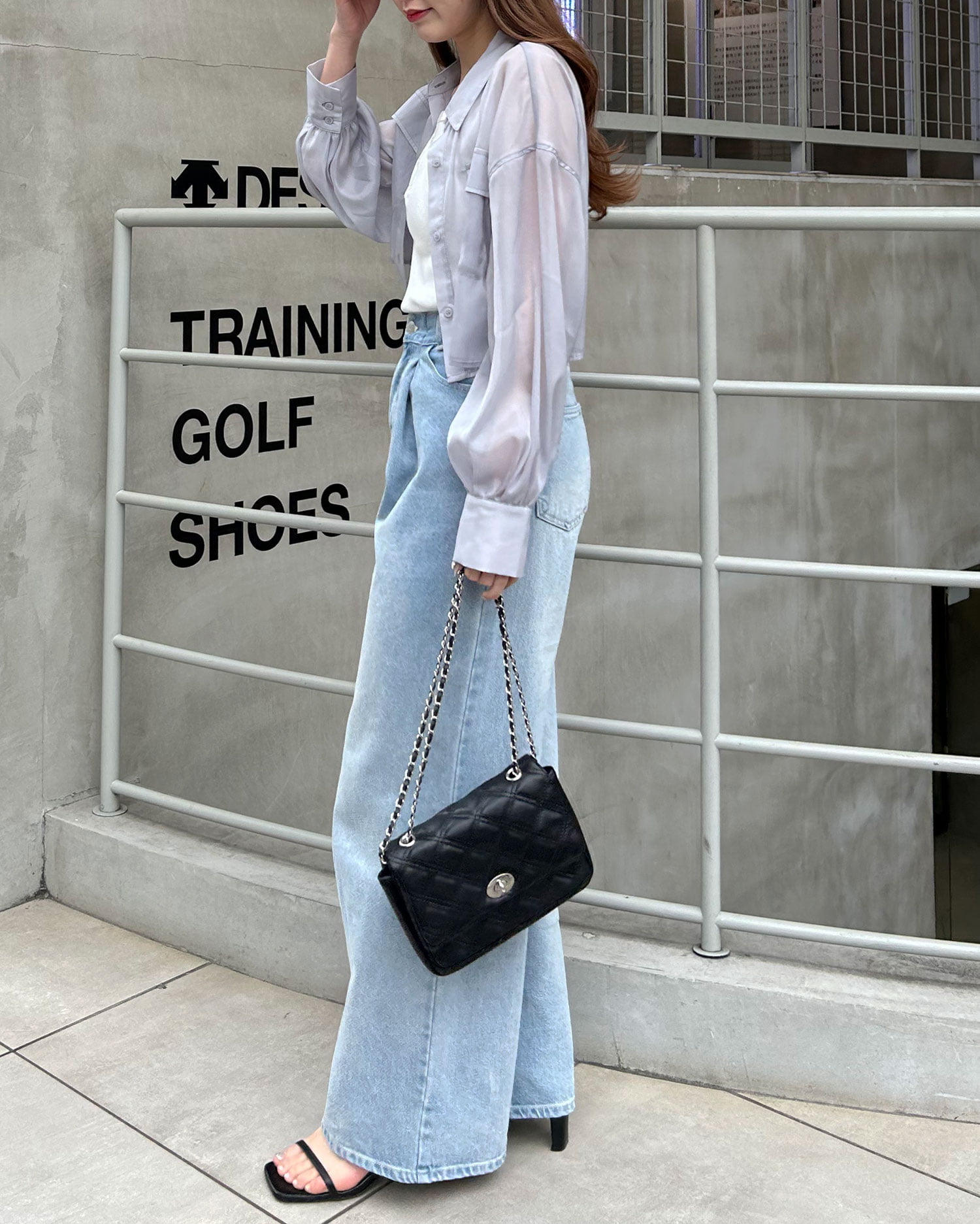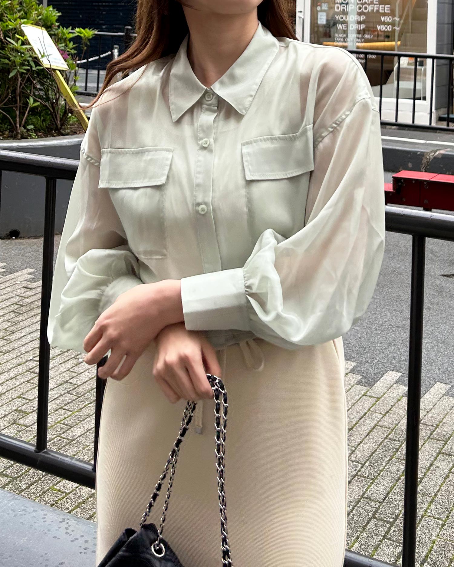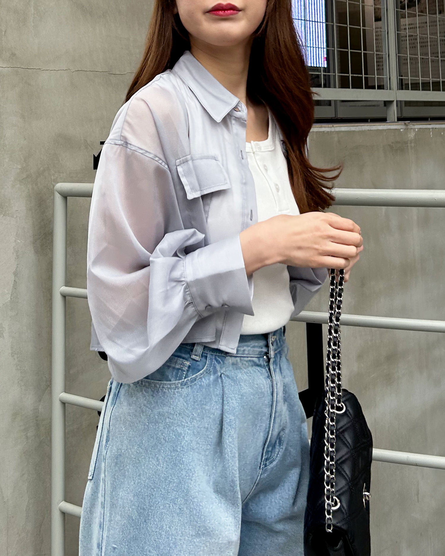 清涼感のあるシアーシャツをショート丈でトレンドライクに。