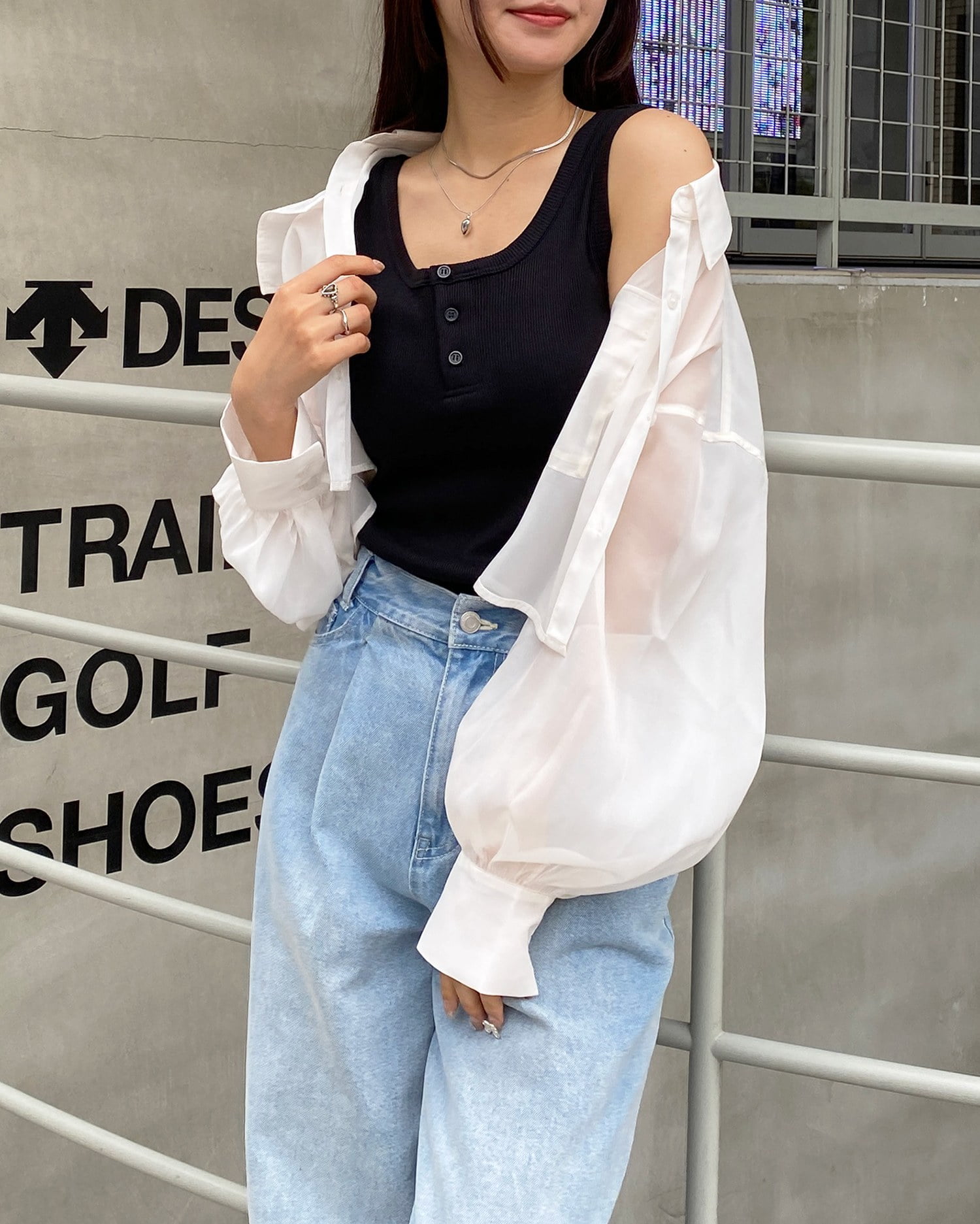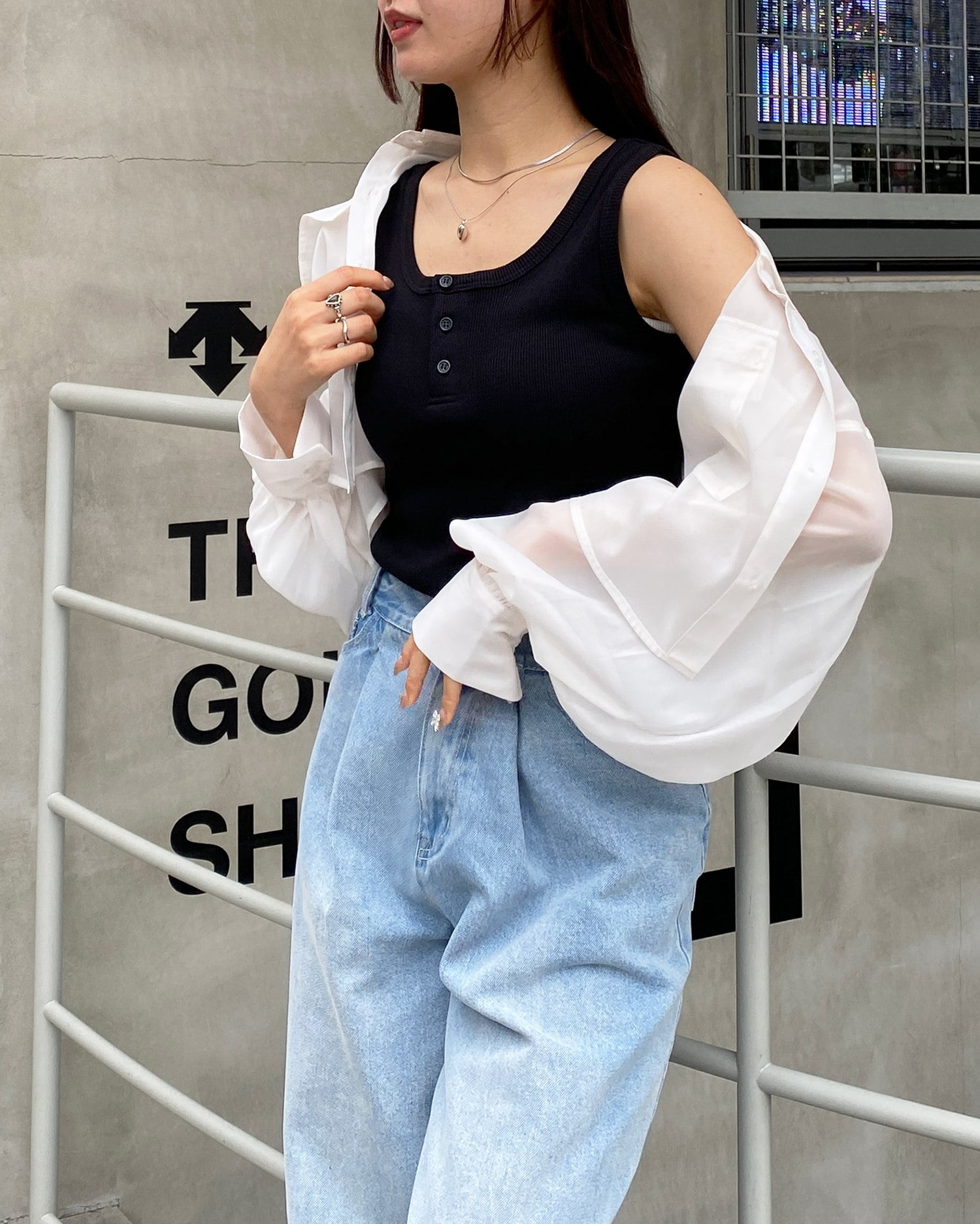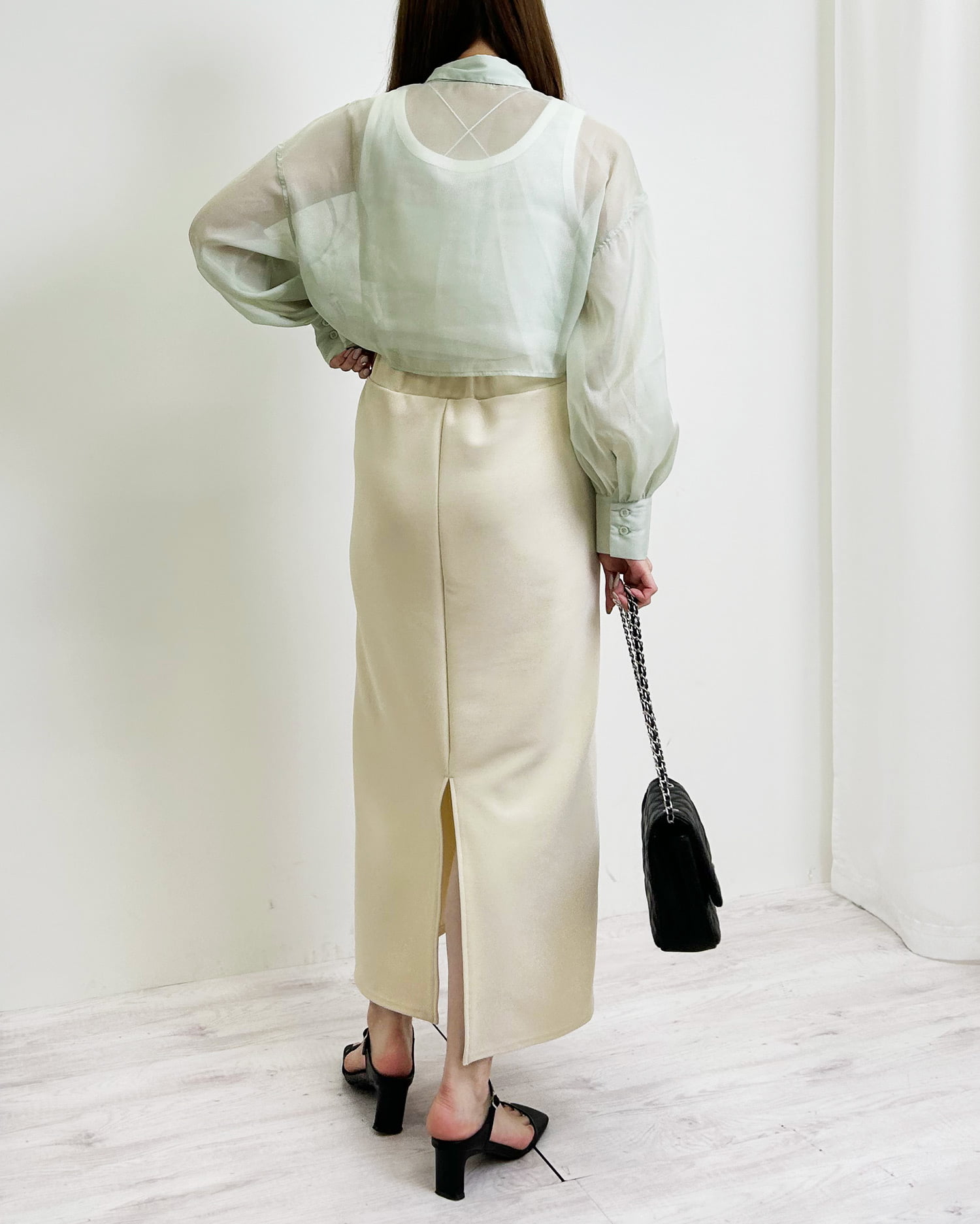 清涼感のあるシアーシャツをショート丈でトレンドライクに。