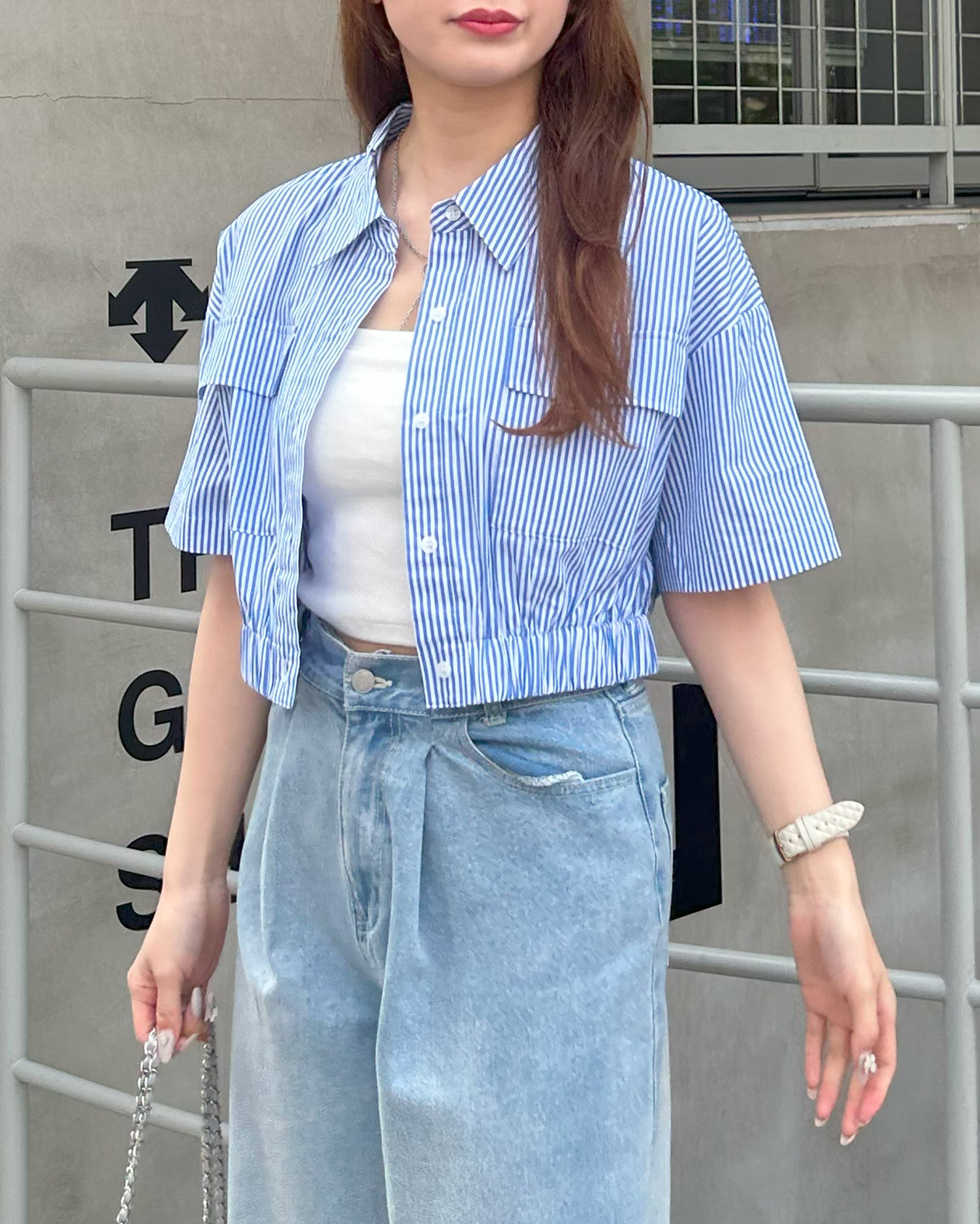 ショート丈でバランス良く合わせられる半袖シャツ。