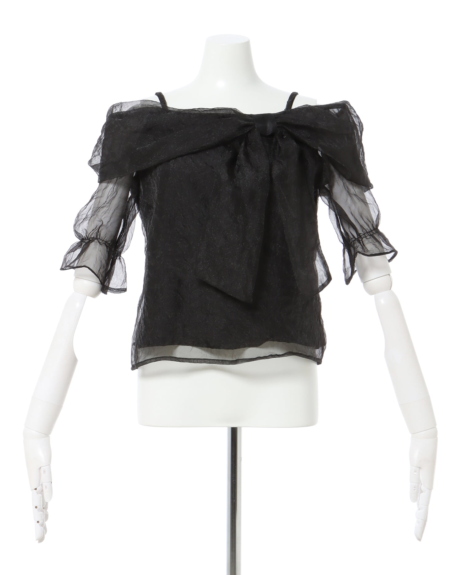 • INGNI(イング) オーガンジーリボンオフショルブラウス クロ