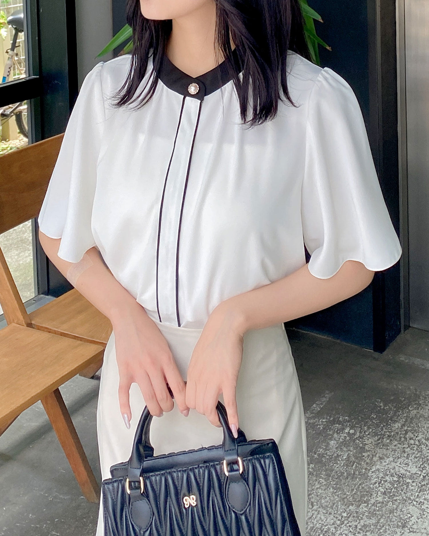 【上品で高見え、一枚で着映えするフレアブラウス】