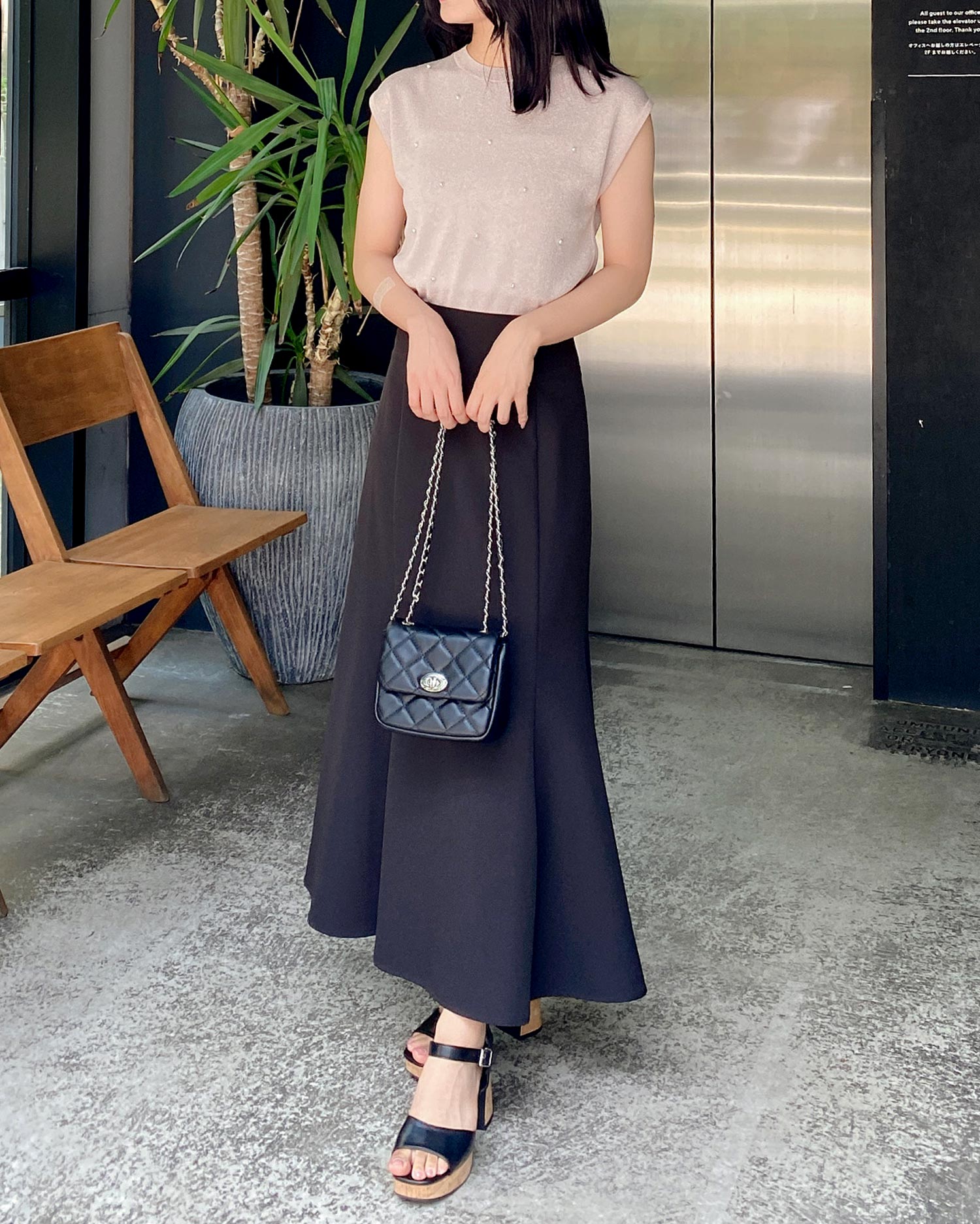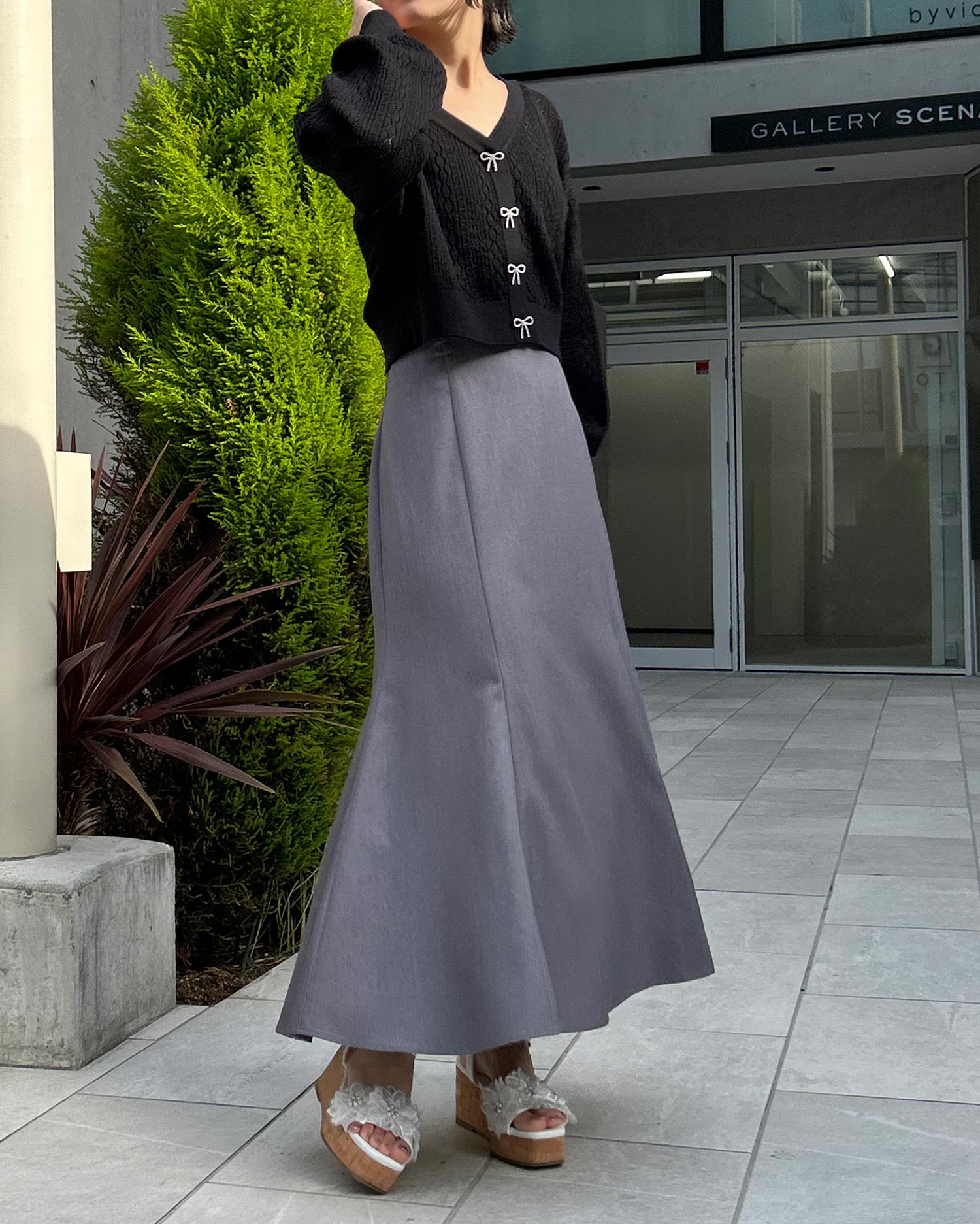 タイトすぎないマーメイドシルエットなので 上品にもガーリーにも着まわせます。