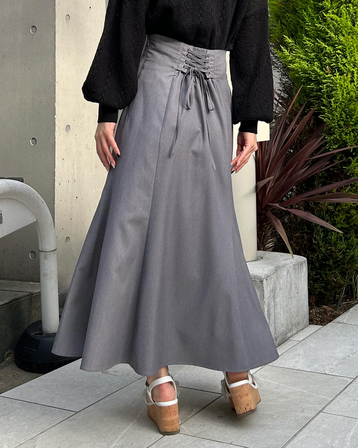 ハイウエストと腰回りを引き締めるバックレースアップで