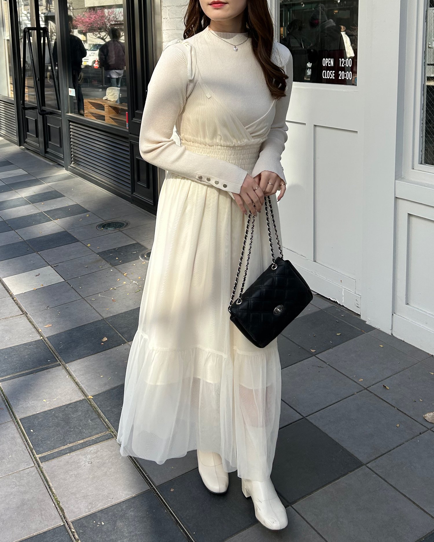 透け感のあるチュール素材なので重ね着しても重たい印象になりません。